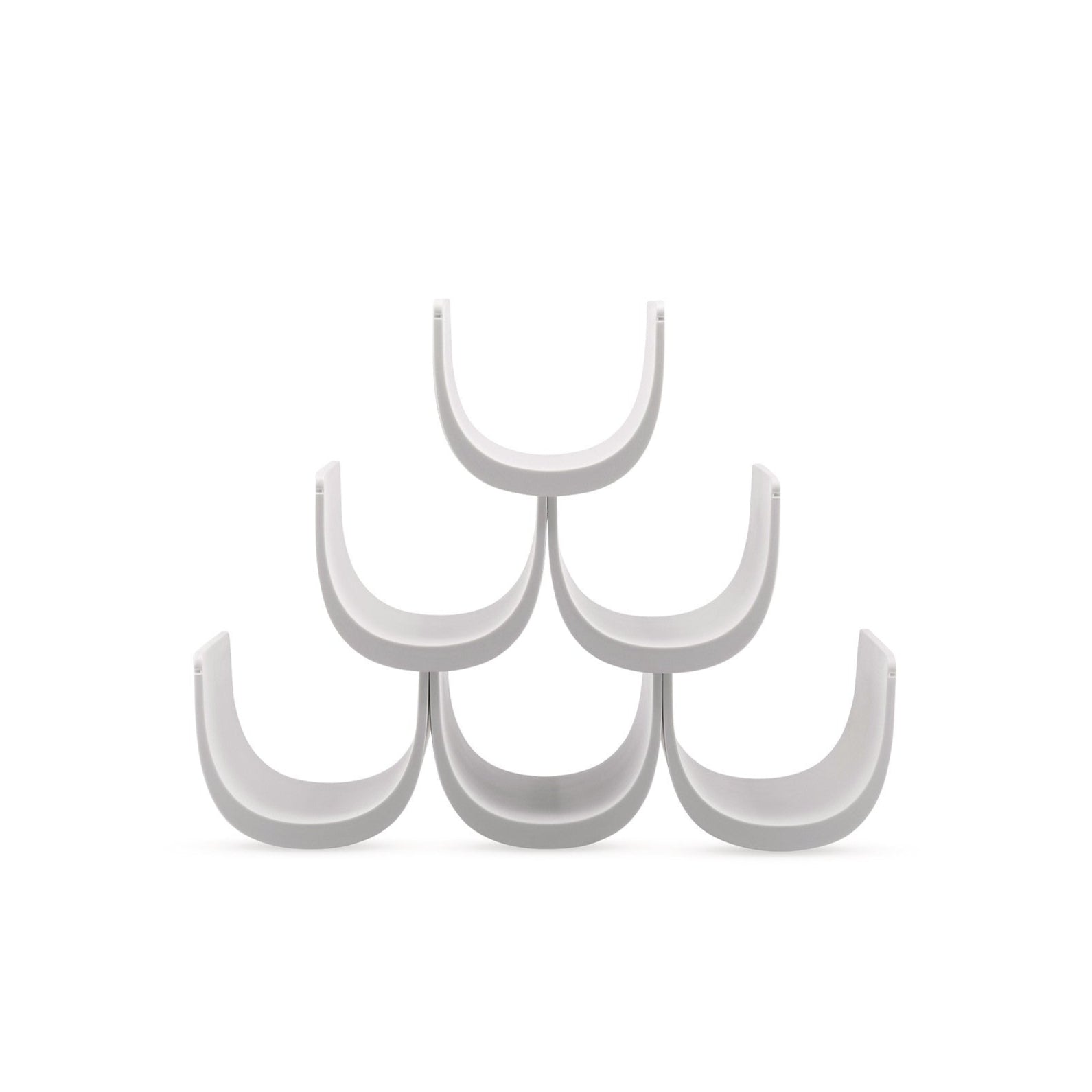 Named in reference to Noah (Noè in Italian), the first man to plant grapevines and make wine, Alessi's Noè collection brings together a series of stylish wine accessories. This bottle holder comprises six white thermoplastic resin modules that can be stacked to resemble a bunch of grapes and can be placed on the kitchen counter or the floor. Each module holds one wine bottle and can be combined with other pieces through a groove located along its base.