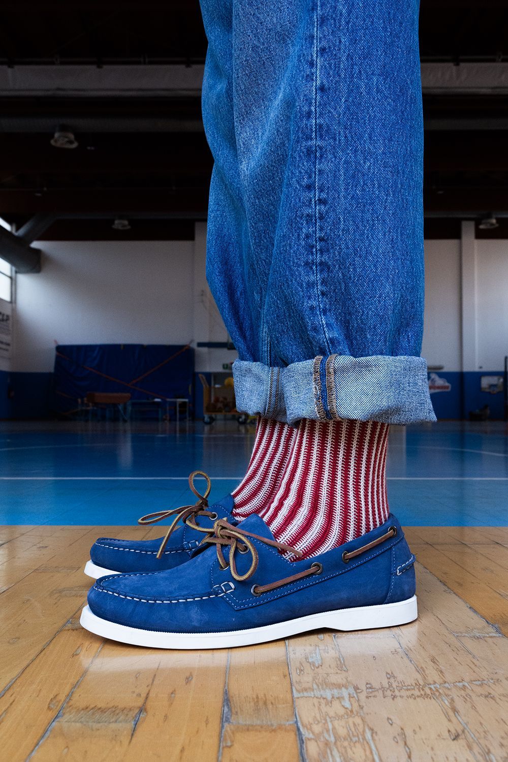 Short socks in 100% thick cotton with vertical stripes and prominent ribbing.