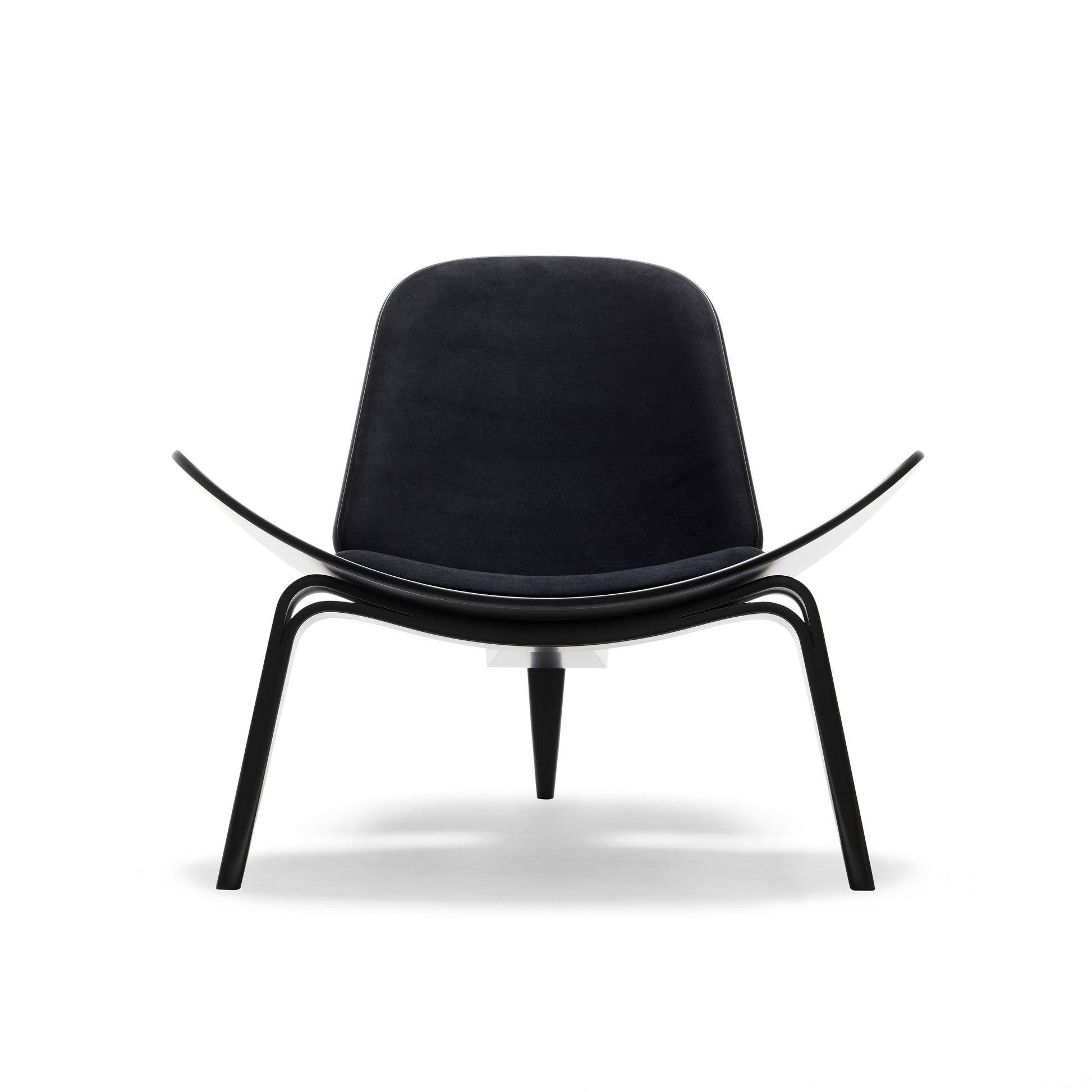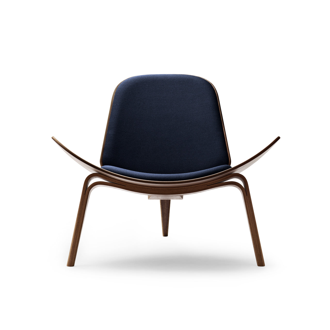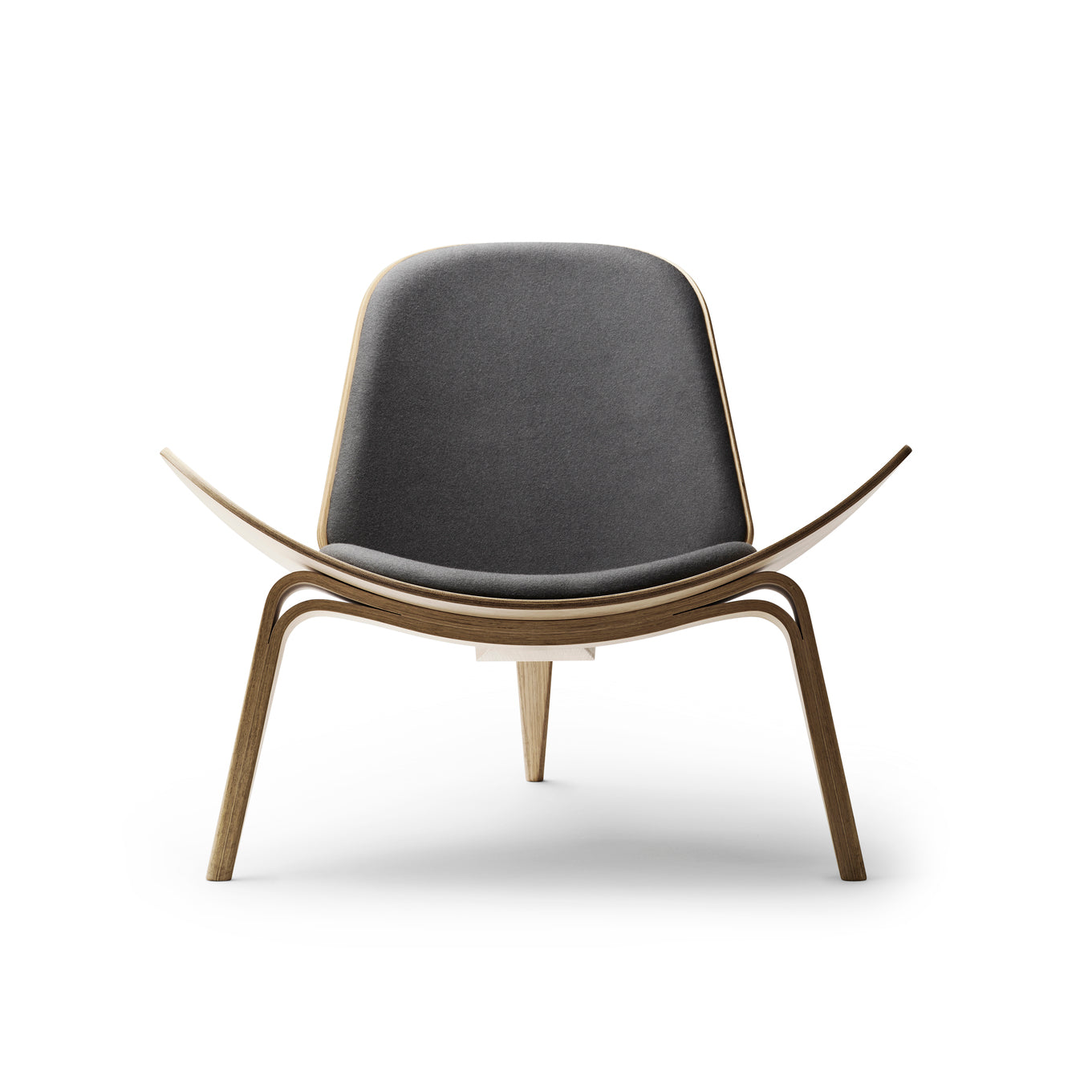 The Carl Hansen CH07 Shell chair is a sculptural easy chair with a triangular footprint. The chair is frequently placed where it can be viewed from all sides, on its own or in groups. Sometimes called “The Smiling Chair”, the three-legged construction provides absolute stability; the chair achieves a floating lightness due to its wing-like seat and the arching curves of its tapered legs.