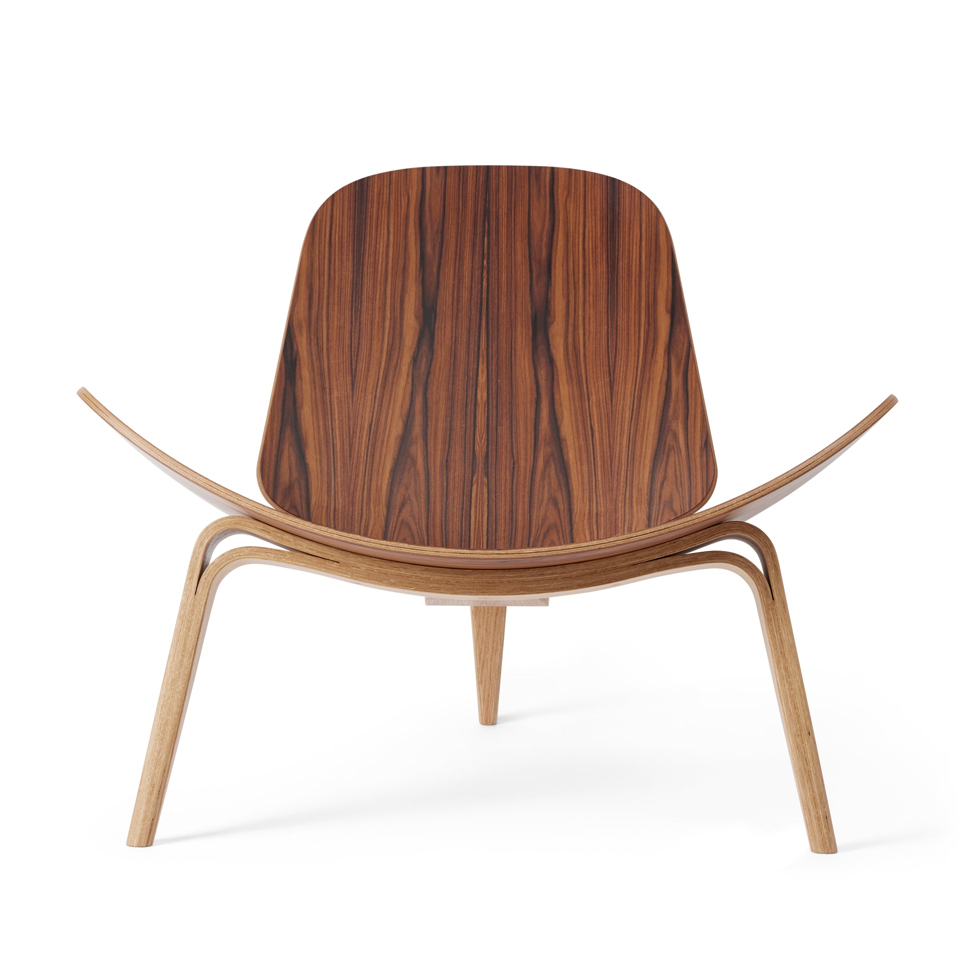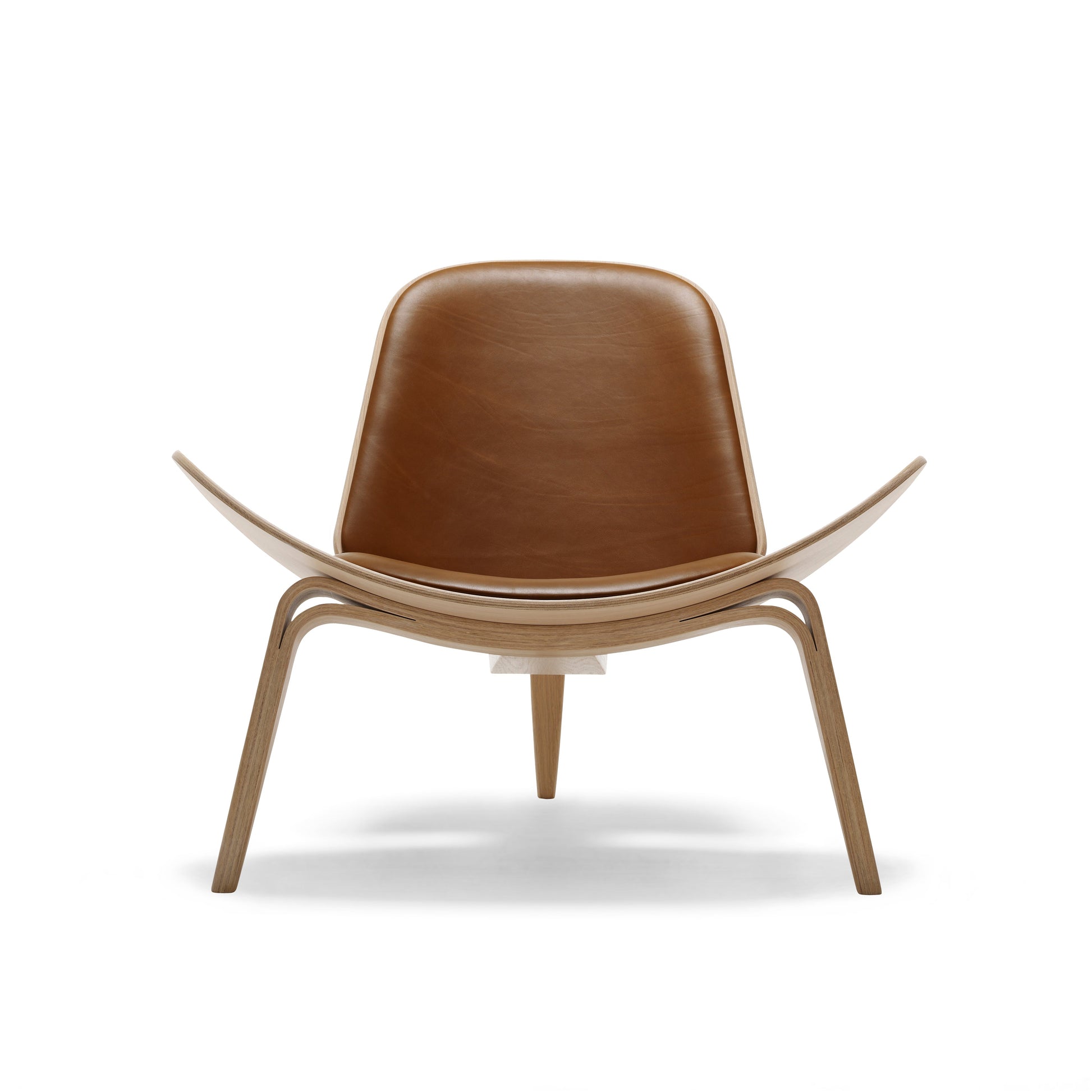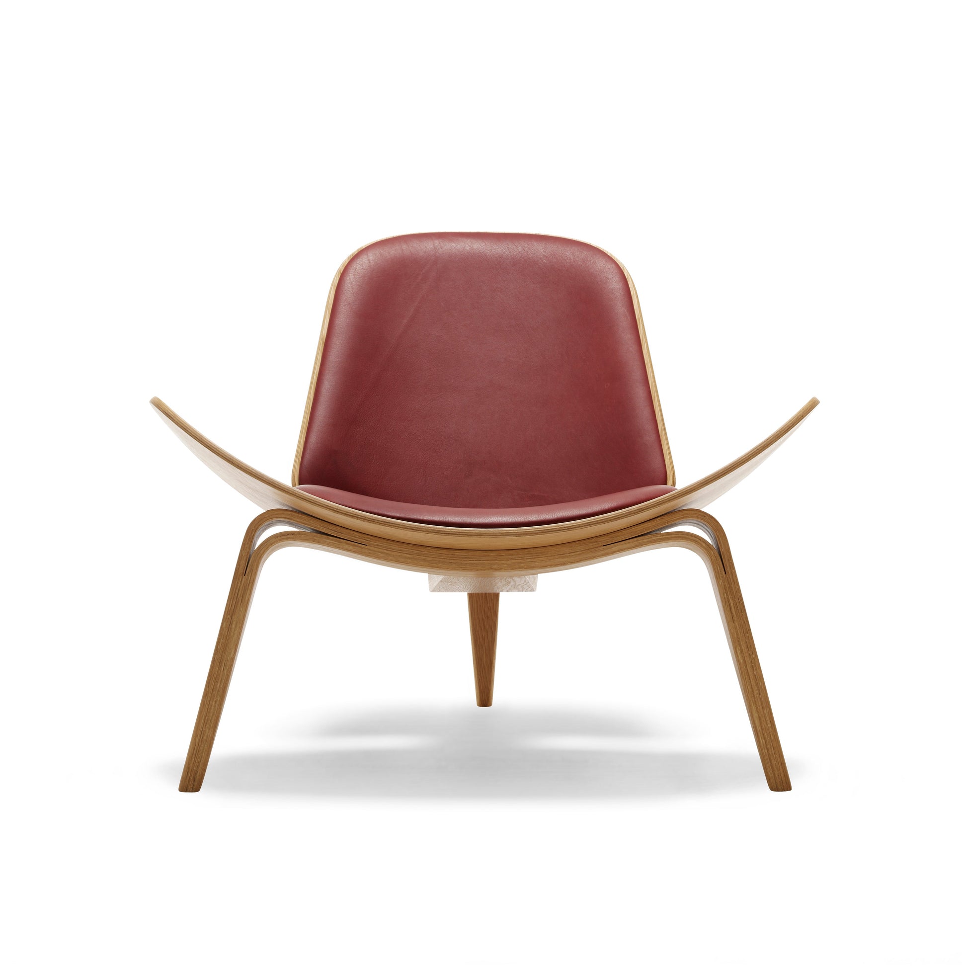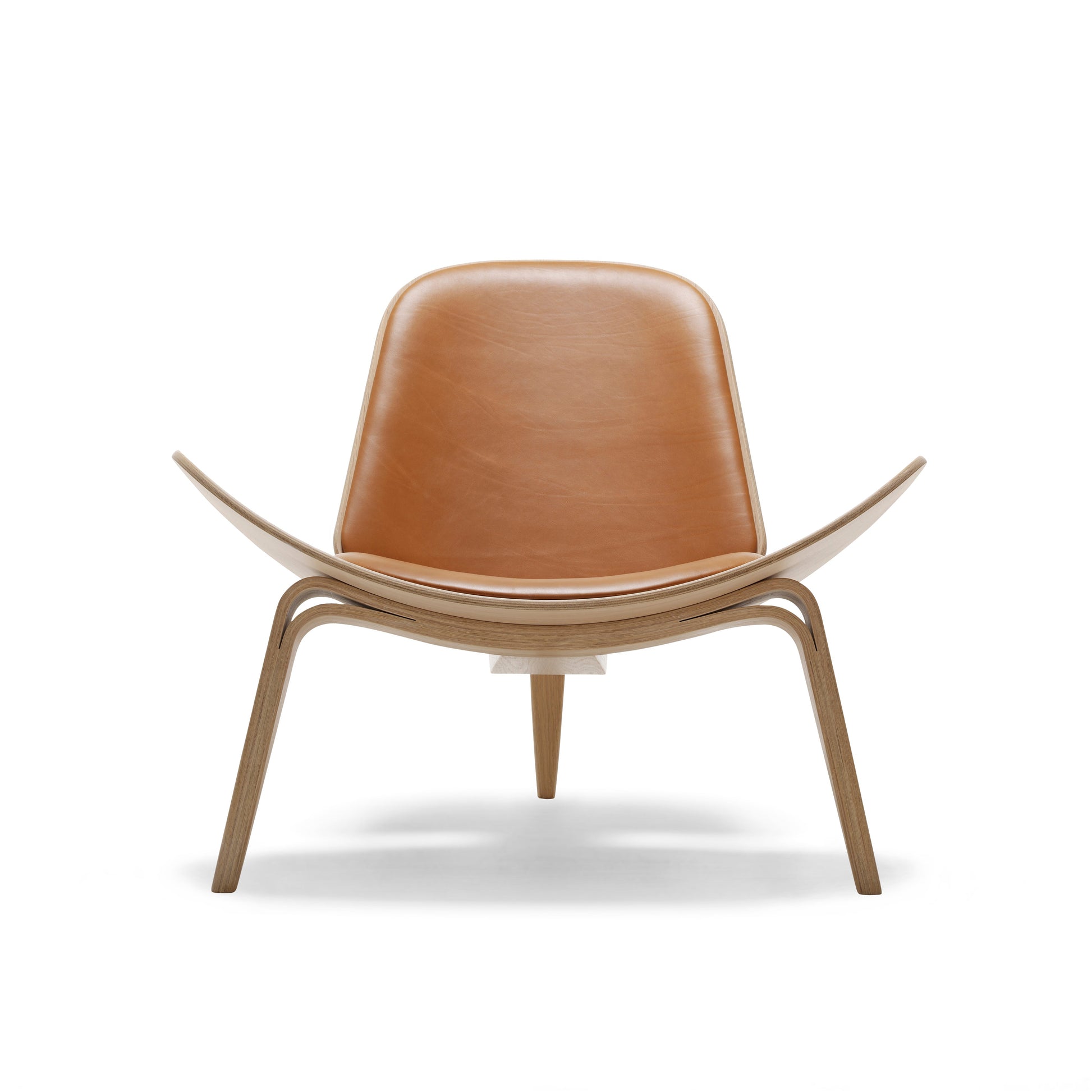 The Carl Hansen CH07 Shell chair is a sculptural easy chair with a triangular footprint. The chair is frequently placed where it can be viewed from all sides, on its own or in groups. Sometimes called “The Smiling Chair”, the three-legged construction provides absolute stability; the chair achieves a floating lightness due to its wing-like seat and the arching curves of its tapered legs.