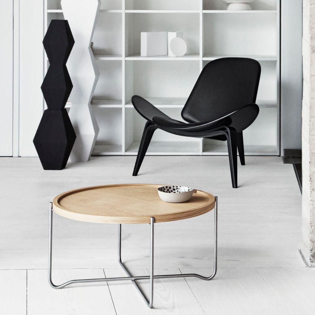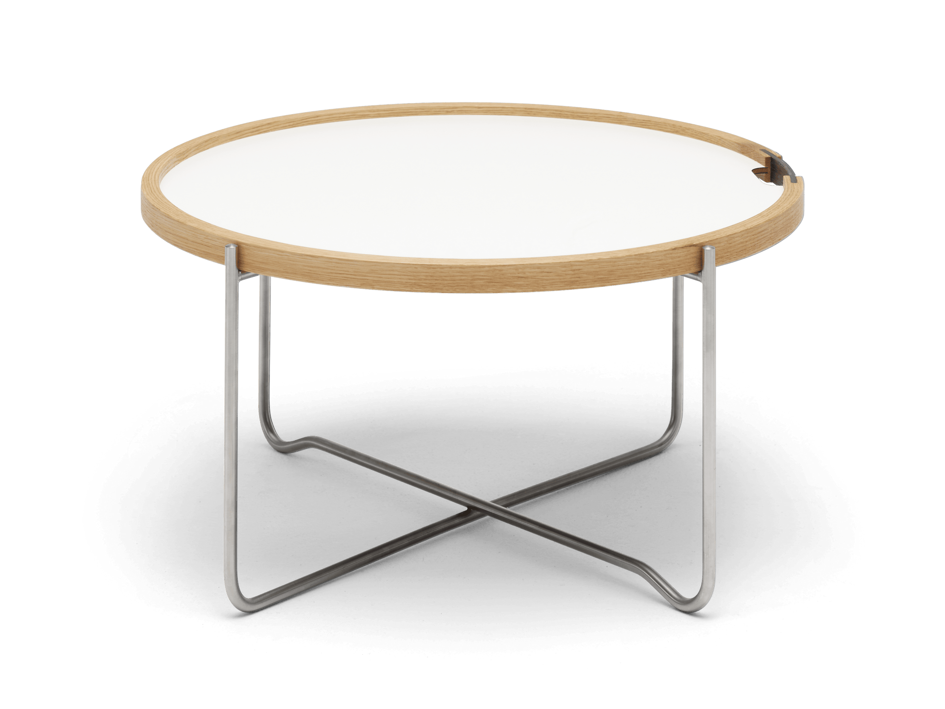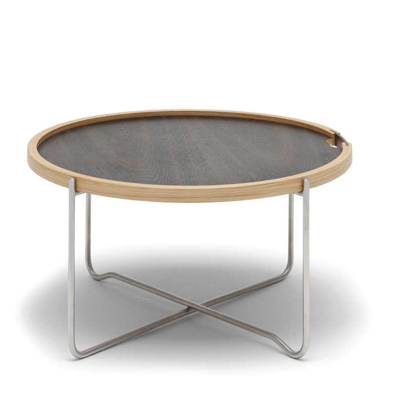 The Carl Hansen CH417 Tray Table is an elegant and flexible piece consisting of two parts – a round tray and a collapsible base – and can be used as a side table, coffee table and as a tray.