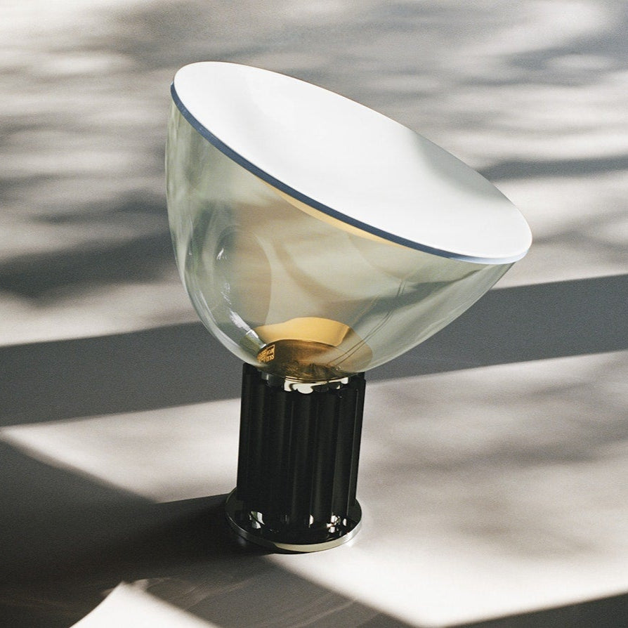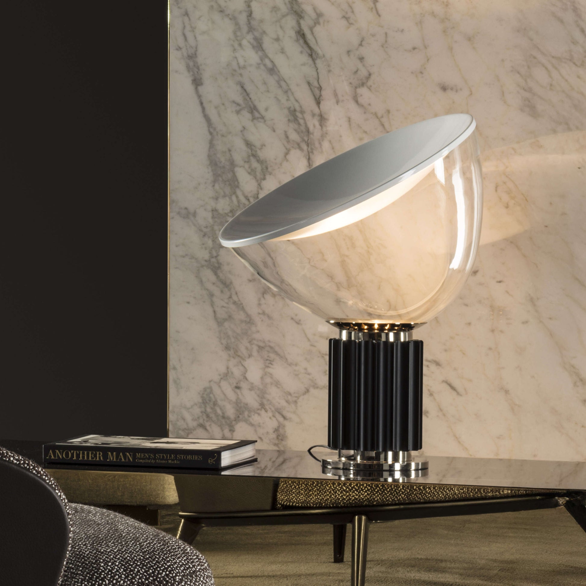 Featuring indirect and reflected light, the Flos Taccia LED Table Lamp brings a subtle illumination to your chosen space. Directionable diffuser in transparent blown glass.