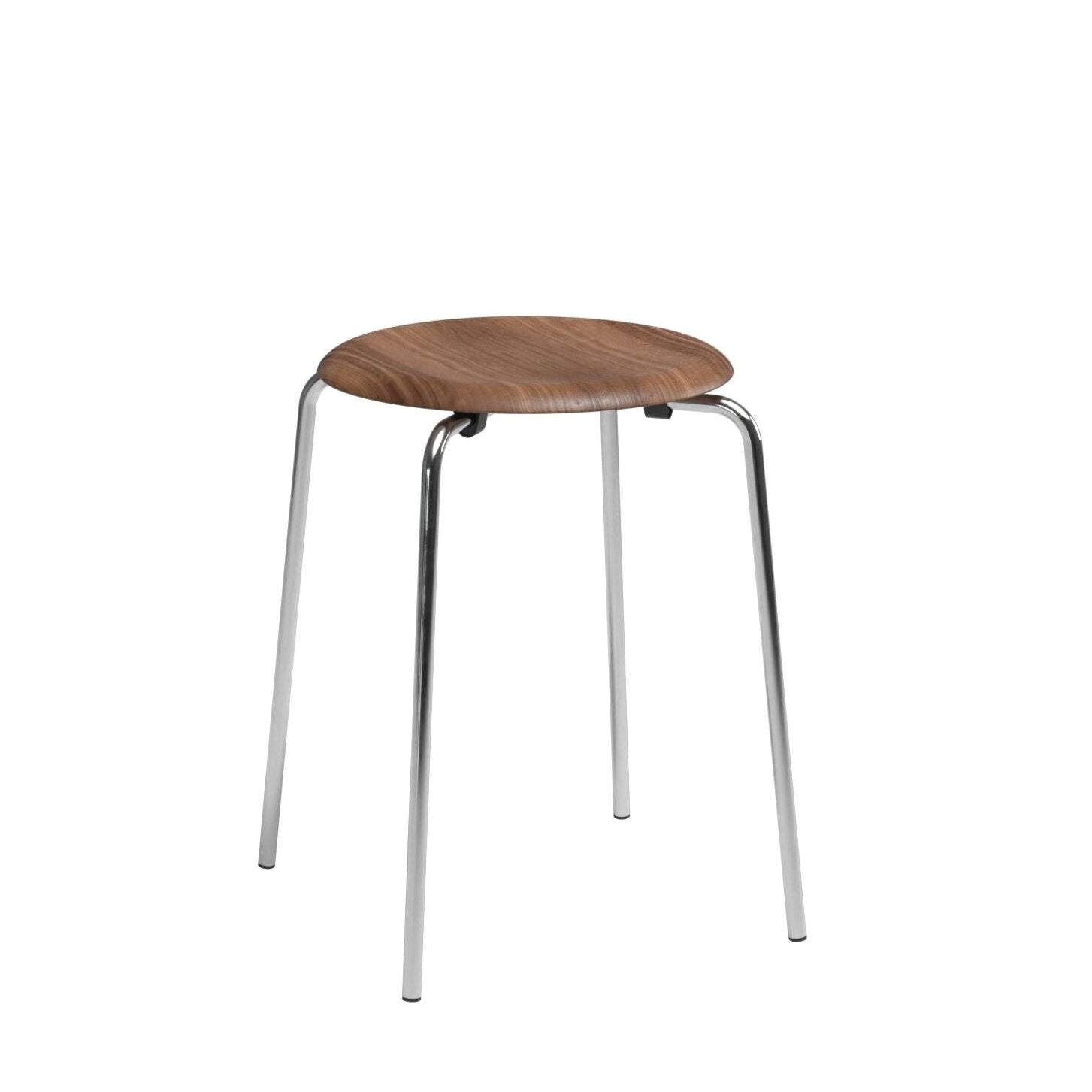 The DotTM stools are available in selected leather and veneer variants: Black coloured ash or clear lacquered walnut. All stools come with four legs. The bases are made of chromed or powder coated tubular steel.