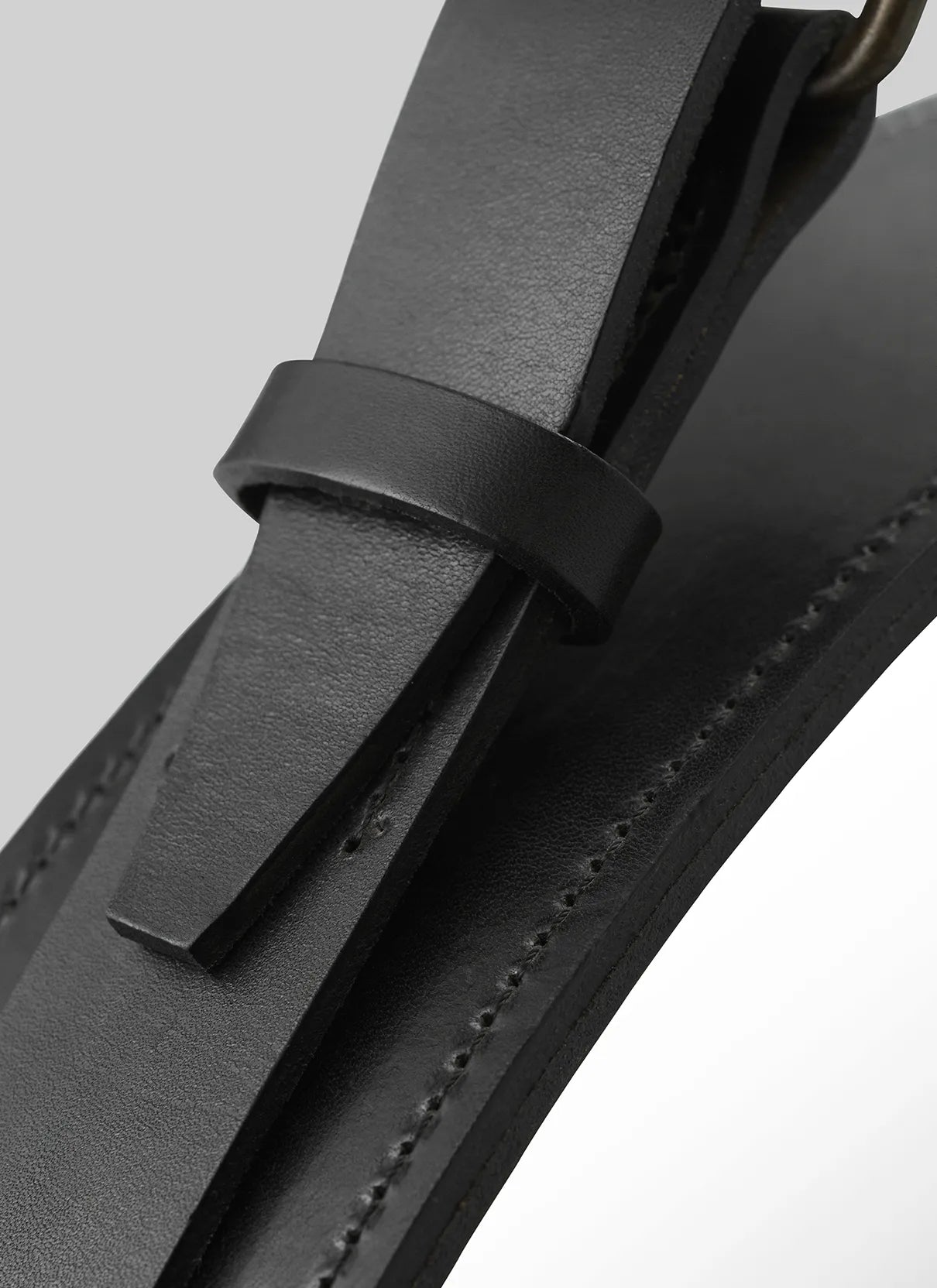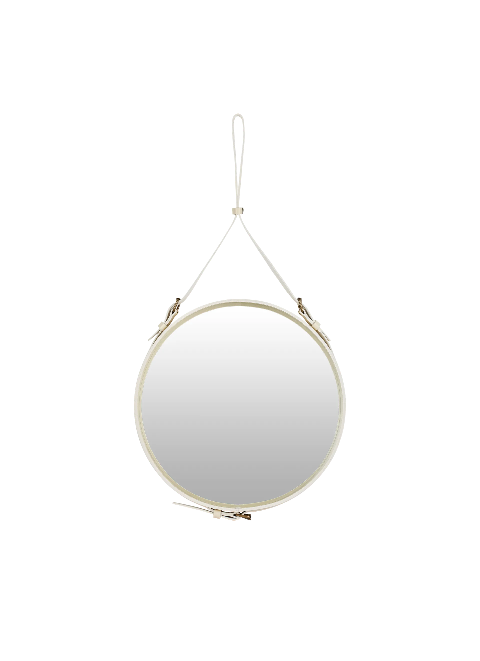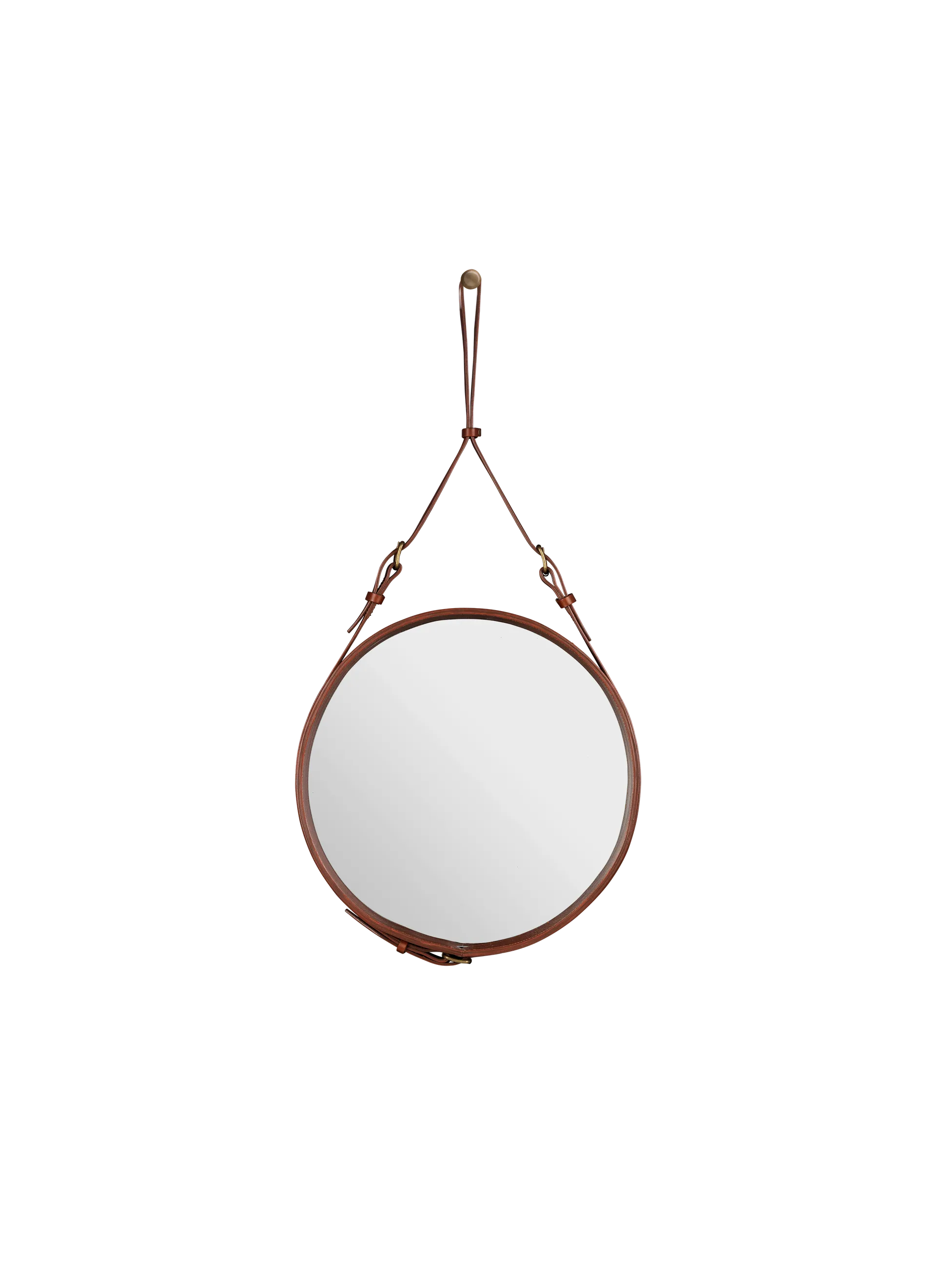 In 1950, Jacques Adnet formed a partnership with a famous French fashion house, where he developed a collection of discreet yet voluptuous leather-covered furniture and interior accessories. Known for being an innovative thinker, Adnet was one of the first designers to combine leather with glass. Accordingly, he designed the elegant, distinctive round leather mirror with equestrian inspired detailing - the Adnet Wall Mirror Circular. Besides the remarkable leather and burnished brass details, the mirror in three sizes is also unique as the strap holding the mirror is in direct proportion to the dimension of it.