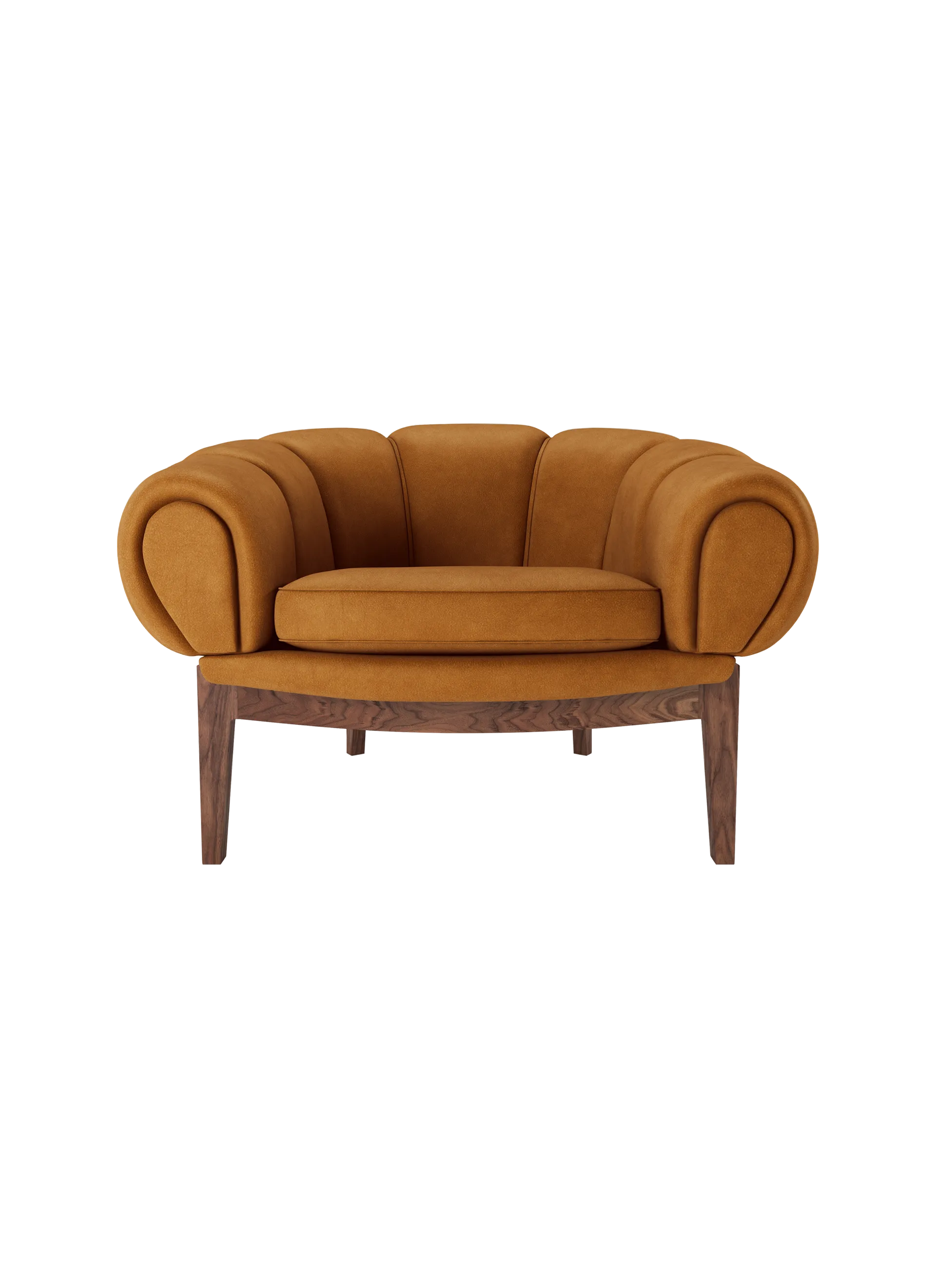 The Croissant’s Lounge Chair works well alone, while its twist on the classic ‘club chair’ form make it perfect as paired fireside chairs in the home or hotel lobby.