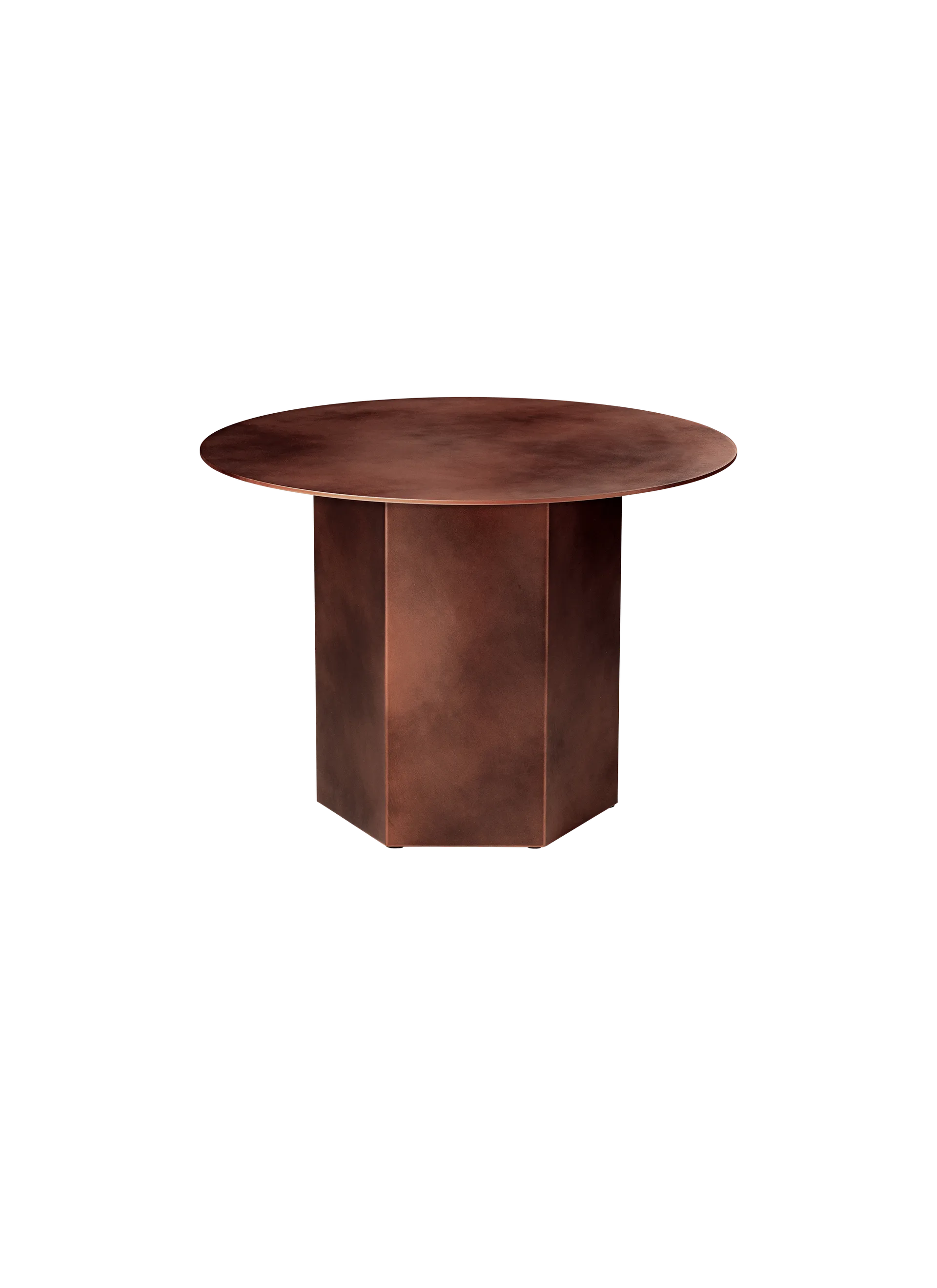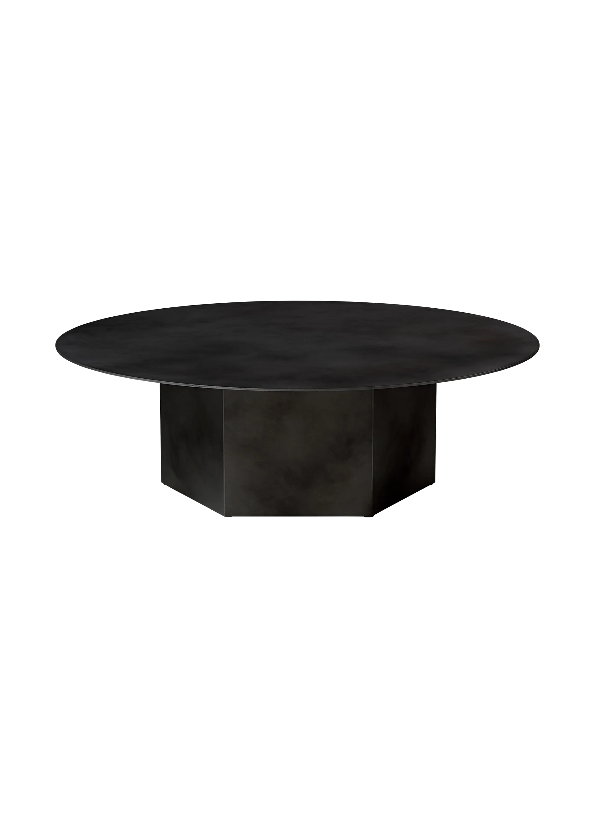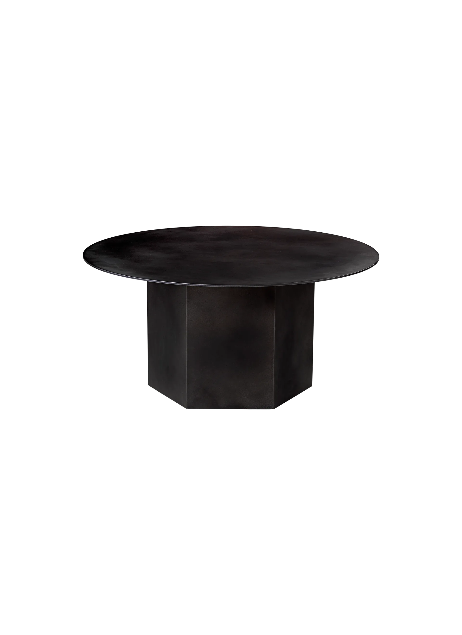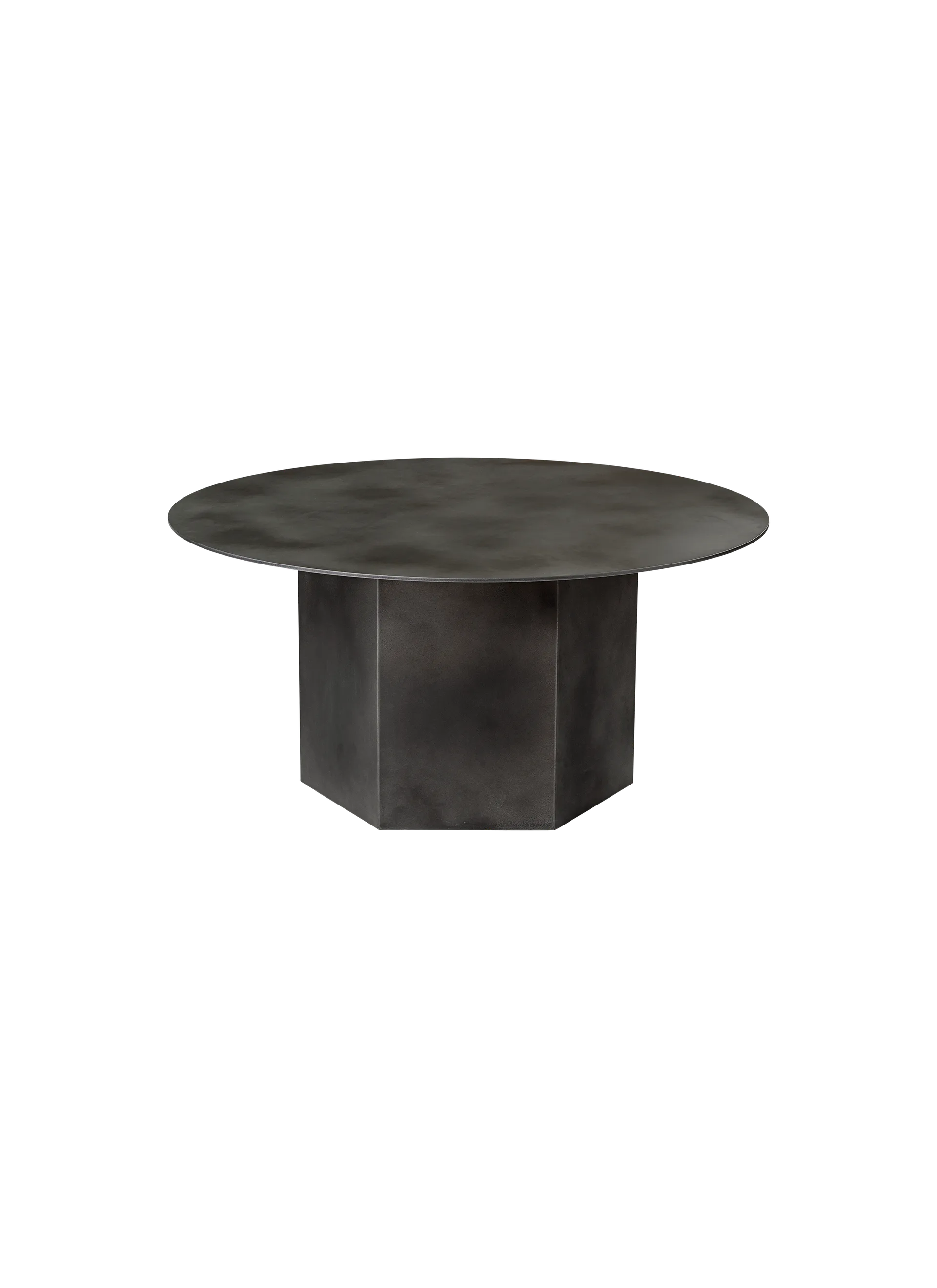 Named after the epic poems of ancient times, GamFratesi’s Epic Table for GUBI is a sculptural piece of furniture inspired by Greek columns and Roman architecture. Originally made in Italy from travertine stone, the table’s new variant marks the first time GamFratesi has worked with steel plates, which are galvanized, lacquered, and then treated with a series of hand-finishing processes to create a unique surface expression for each table. The table’s monolithic form remains, now with an industrial expression, in which a new detail can be discovered with every use. The collection brings personality to private settings and an intriguing sense of weight and tactility to public and hospitality spaces, where its resilient surfaces offer exceptional levels of durability. The varying heights and diameters within the Epic Table Collection mean a single monochromatic table can stand alone or be combined in dynamic clusters of varying material, height and color.