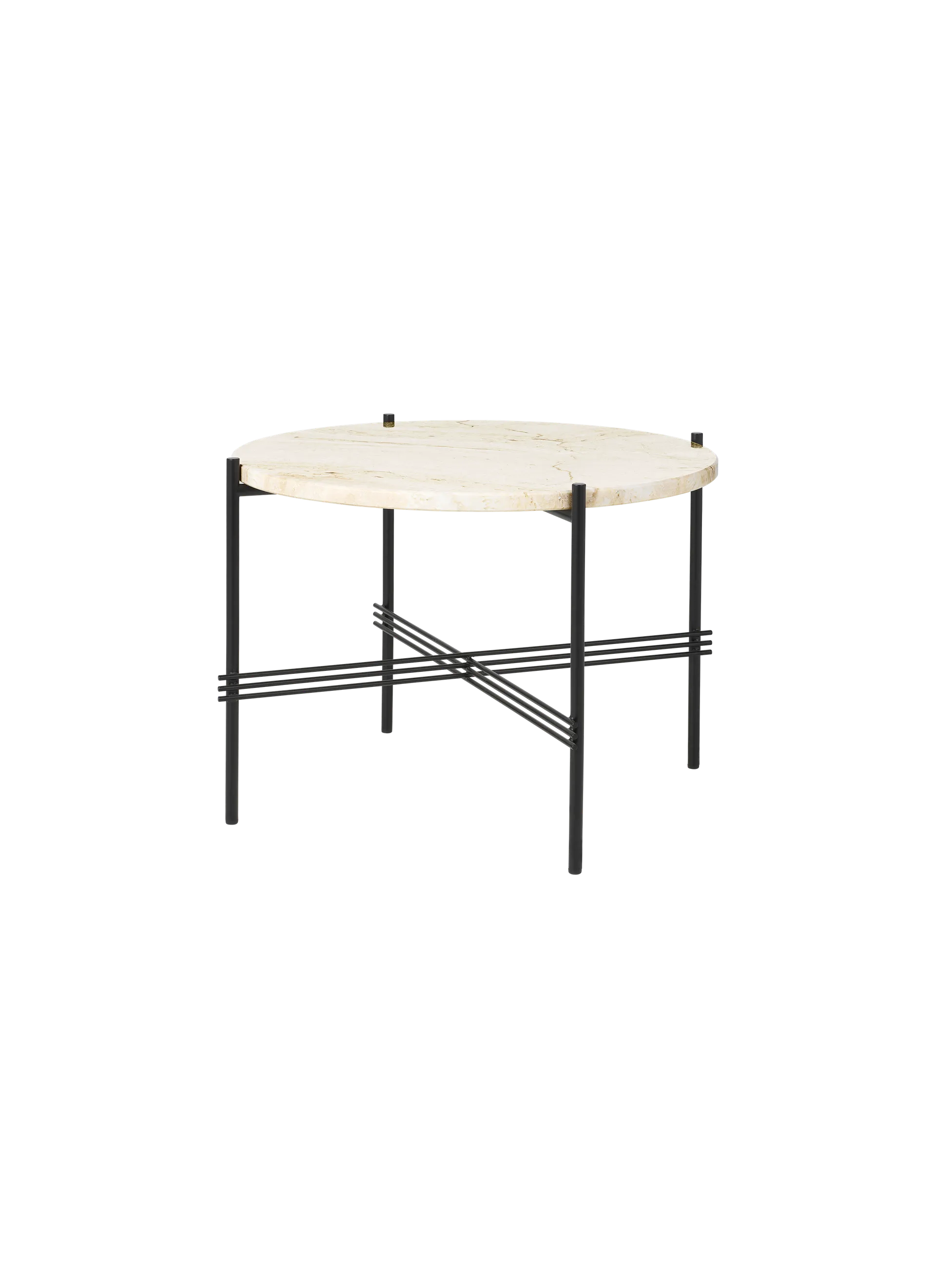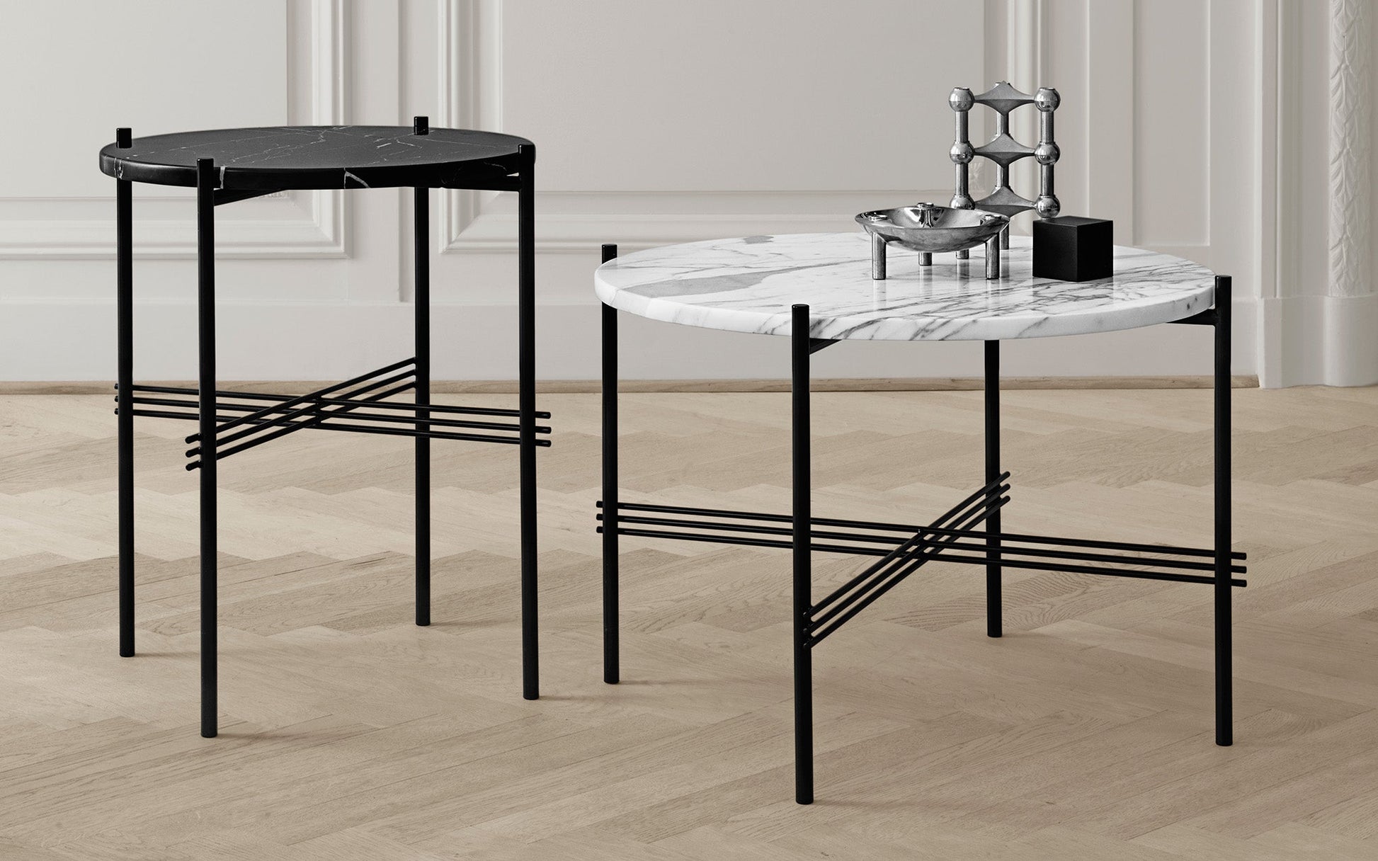 The TS Coffee Table creates a sophisticated and sculptural aesthetics for any room with its characteristic slender legs, beautifully crossing details and contrasting solid table top.