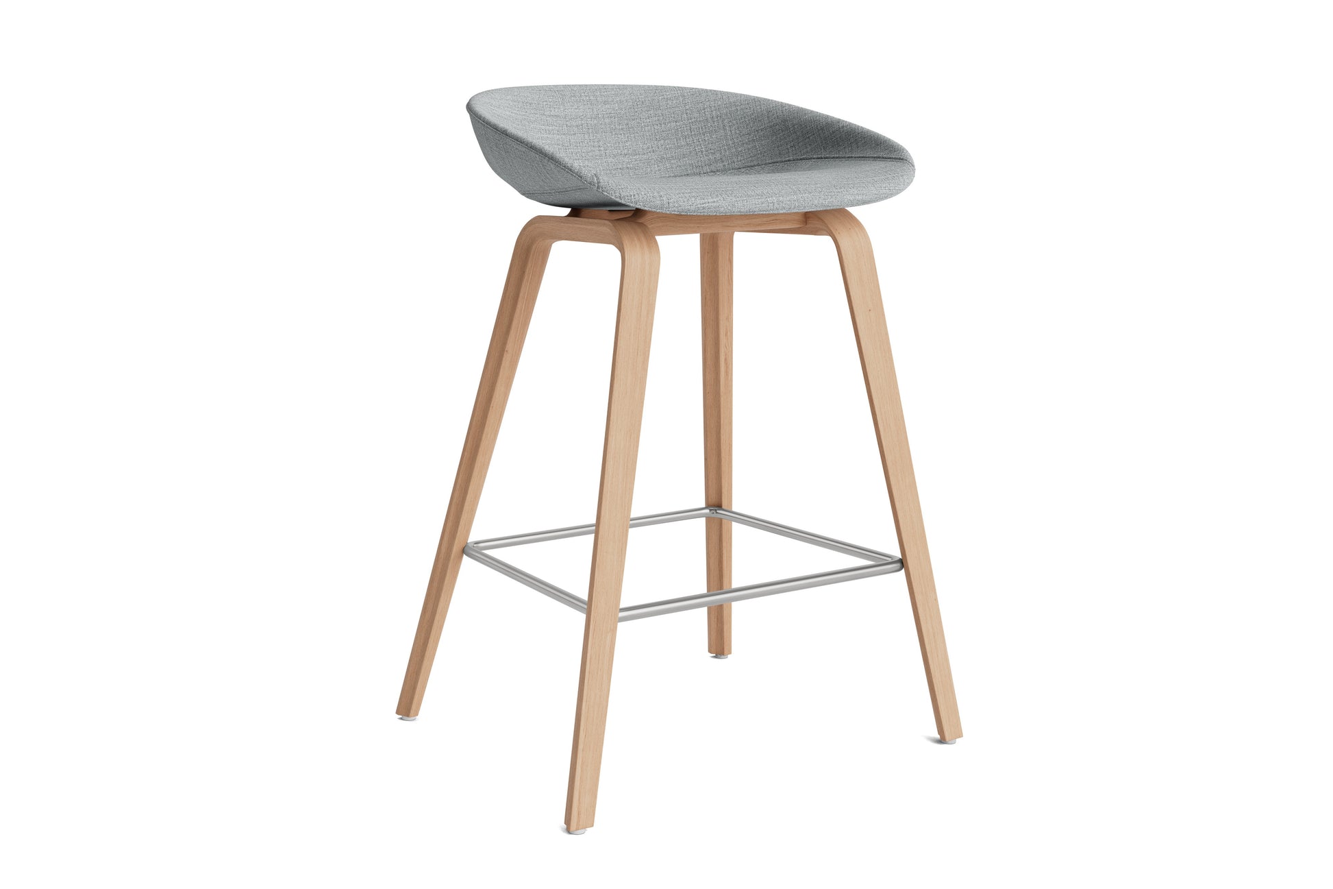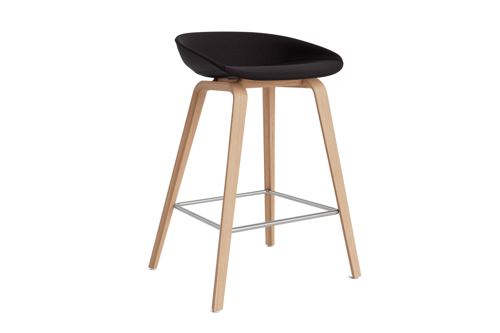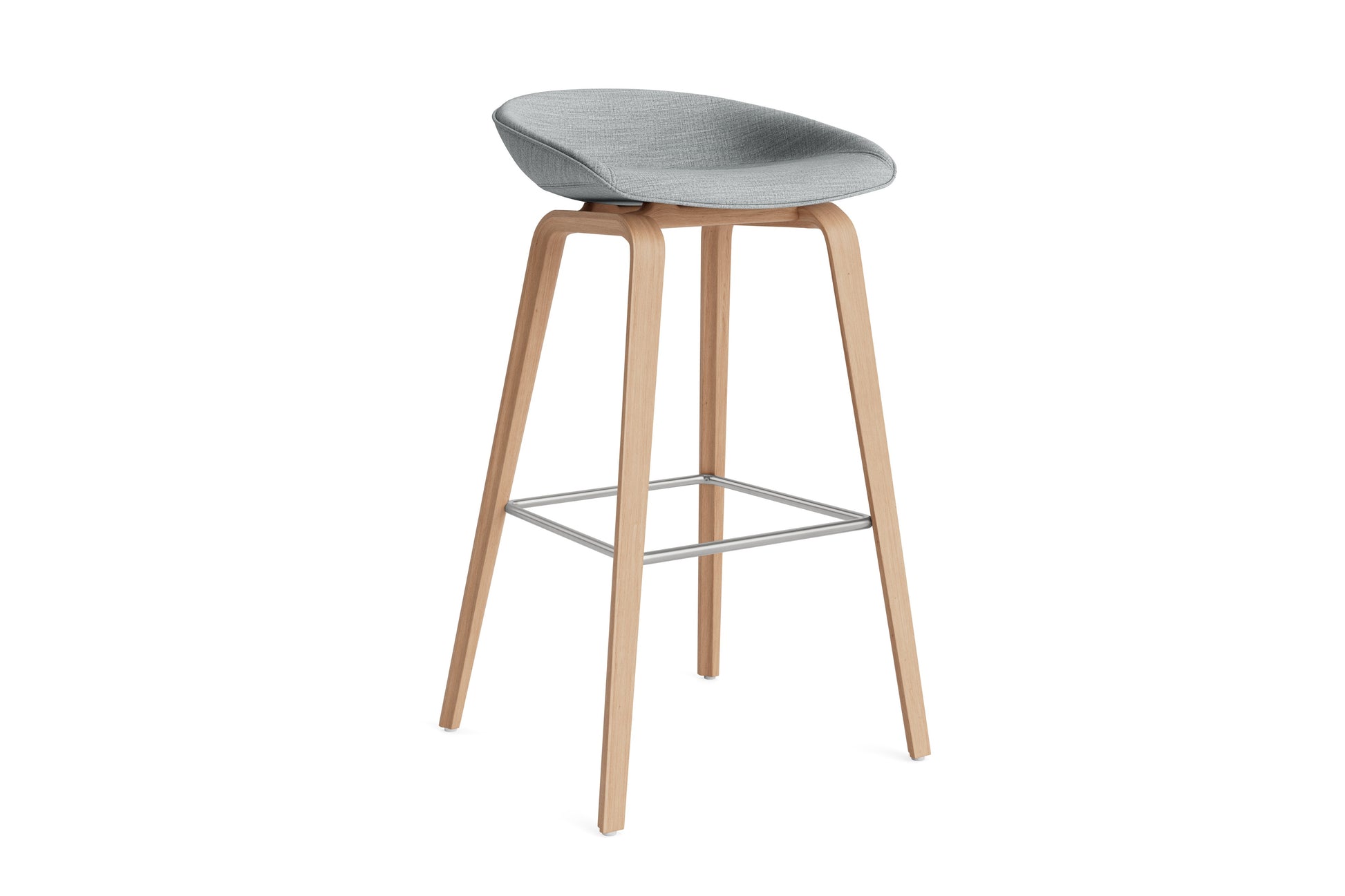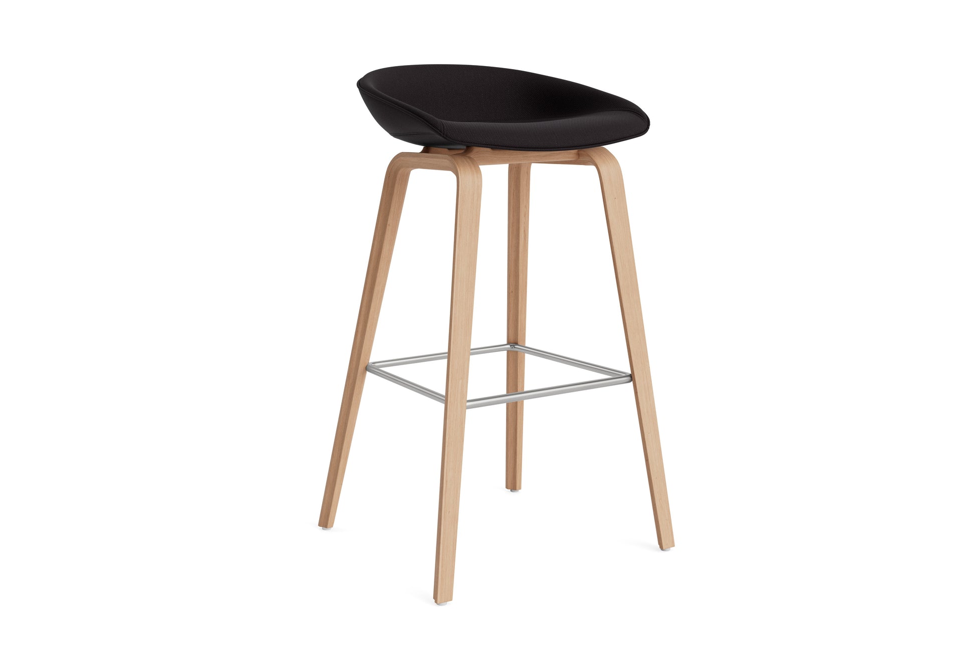 Featuring a curved backrest and long, elegant wooden legs, About A Stool AAS 33 shares the same versatile profile as the other designs in the collection. The upholstered seat is offered in a wide variety of fabric options, with the legs available in two heights in different wood finishes. The series’ simple yet strong visual presence makes it ideal as a bar stool in a variety of corporate, public, and private contexts.