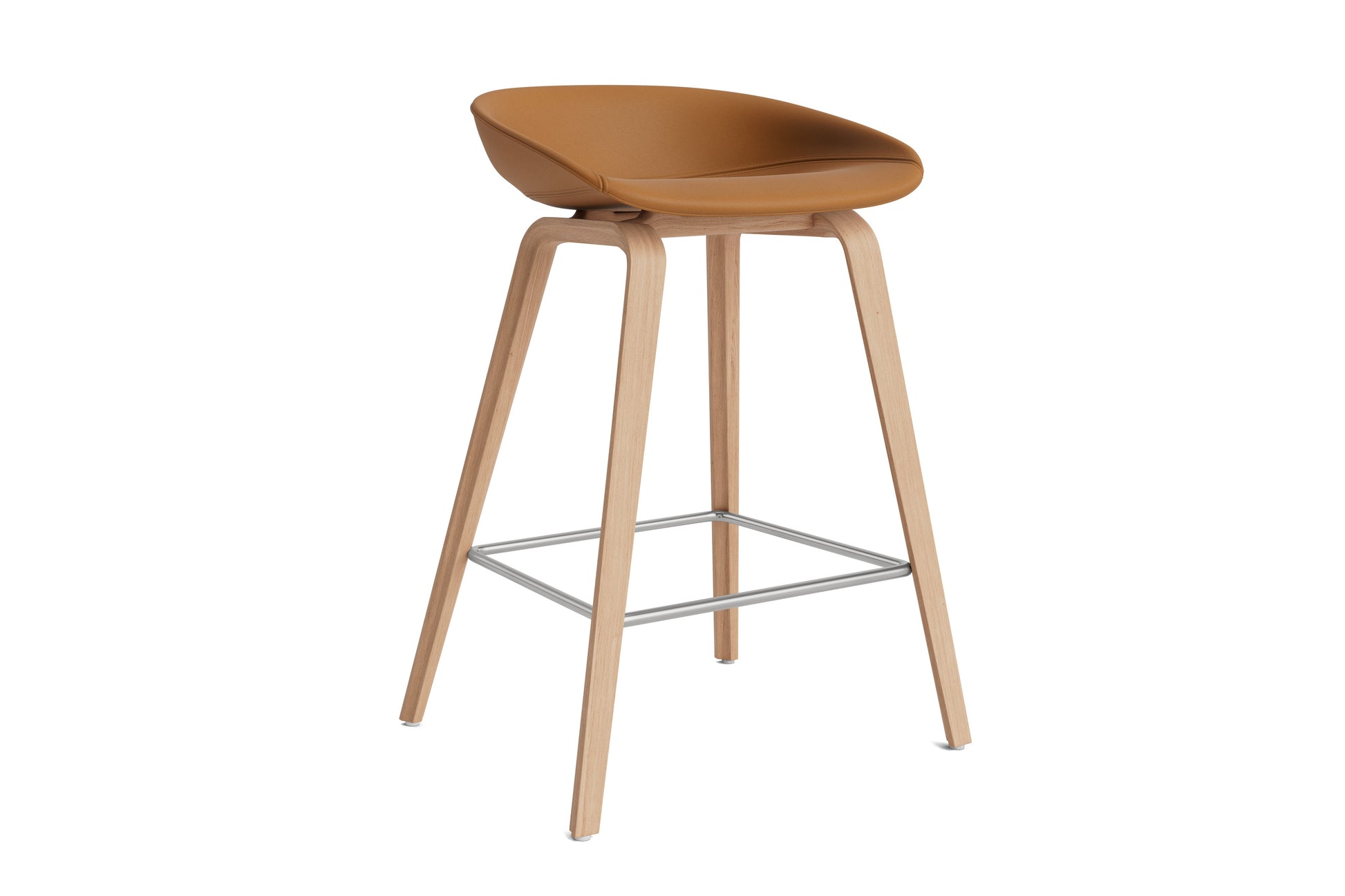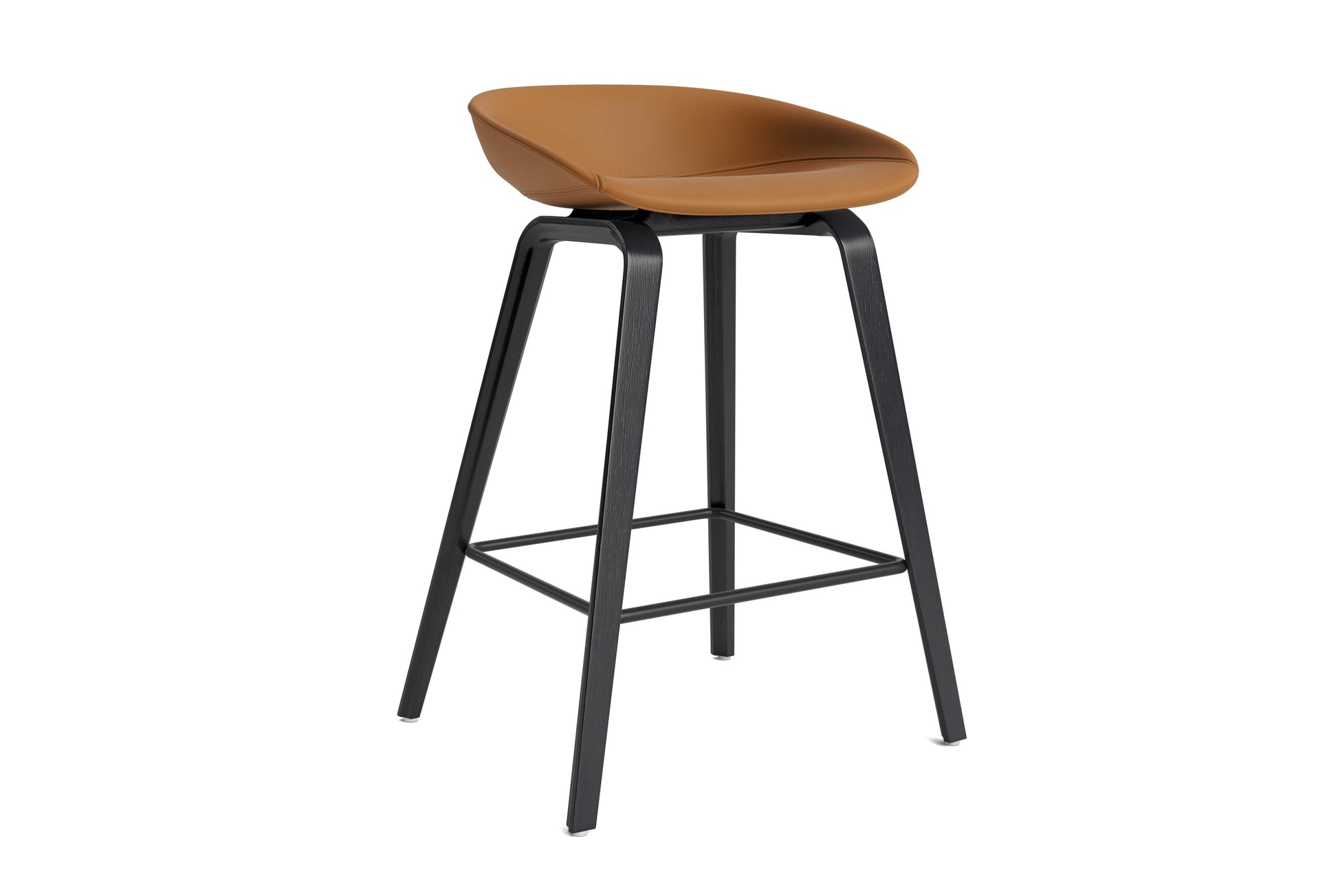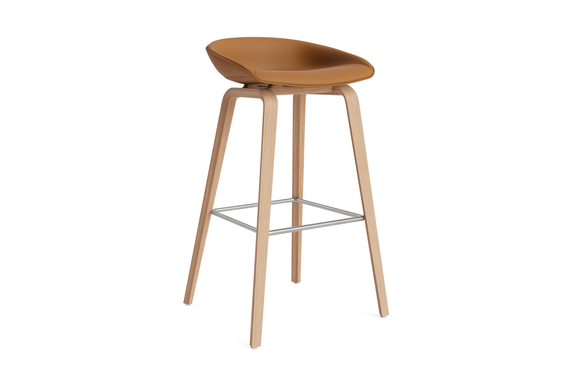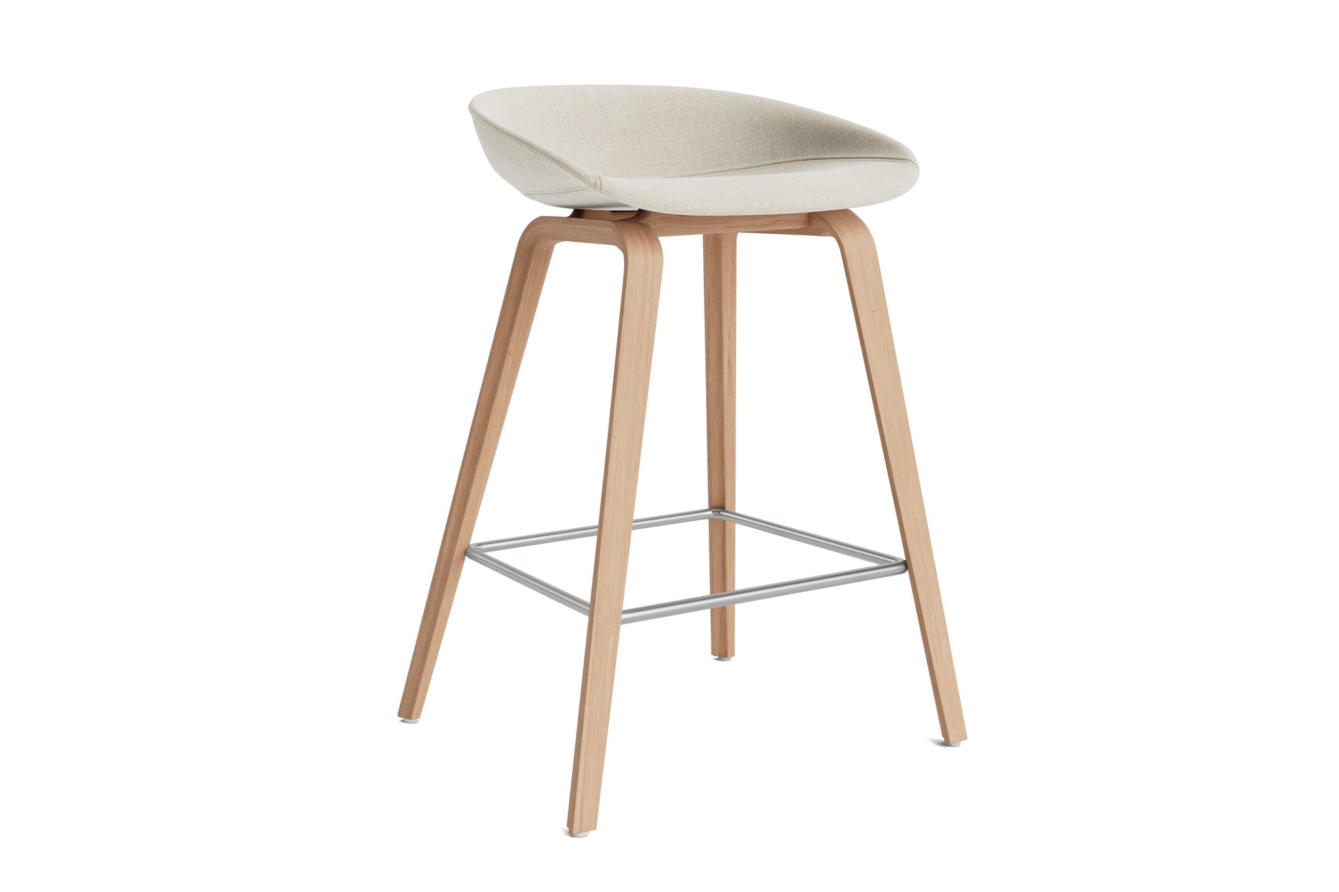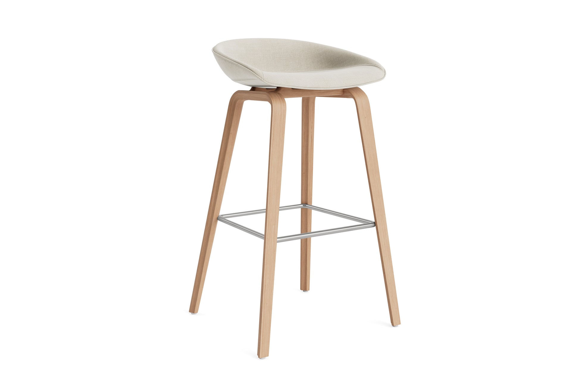 Featuring a curved backrest and long, elegant wooden legs, About A Stool AAS 33 shares the same versatile profile as the other designs in the collection. The upholstered seat is offered in a wide variety of fabric options, with the legs available in two heights in different wood finishes. The series’ simple yet strong visual presence makes it ideal as a bar stool in a variety of corporate, public, and private contexts.
