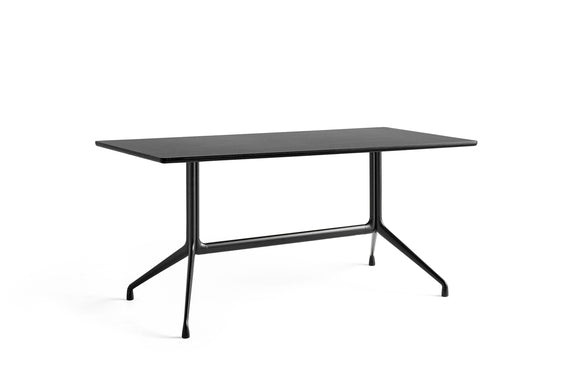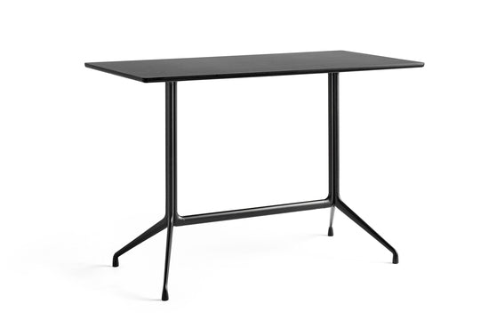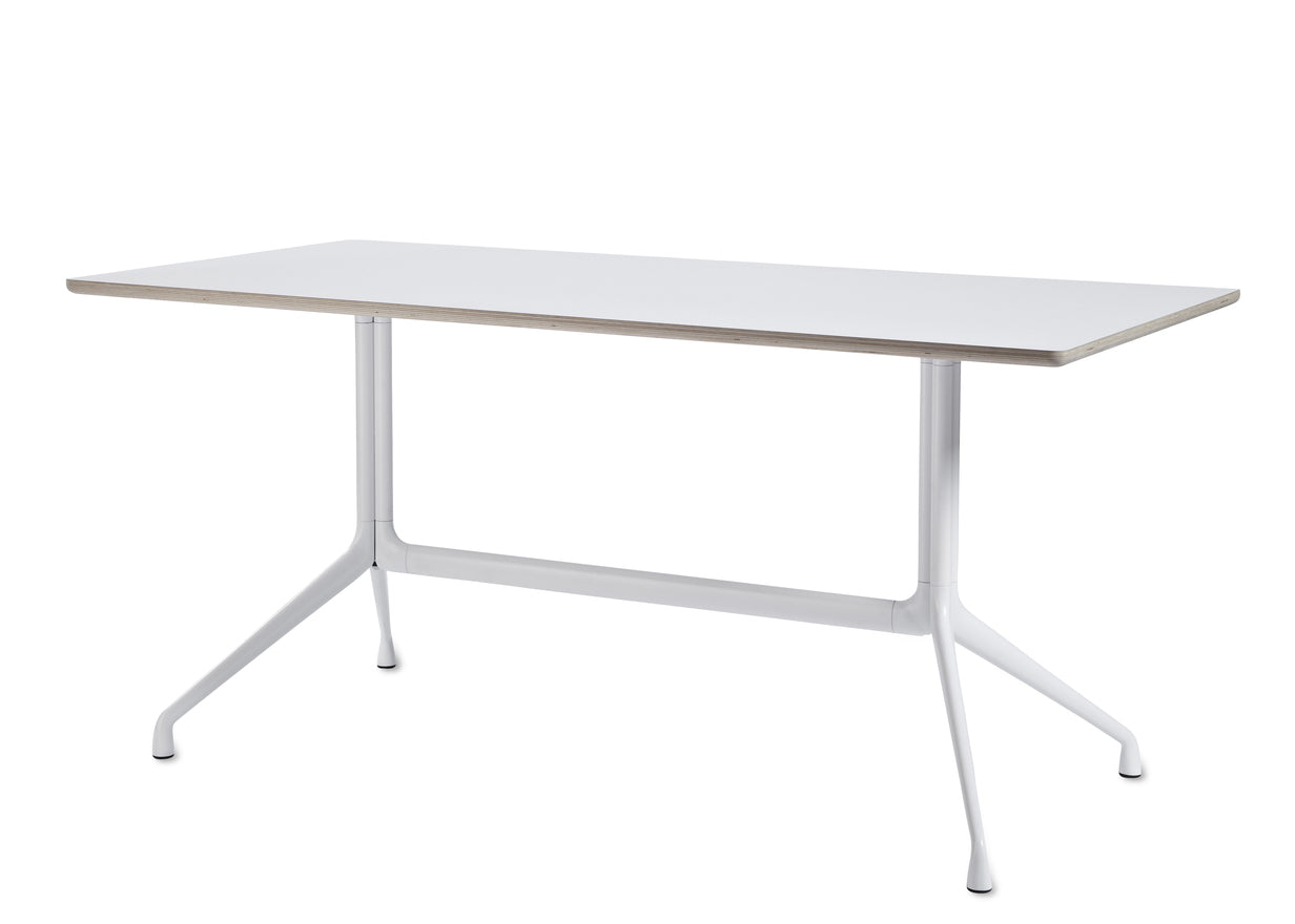 The About A Table shares the general versatility and design language as the rest of the family. The table features the same powder coated frame as many of the chairs in the series, and the organic curves and raised feet convey a similar light expression. The tables are available with round or rectangular tabletops, with the round tabletop resting on a centred frame, while the rectangular version has its legs positioned at both ends and has a cross-bar construction.