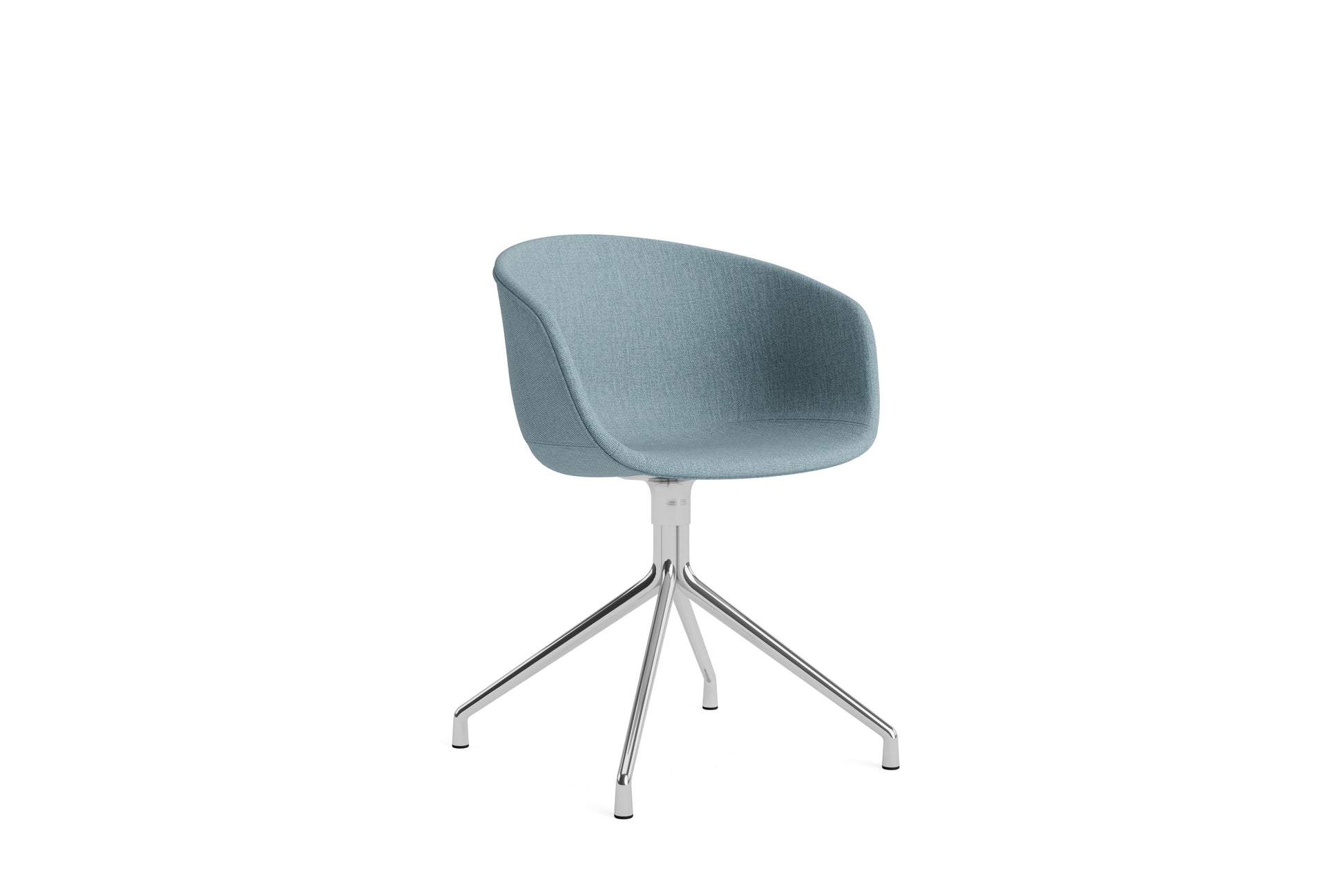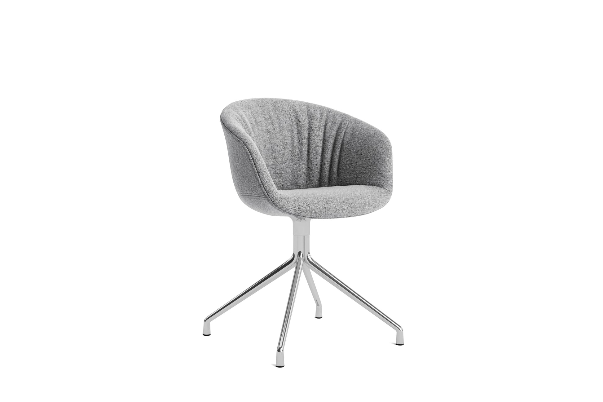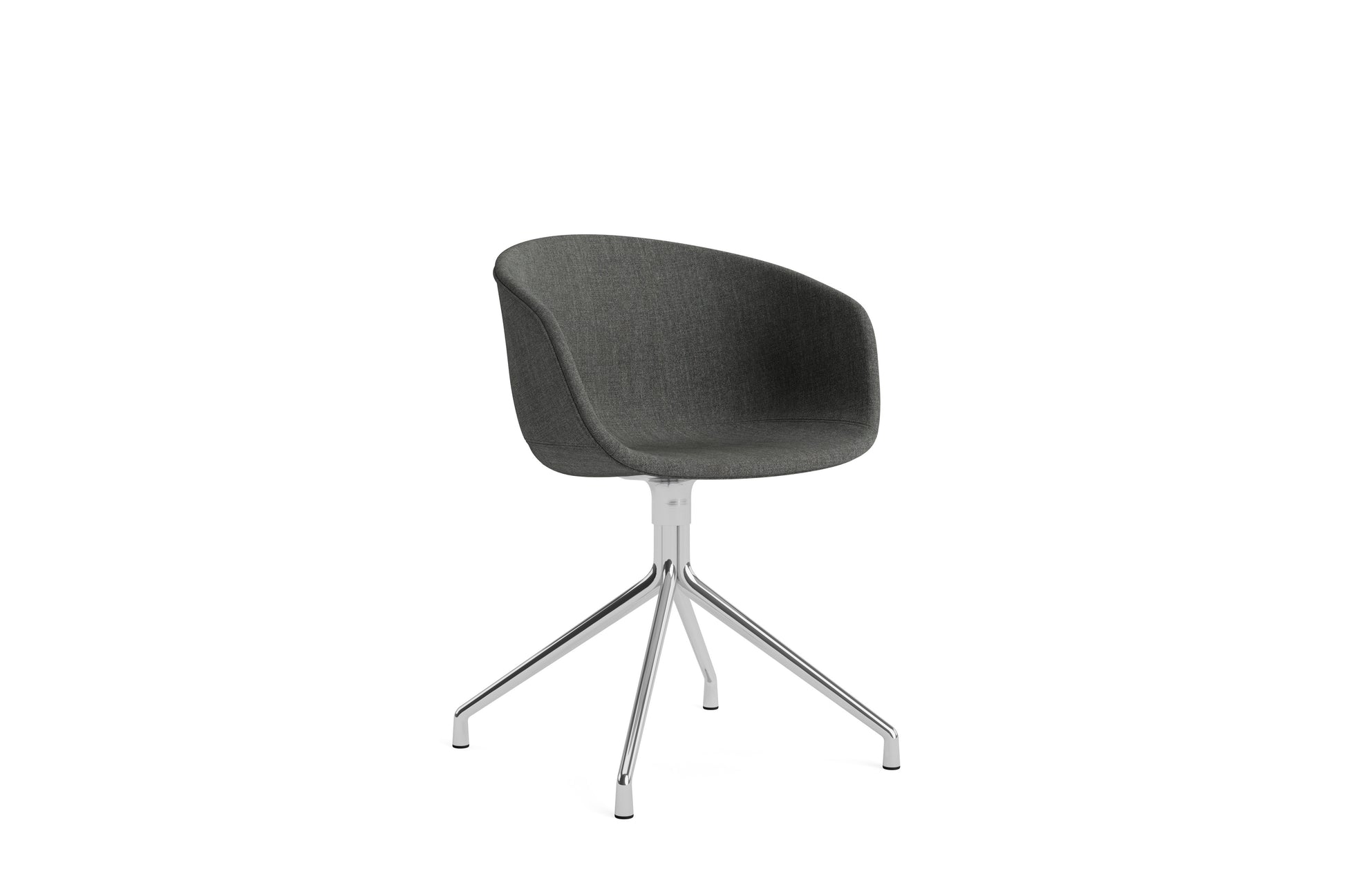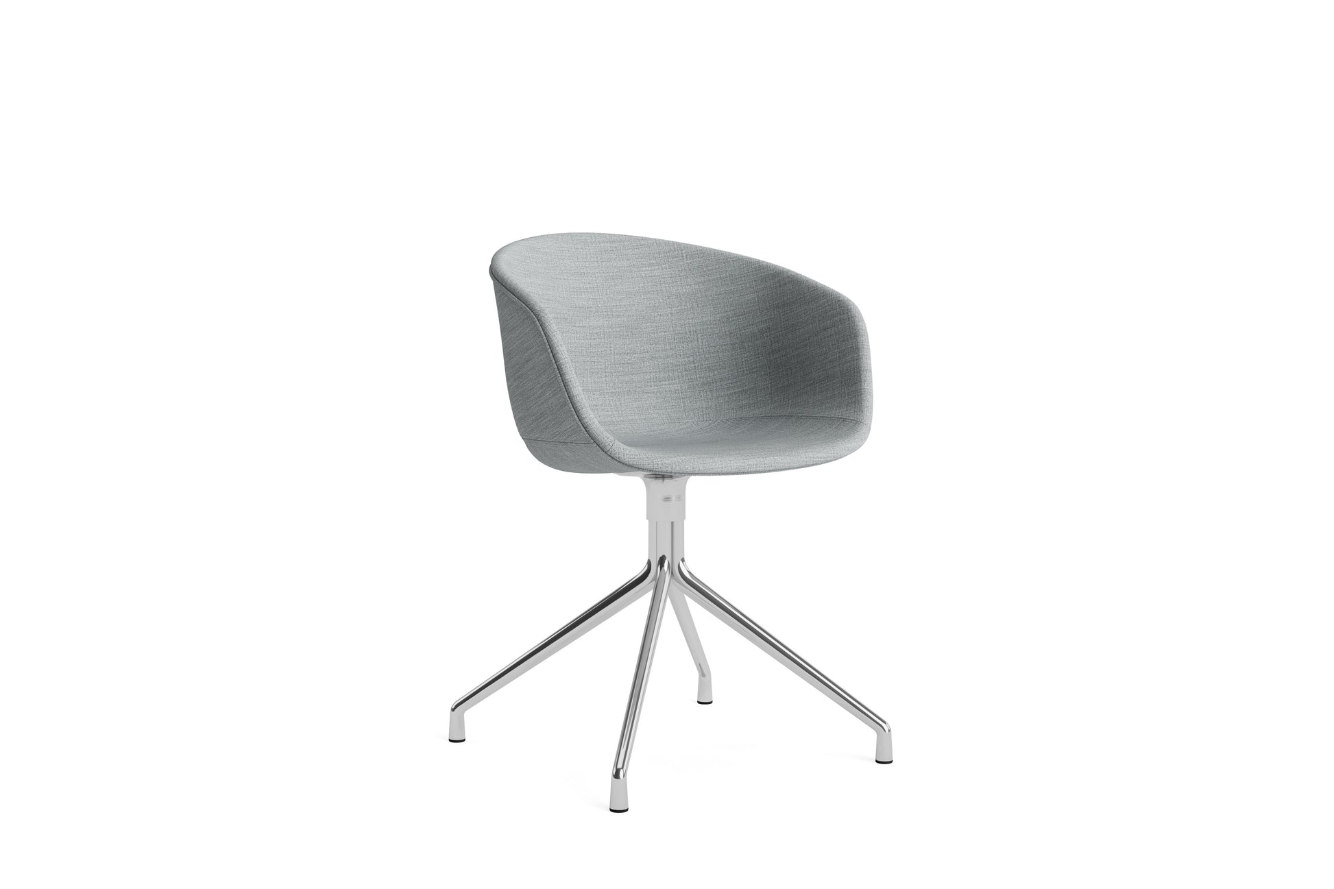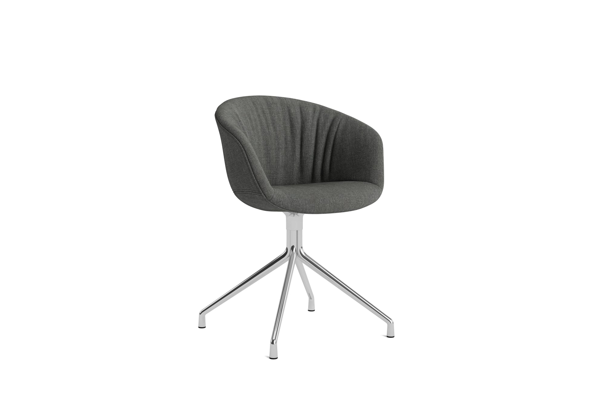 The About a Chair AAC 21 modifies the more formal expression of the aluminium swivel base with the softness and warmth of the upholstered shell. Retaining the same curved shell with unified silhouette that characterises the entire collection, this design features a functional base with legs that fan out from the centre. The cast aluminium swivel base is available in polished or powder coated finishes, with the post-consumer recycled plastic shell offered in a variety of regular and quilted upholstery options. The multitude of variants and design combinations give this series great versatility in a wide range of corporate, public, and private contexts.