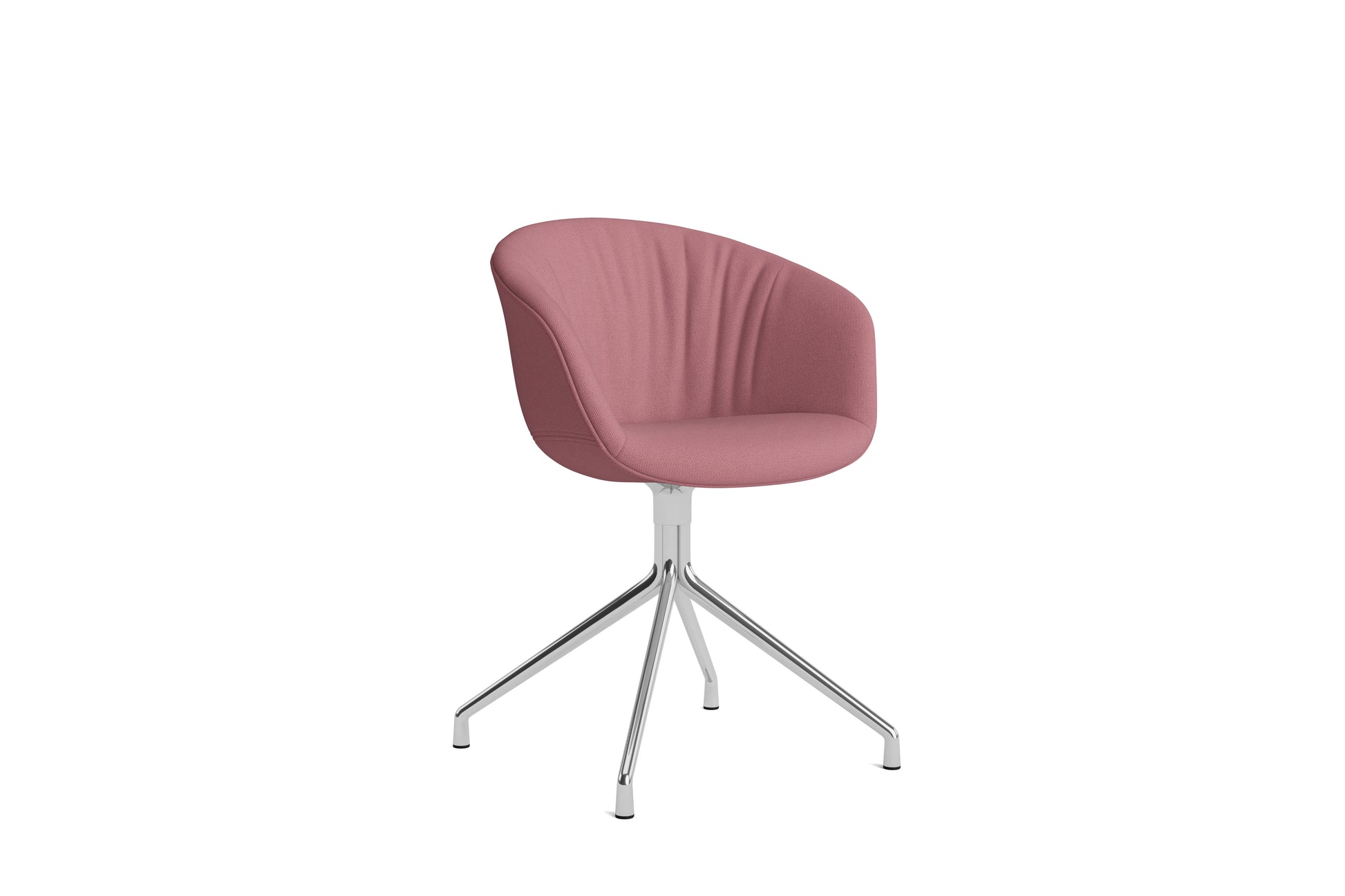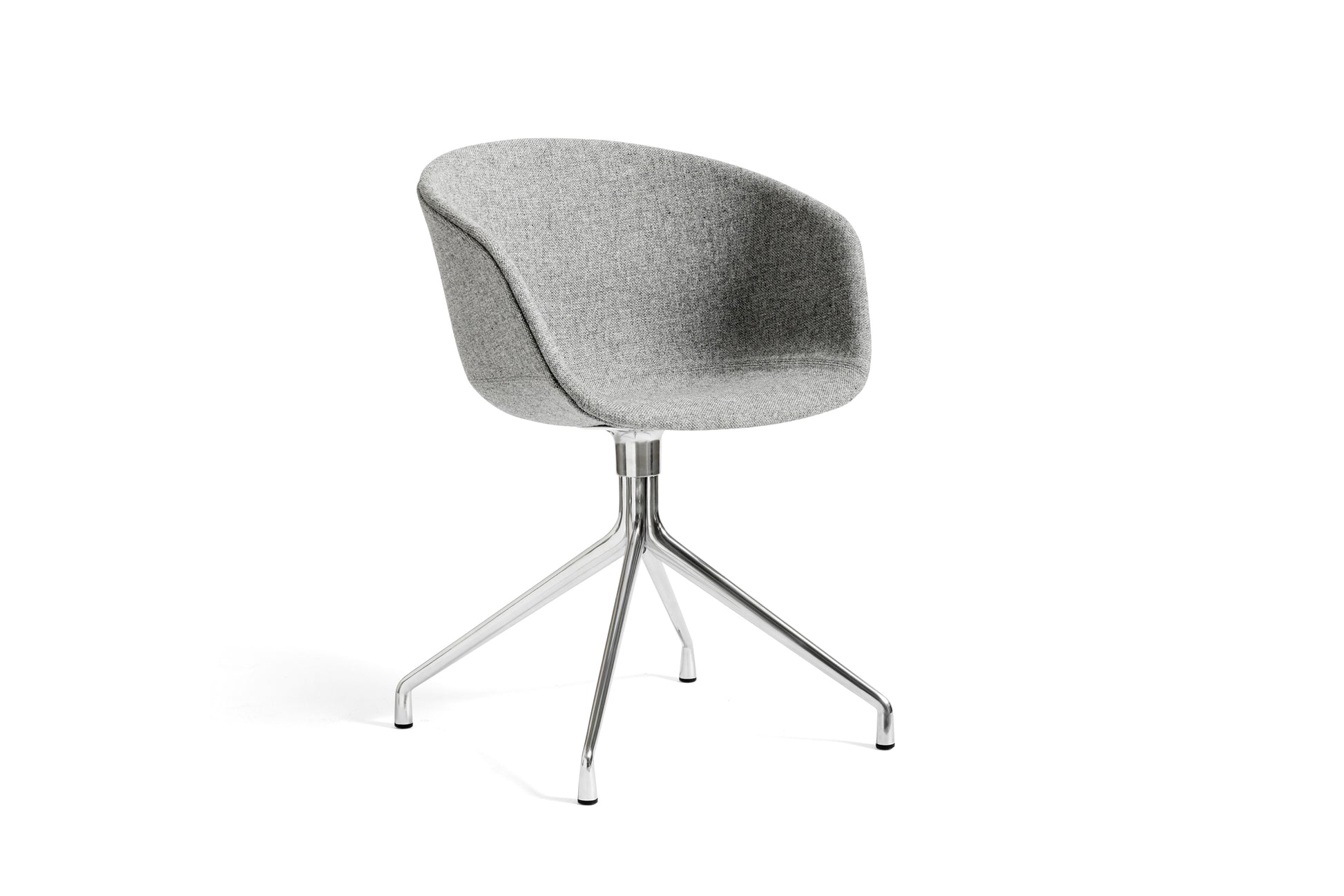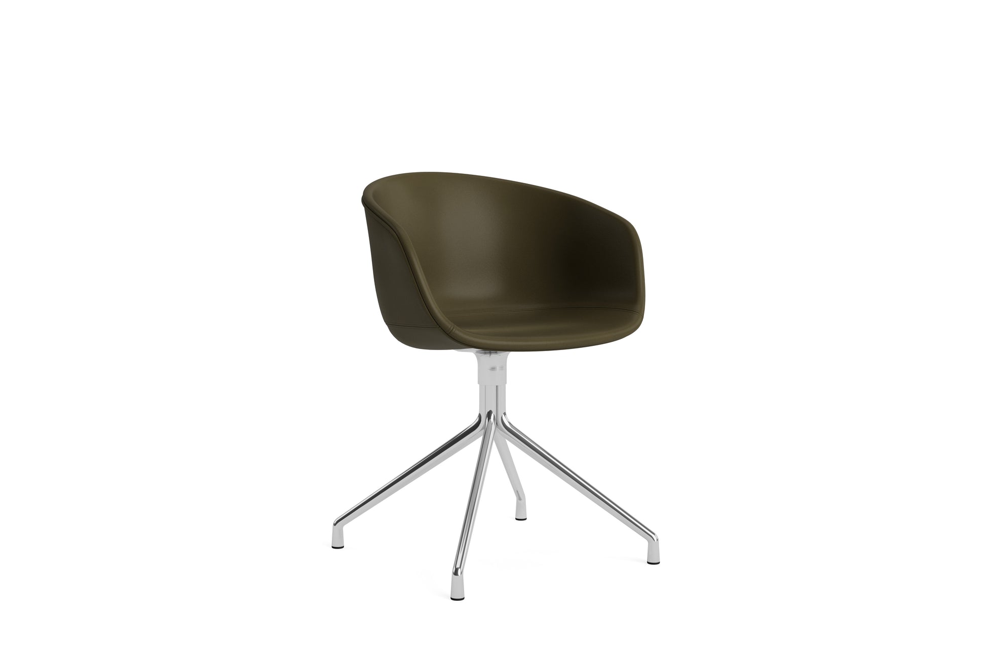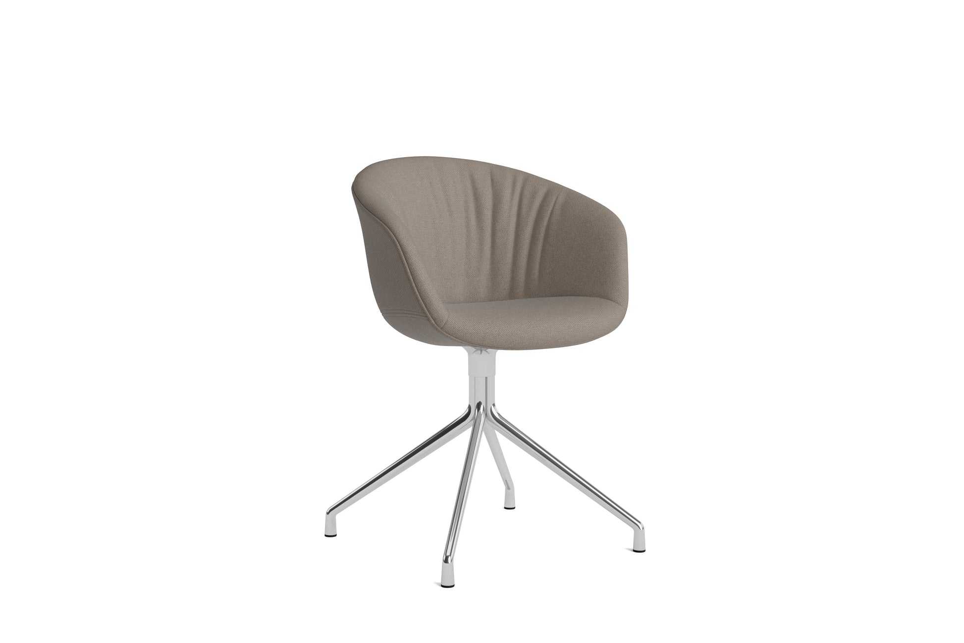 The About a Chair AAC 21 modifies the more formal expression of the aluminium swivel base with the softness and warmth of the upholstered shell. Retaining the same curved shell with unified silhouette that characterises the entire collection, this design features a functional base with legs that fan out from the centre. The cast aluminium swivel base is available in polished or powder coated finishes, with the post-consumer recycled plastic shell offered in a variety of regular and quilted upholstery options. The multitude of variants and design combinations give this series great versatility in a wide range of corporate, public, and private contexts.