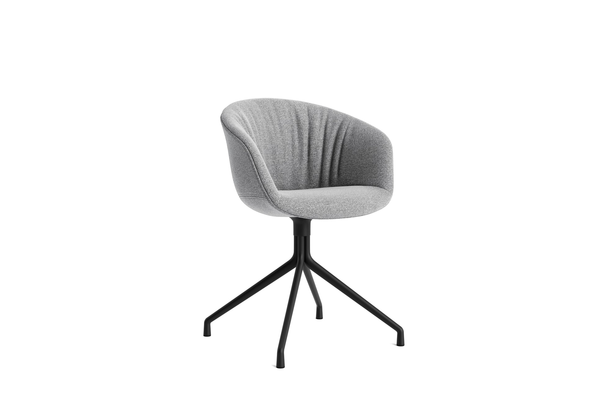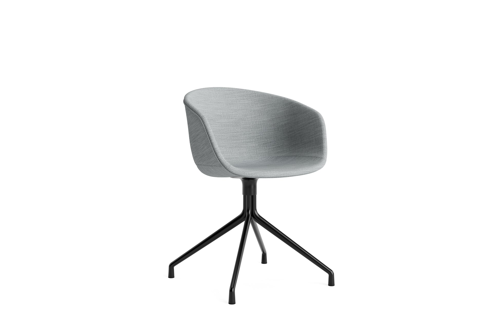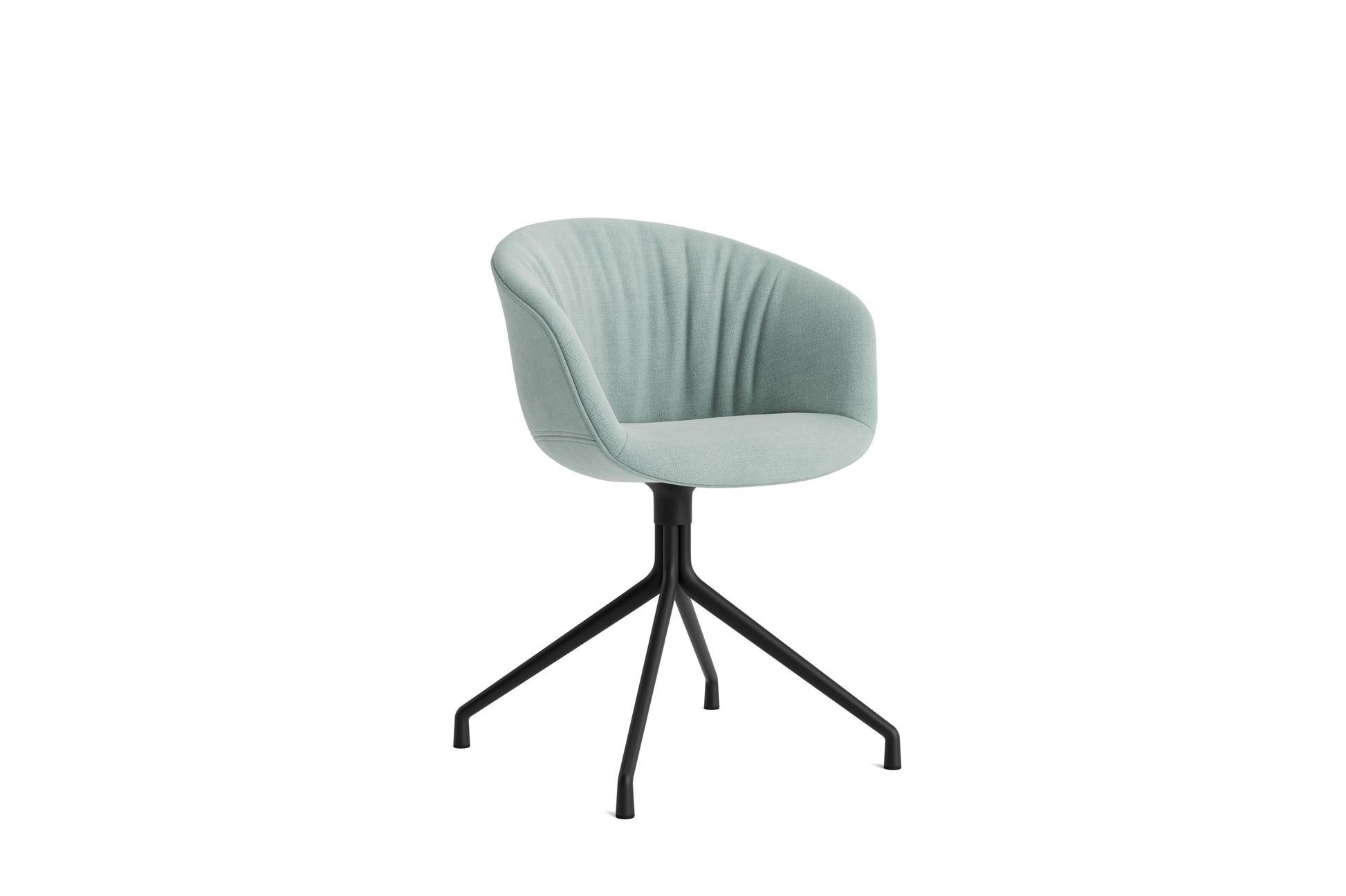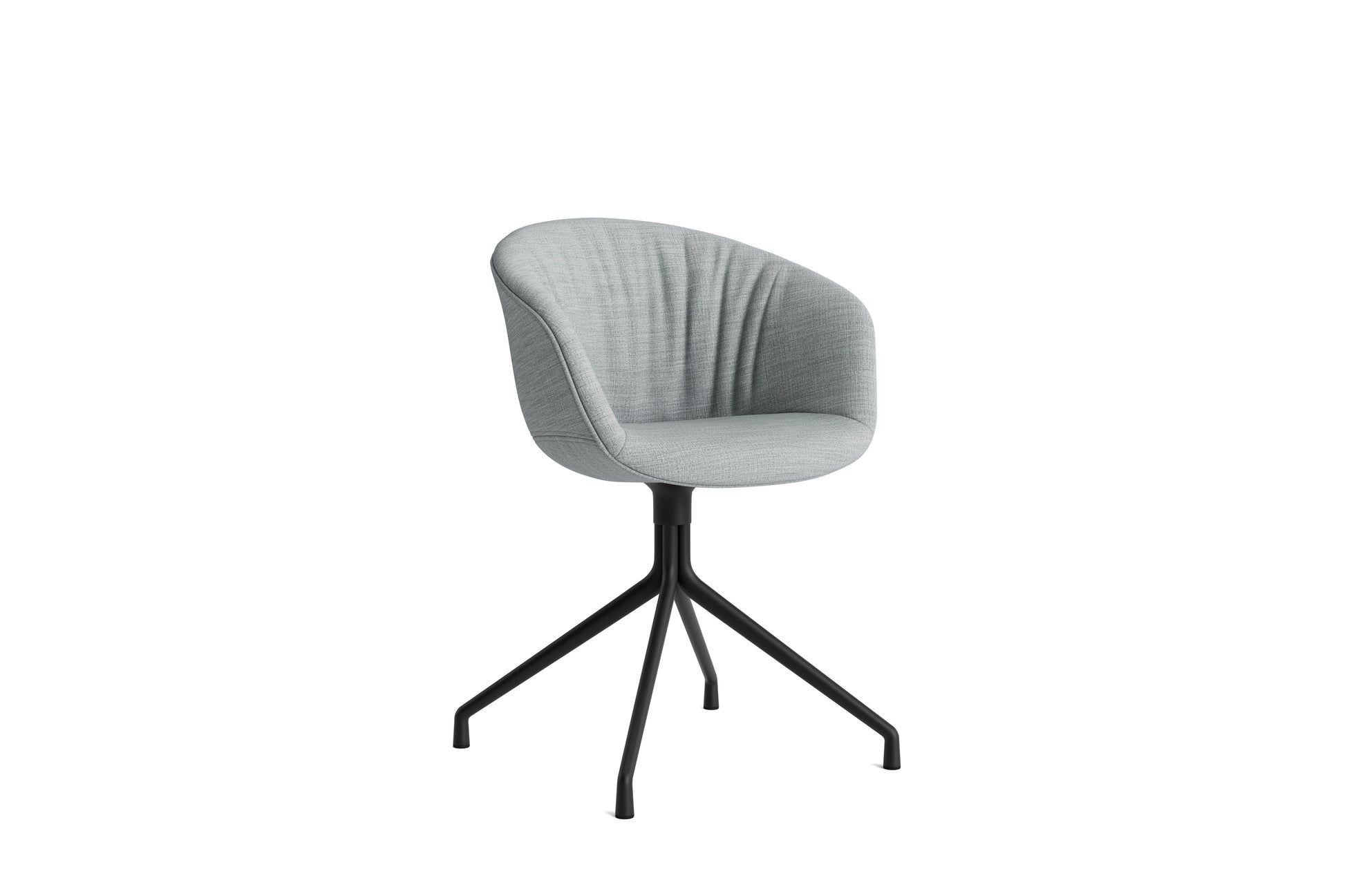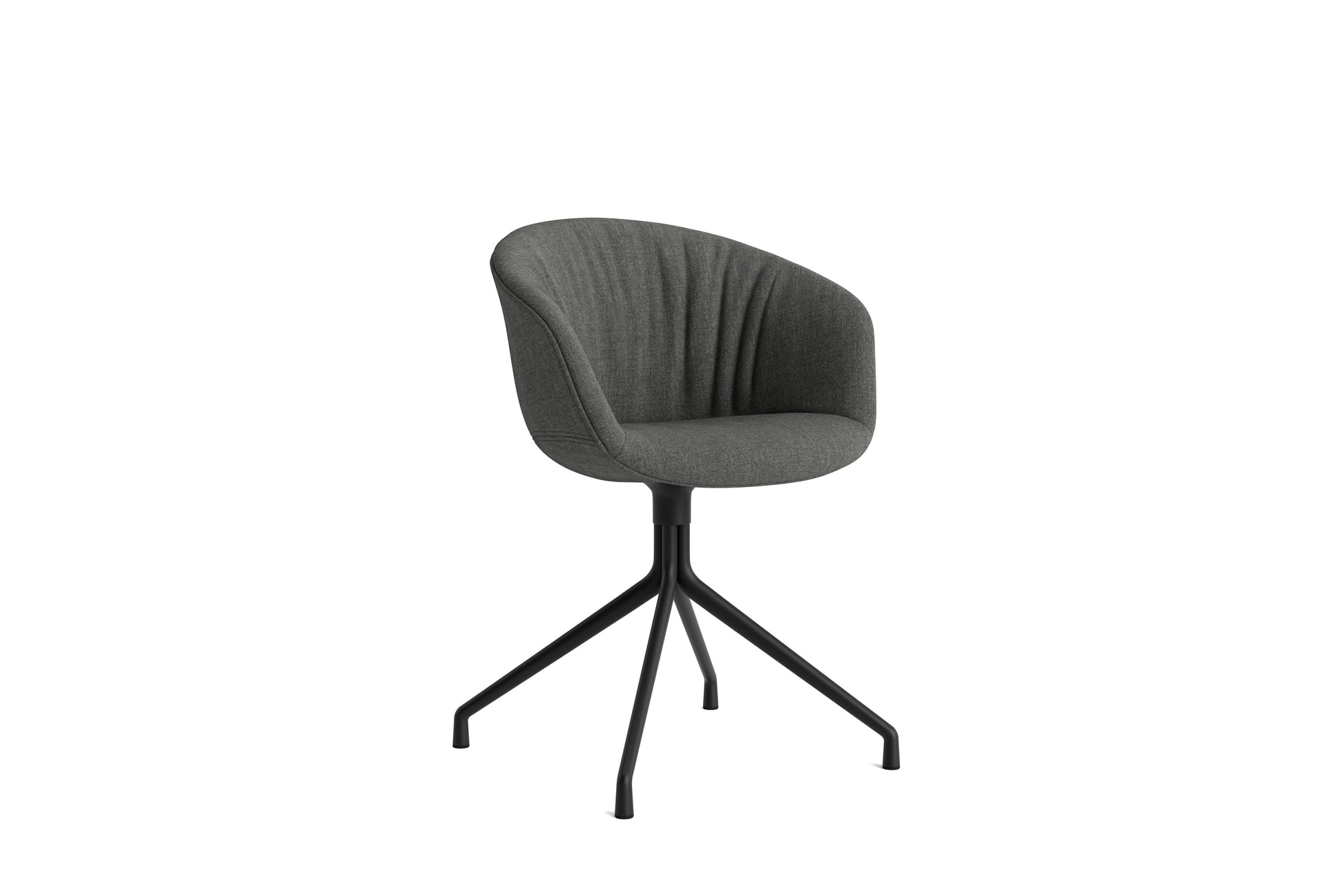 The About a Chair AAC 21 modifies the more formal expression of the aluminium swivel base with the softness and warmth of the upholstered shell. Retaining the same curved shell with unified silhouette that characterises the entire collection, this design features a functional base with legs that fan out from the centre. The cast aluminium swivel base is available in polished or powder coated finishes, with the post-consumer recycled plastic shell offered in a variety of regular and quilted upholstery options. The multitude of variants and design combinations give this series great versatility in a wide range of corporate, public, and private contexts.