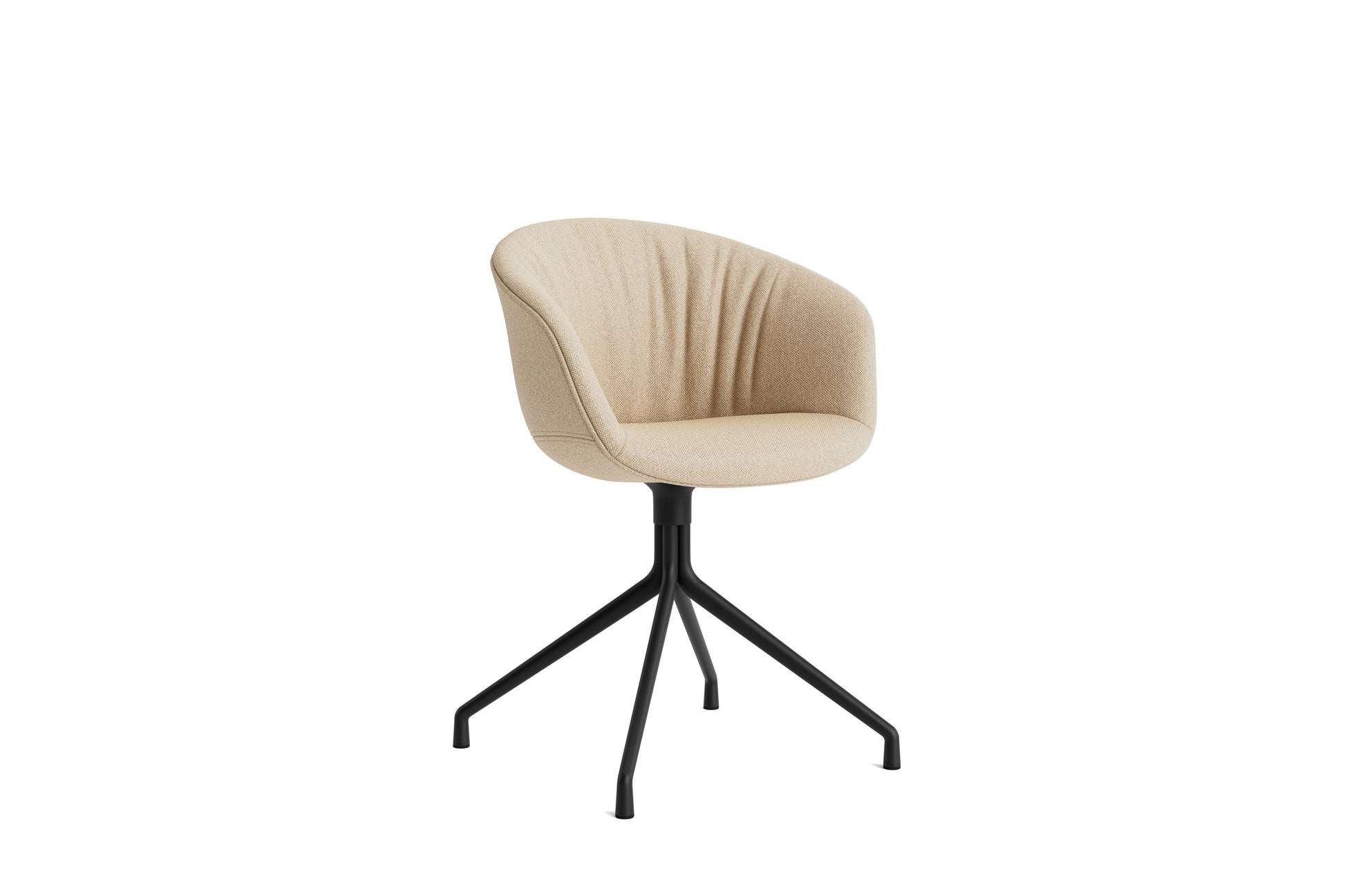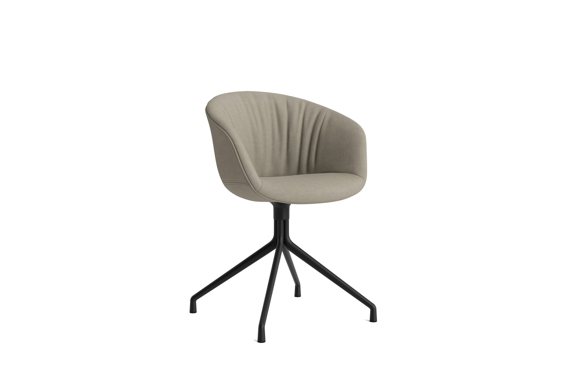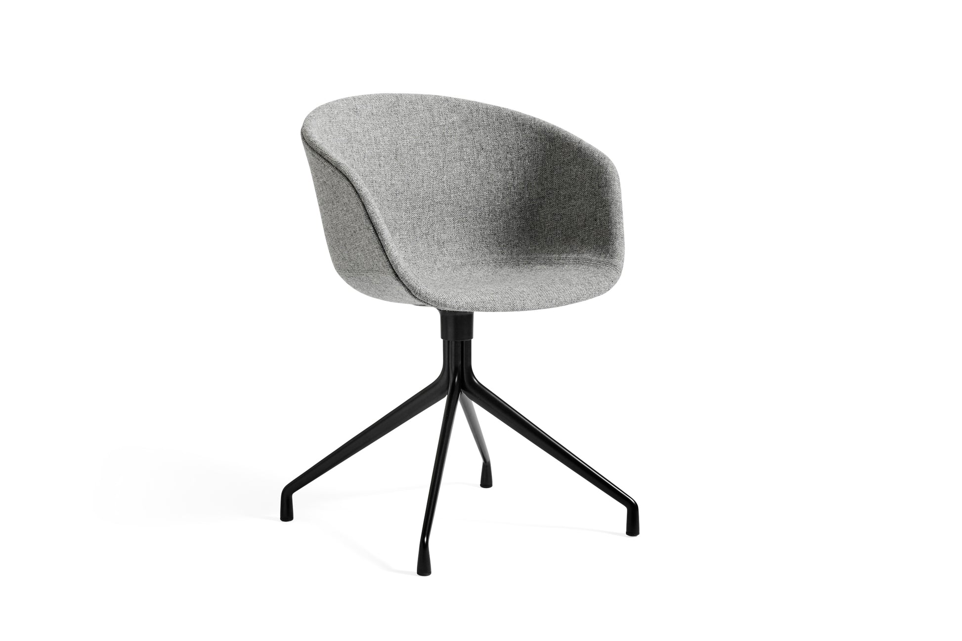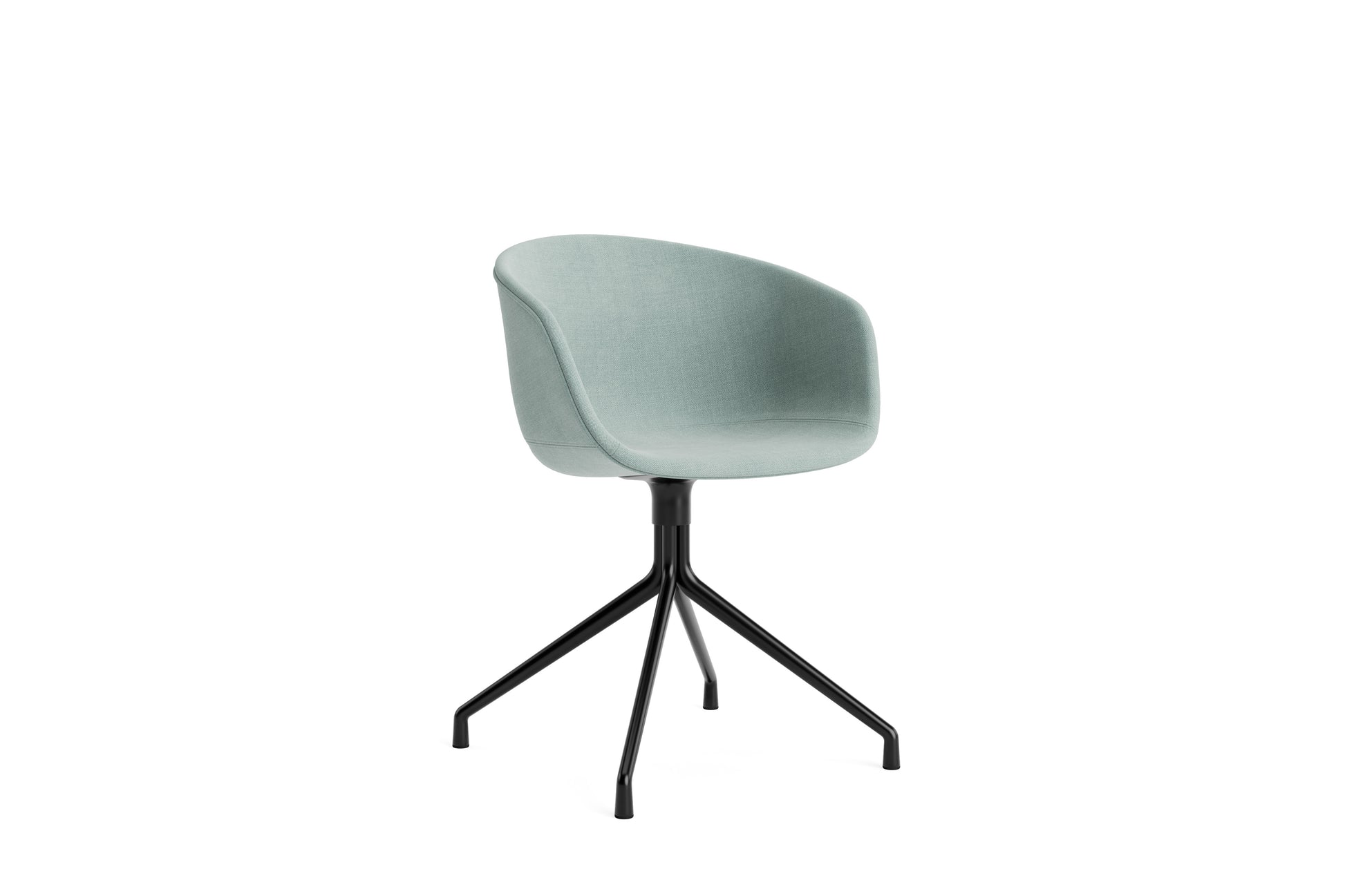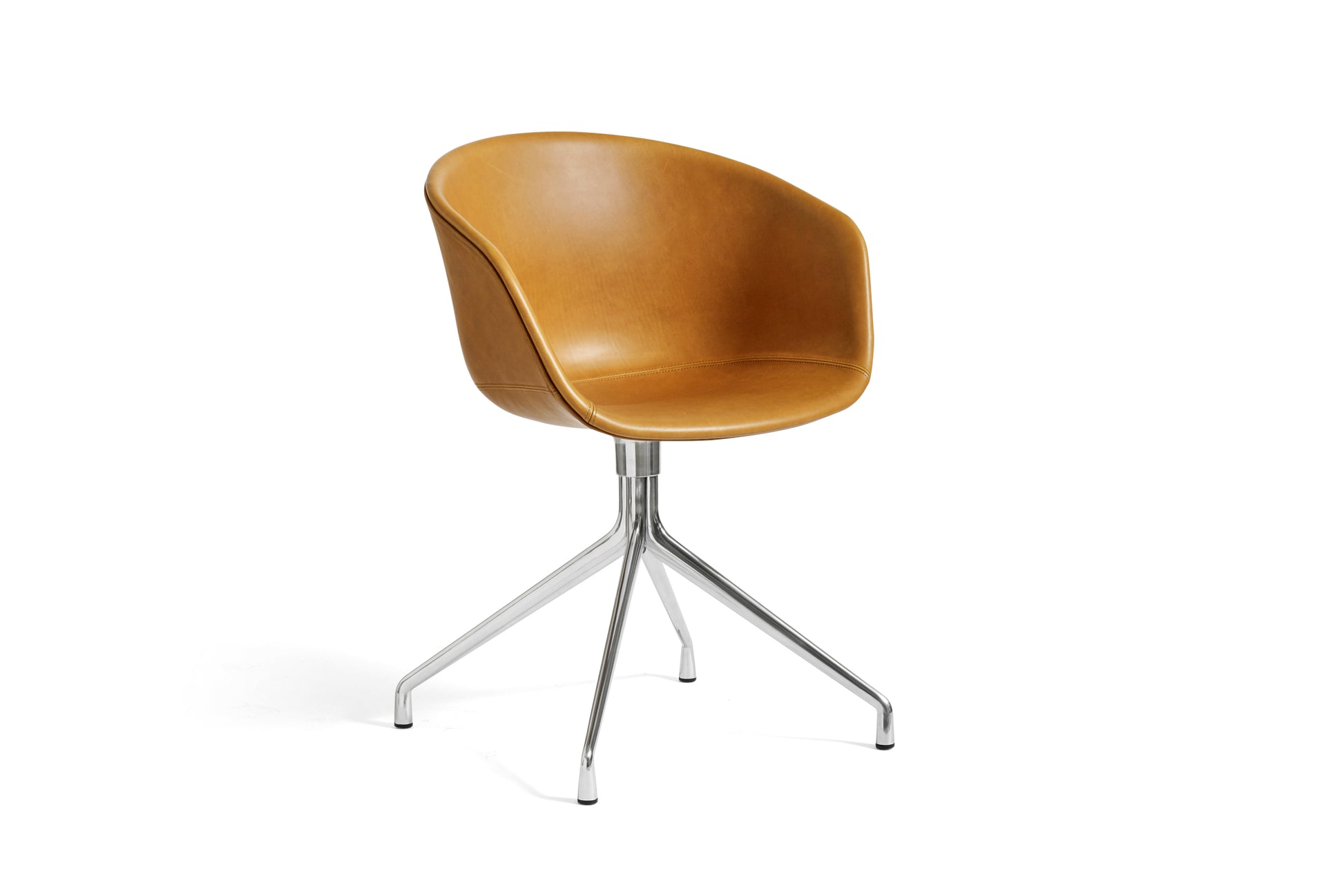 The About a Chair AAC 21 modifies the more formal expression of the aluminium swivel base with the softness and warmth of the upholstered shell. Retaining the same curved shell with unified silhouette that characterises the entire collection, this design features a functional base with legs that fan out from the centre. The cast aluminium swivel base is available in polished or powder coated finishes, with the post-consumer recycled plastic shell offered in a variety of regular and quilted upholstery options. The multitude of variants and design combinations give this series great versatility in a wide range of corporate, public, and private contexts.