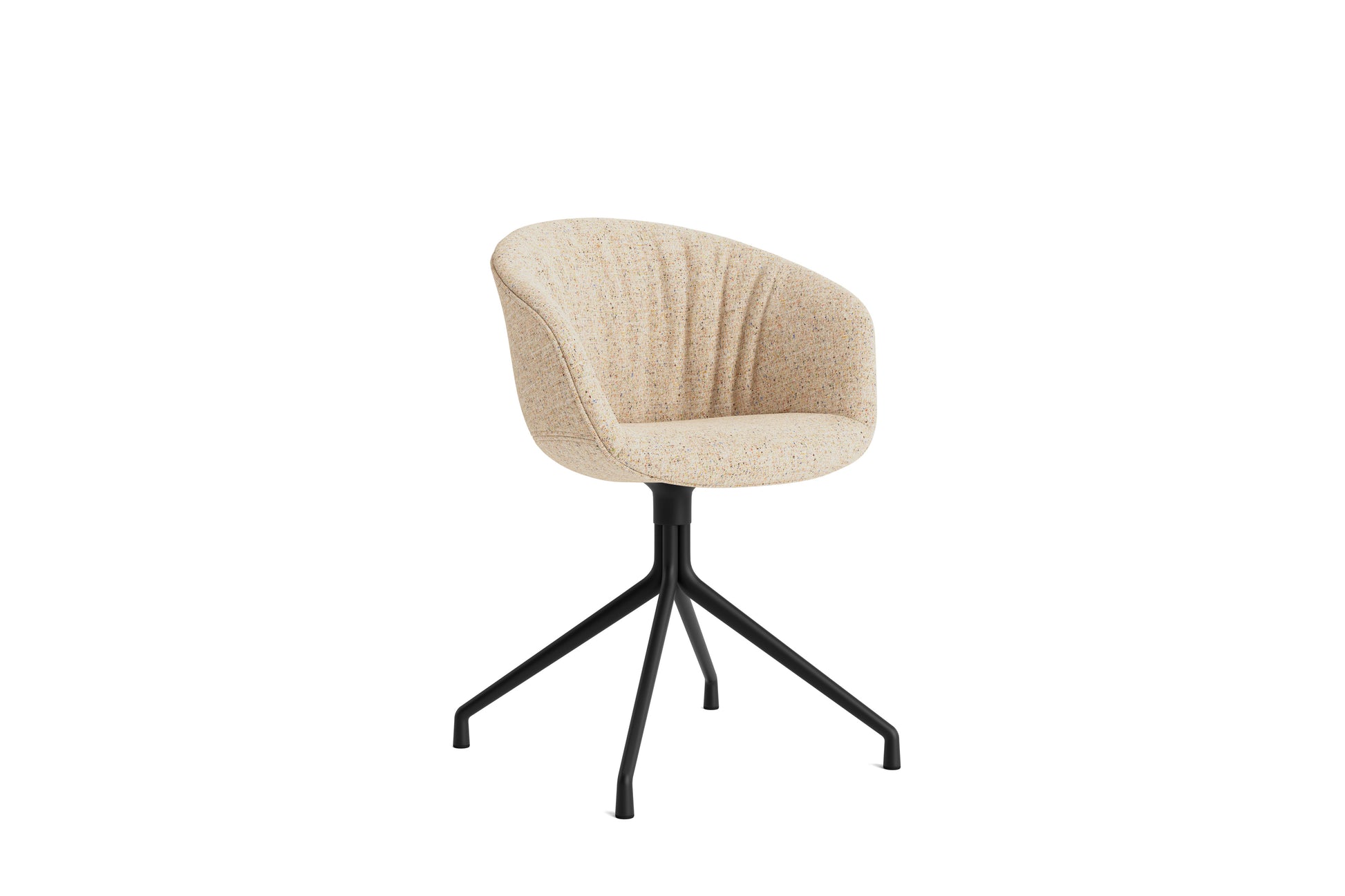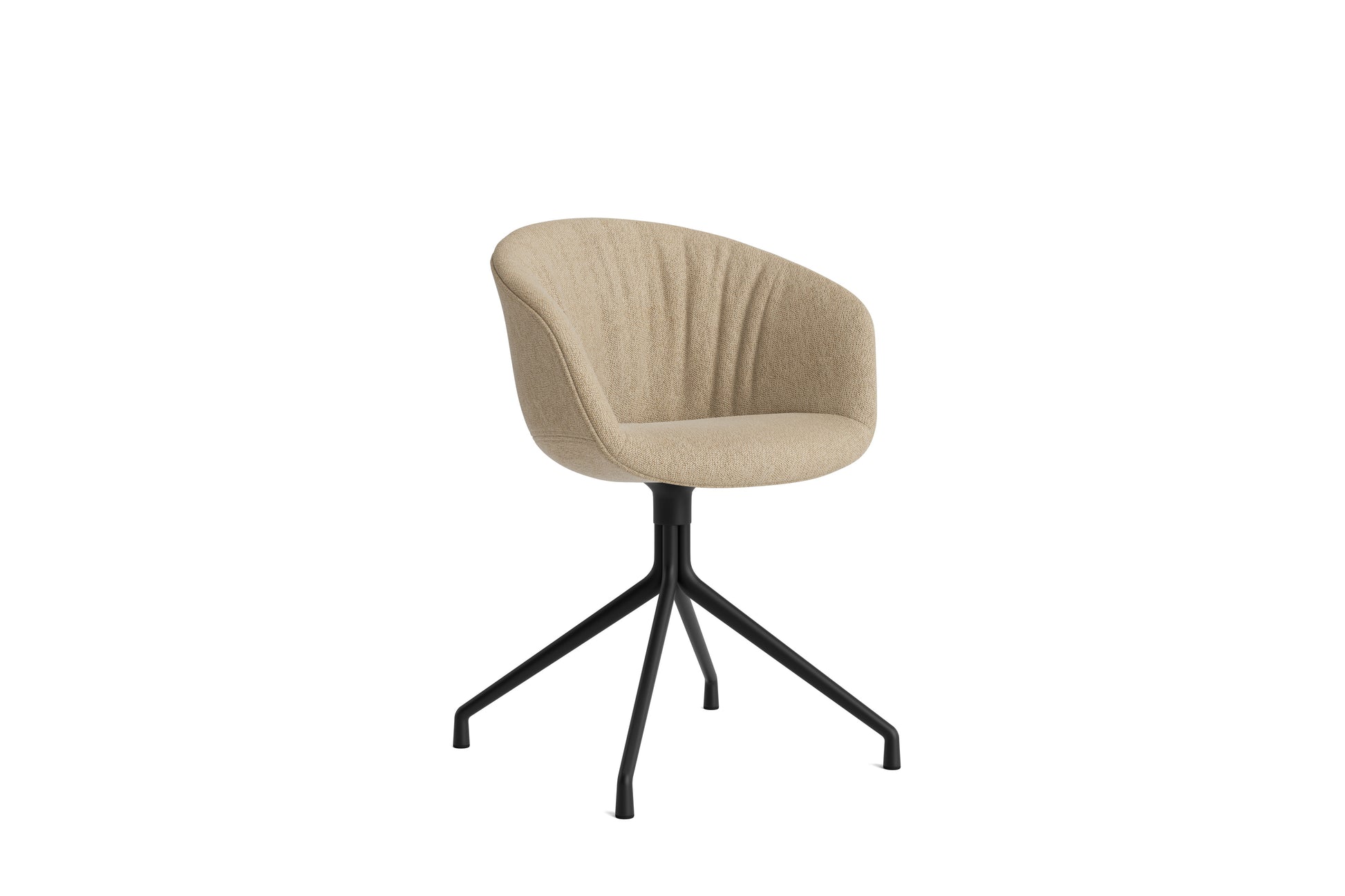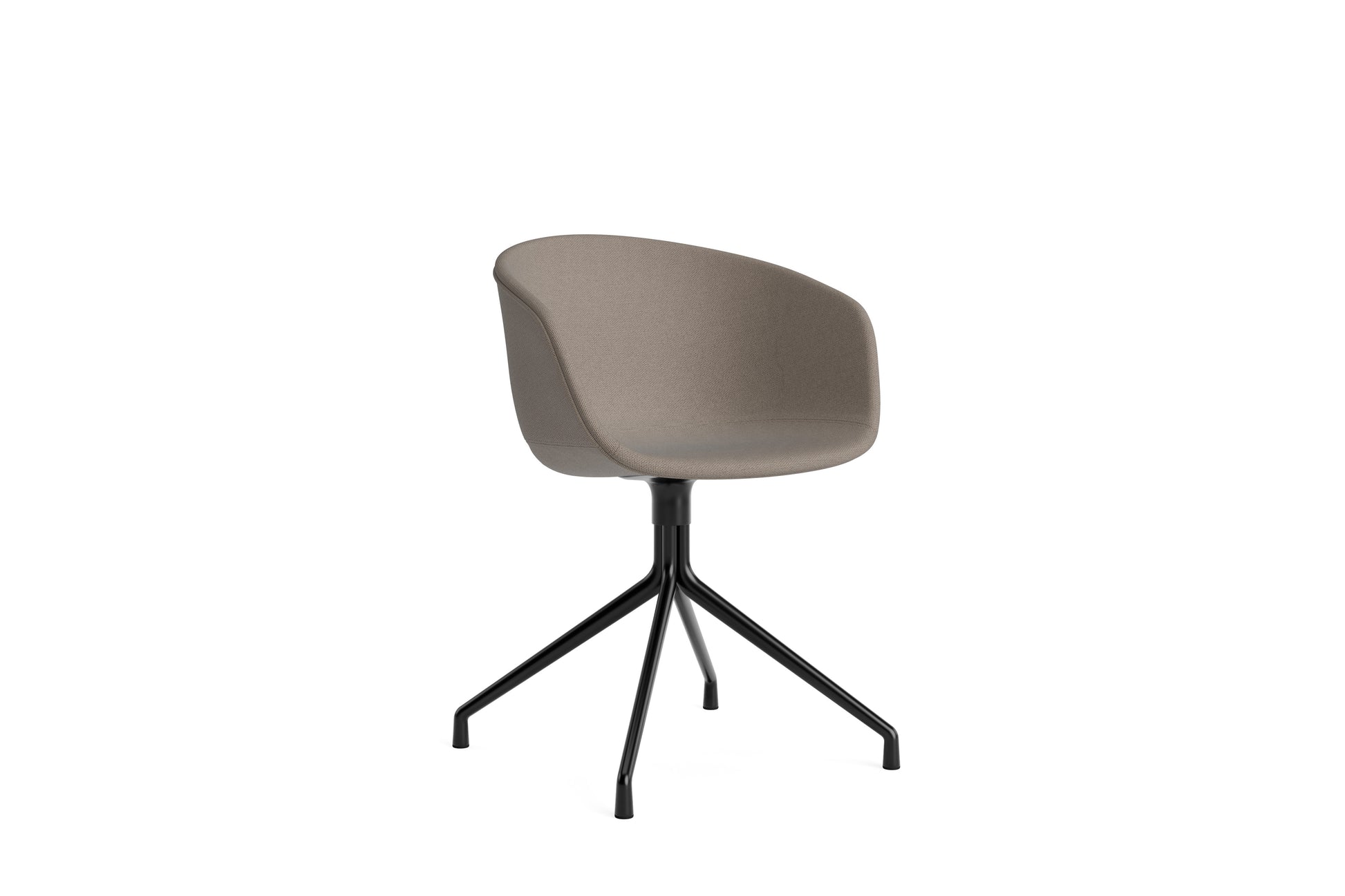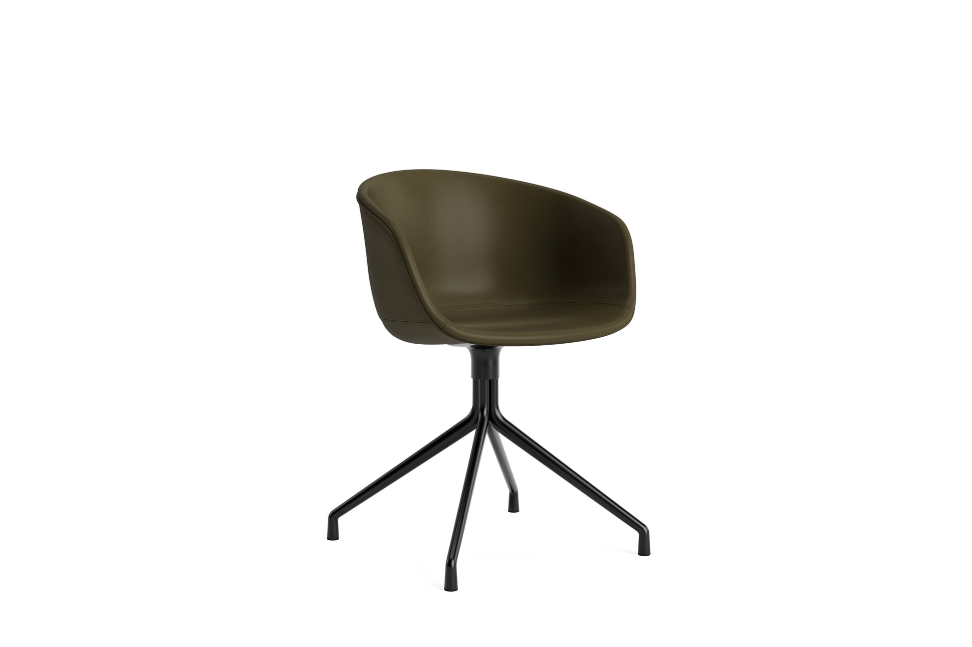 The About a Chair AAC 21 modifies the more formal expression of the aluminium swivel base with the softness and warmth of the upholstered shell. Retaining the same curved shell with unified silhouette that characterises the entire collection, this design features a functional base with legs that fan out from the centre. The cast aluminium swivel base is available in polished or powder coated finishes, with the post-consumer recycled plastic shell offered in a variety of regular and quilted upholstery options. The multitude of variants and design combinations give this series great versatility in a wide range of corporate, public, and private contexts.