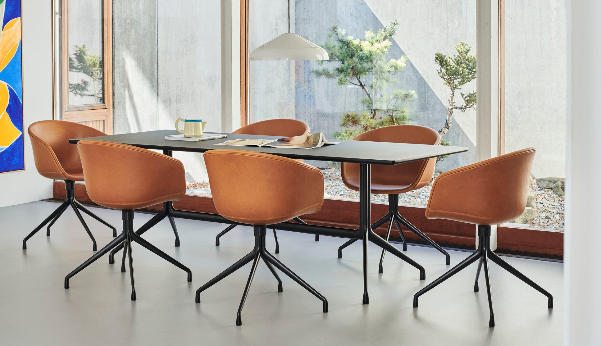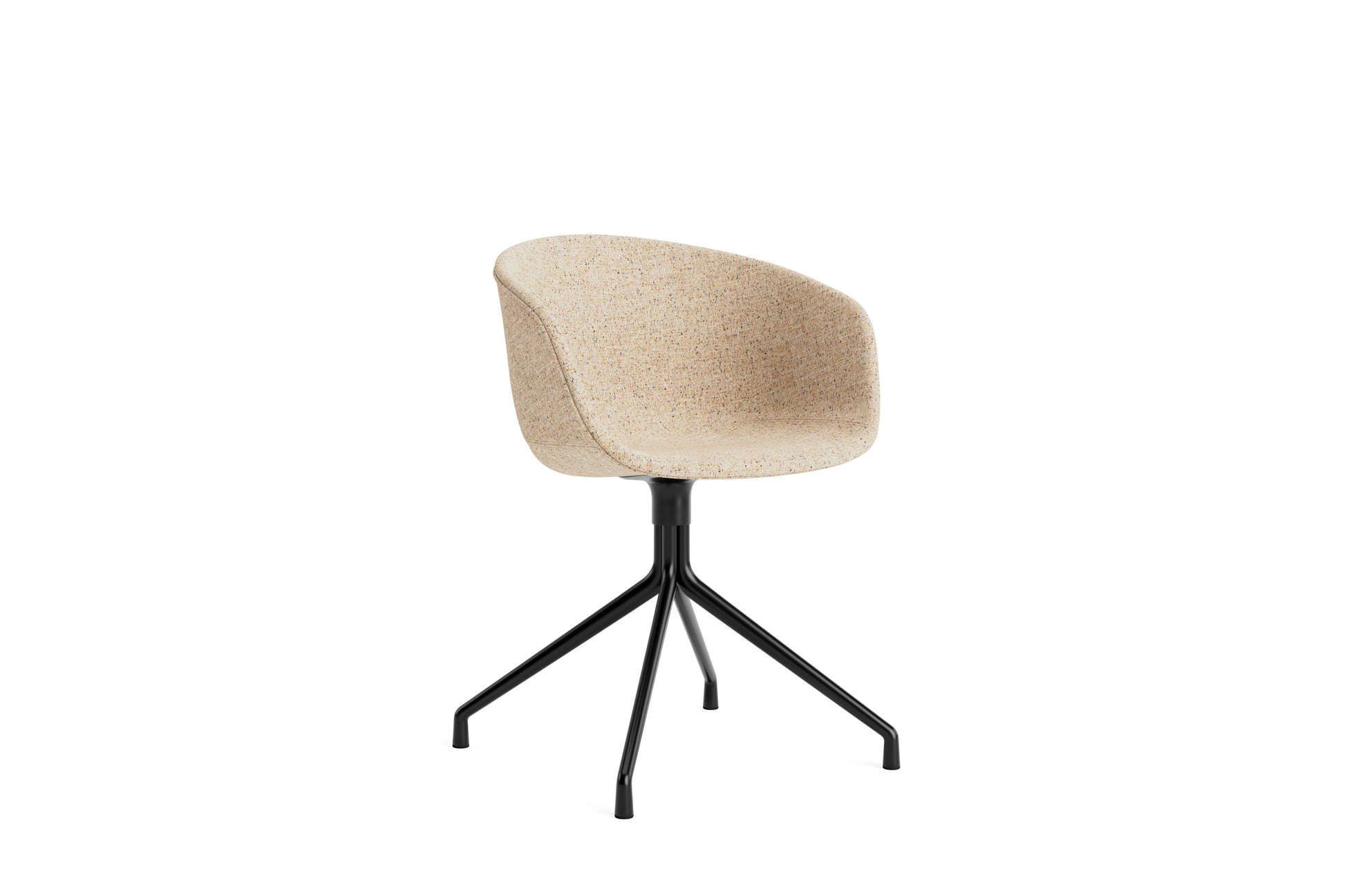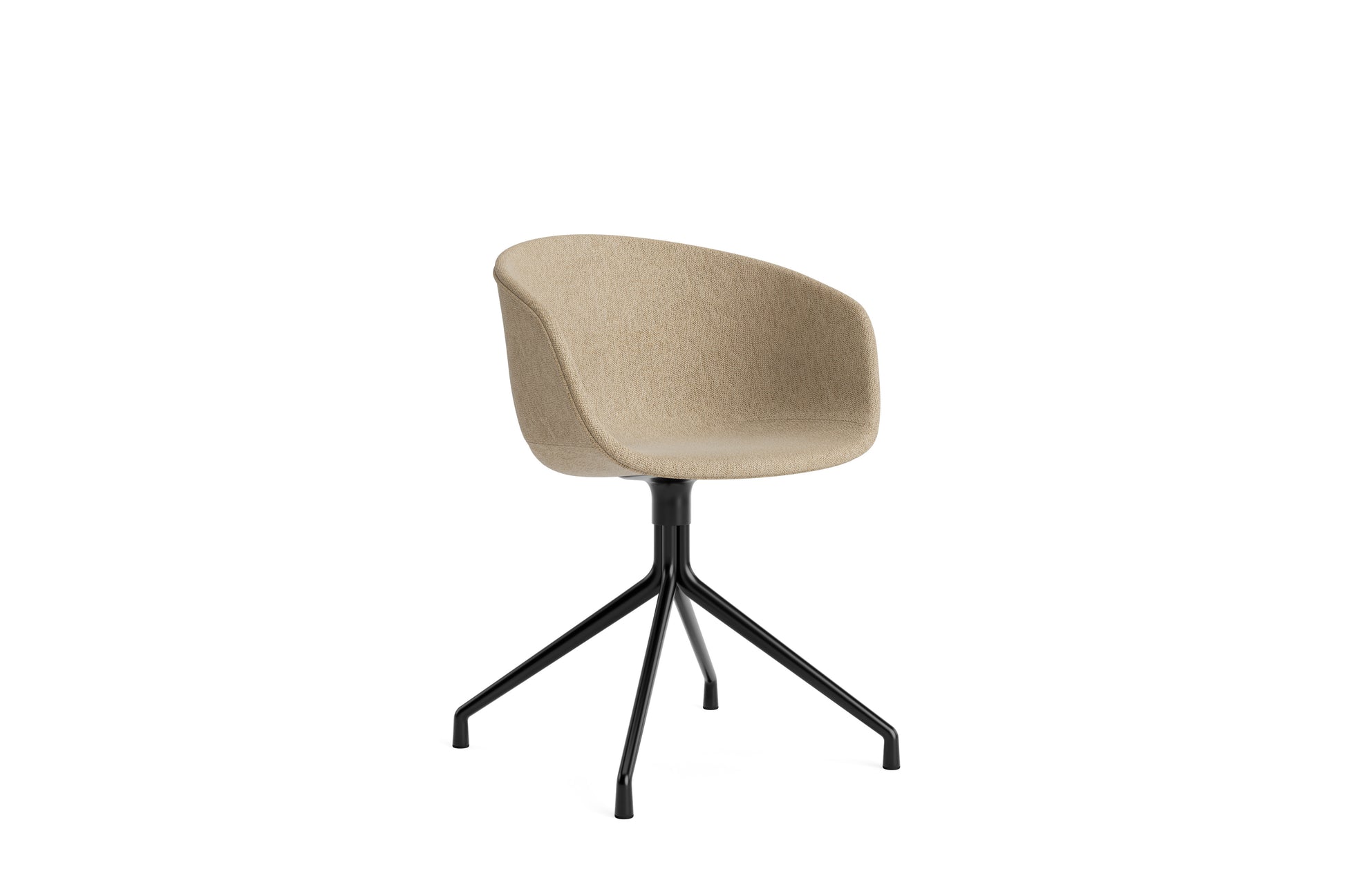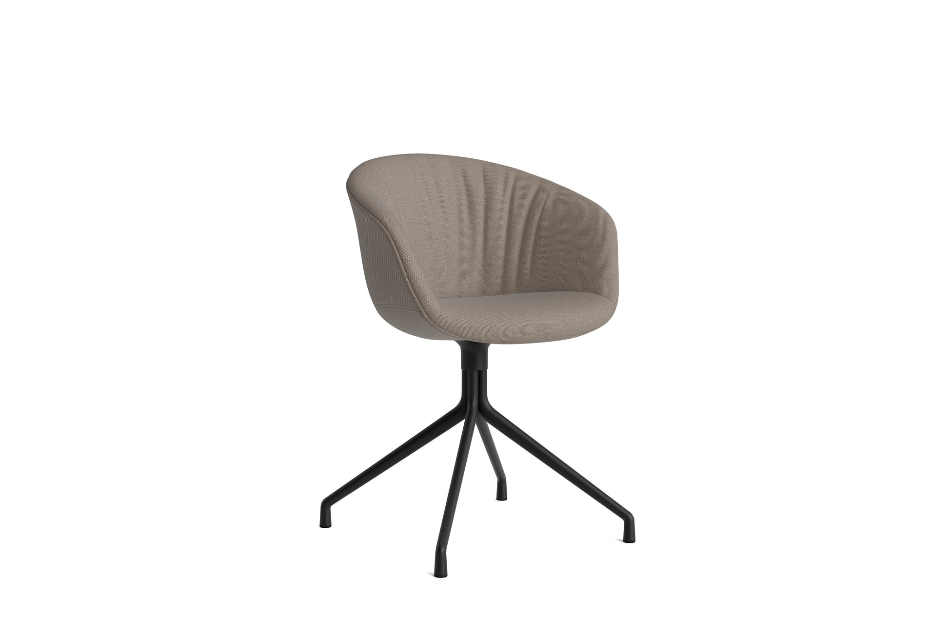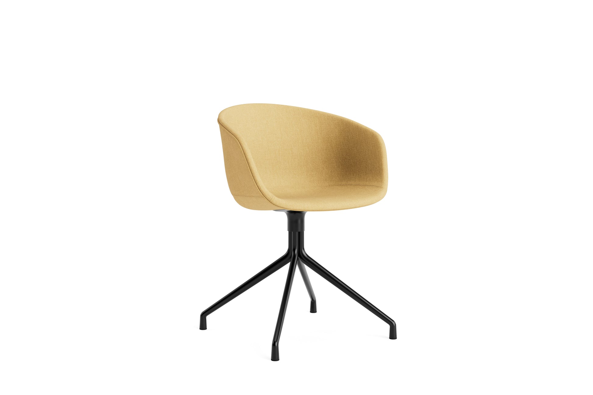 The About a Chair AAC 21 modifies the more formal expression of the aluminium swivel base with the softness and warmth of the upholstered shell. Retaining the same curved shell with unified silhouette that characterises the entire collection, this design features a functional base with legs that fan out from the centre. The cast aluminium swivel base is available in polished or powder coated finishes, with the post-consumer recycled plastic shell offered in a variety of regular and quilted upholstery options. The multitude of variants and design combinations give this series great versatility in a wide range of corporate, public, and private contexts.