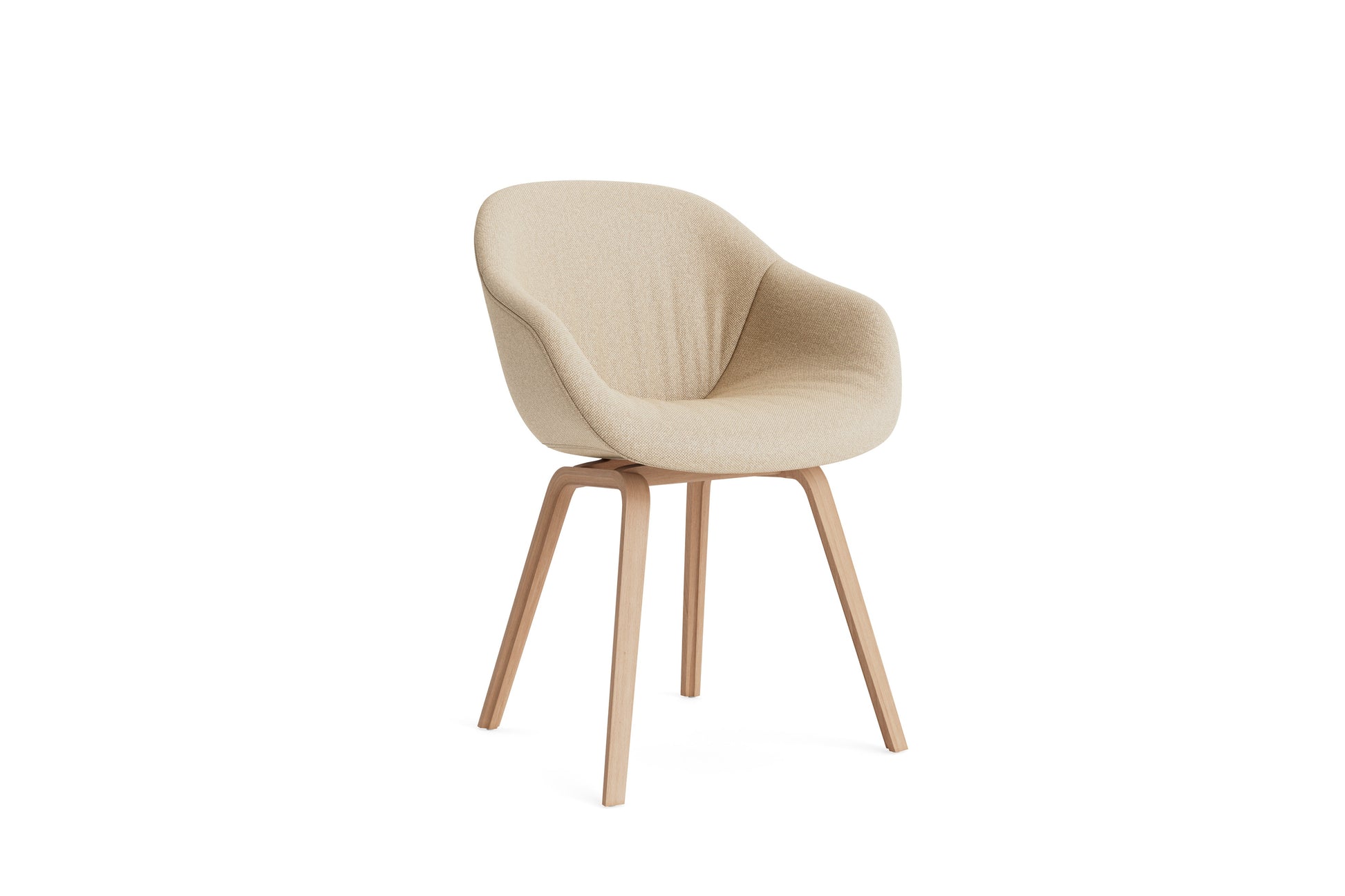 The AAC 223 fuses the natural elegance and classic expression of the four-legged wooden base with the softness of the upholstered shell. Retaining the fundamental idea shared by the AAC collection, this model is characterised by a curved shell with a slightly higher back. Designed with optimal functionality in mind, the shell construction offers a deep, generous seat that combines inviting aesthetics with a high level of comfort, whilst the lower armrests provide good support and enable the chair to fit underneath a table or desk. The wooden base brings character and stability, and is available in different finishes, with the post-consumer recycled plastic shell offered in a variety of regular and quilted upholstery options. The multitude of variants and design combinations give this series great versatility in a wide range of corporate, public, and private contexts.