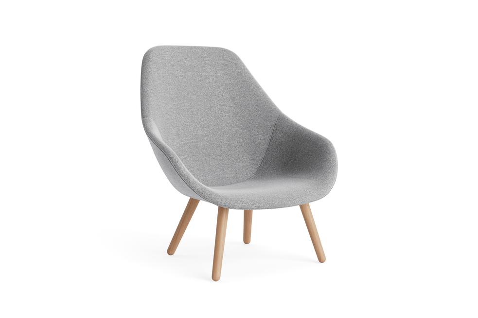 The About A Lounge Chair has a compact body with shaped armrests combined with round wooden legs. In line with the rest of the series, the sculpted design has been kept simple, with nothing left to chance.