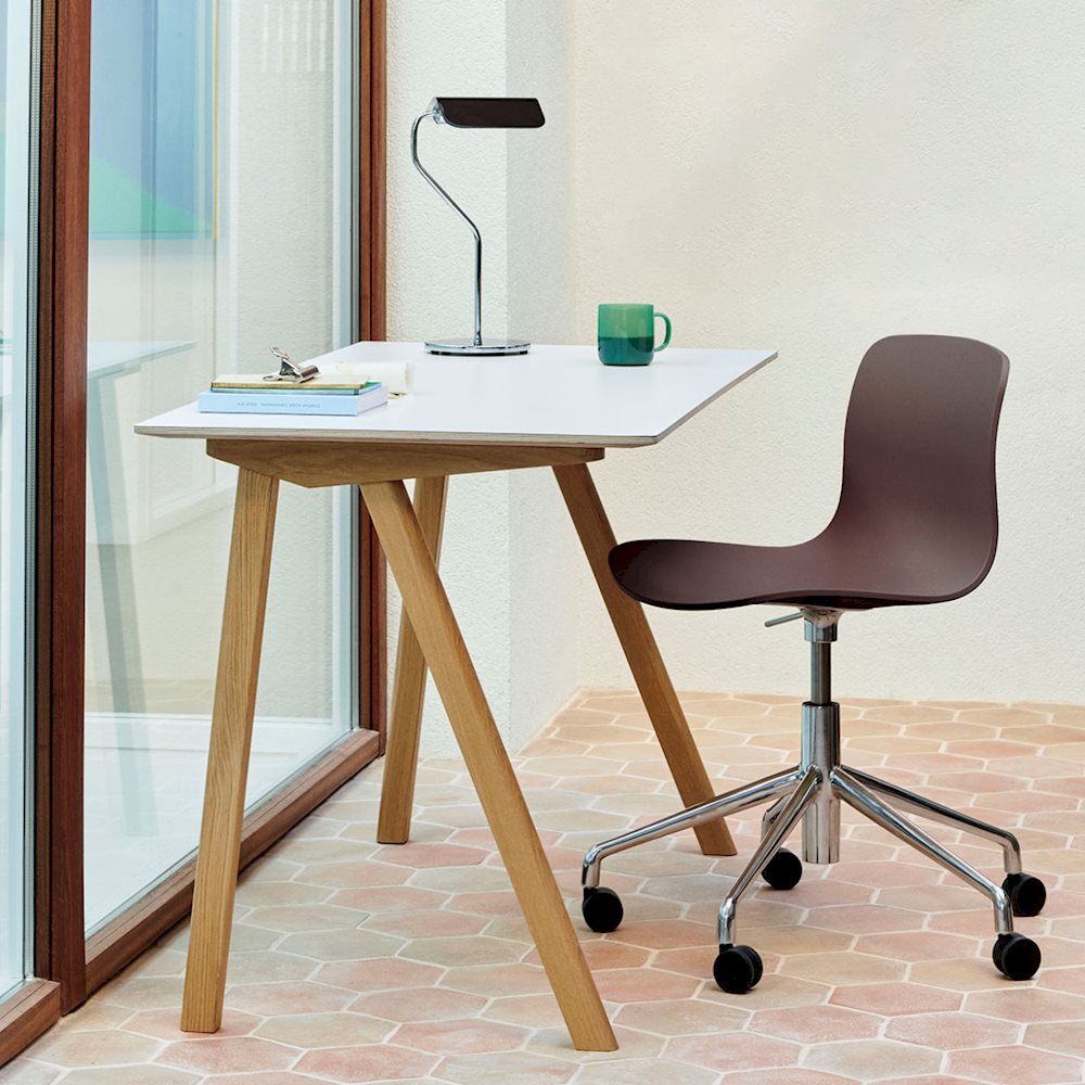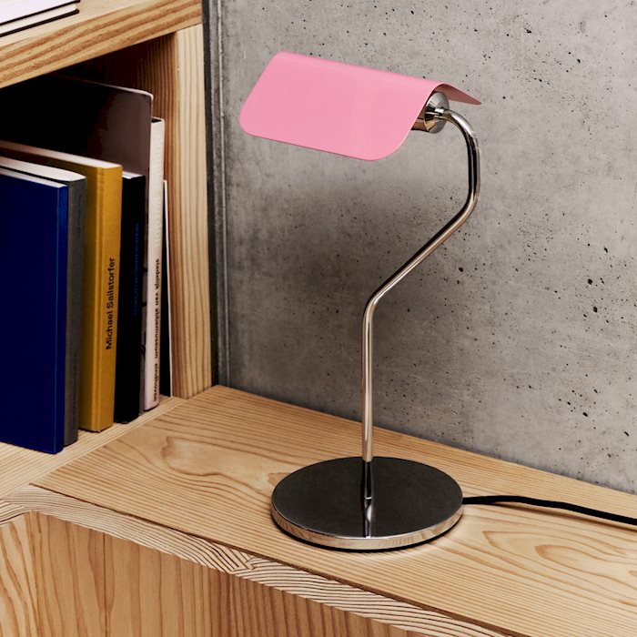 Taking cues from the classic Banker’s Light, British designer John Tree merged archetypal references with his contemporary, colourful sensibility to create the Apex Table Lamp. The folded steel shades create a peaked roofline silhouette, providing the inspiration behind the lamp’s name as well as offering a graphic contrast to the chrome-plated bases. The round base and angled arm are complemented by a colourful shade that can rotate 360 degrees, allowing users to direct light to suit their needs. The Apex Table Lamp offers a functional lighting solution for a multitude of spaces and uses, from a task light on a desk to a reading lamp on a bedside cabinet.