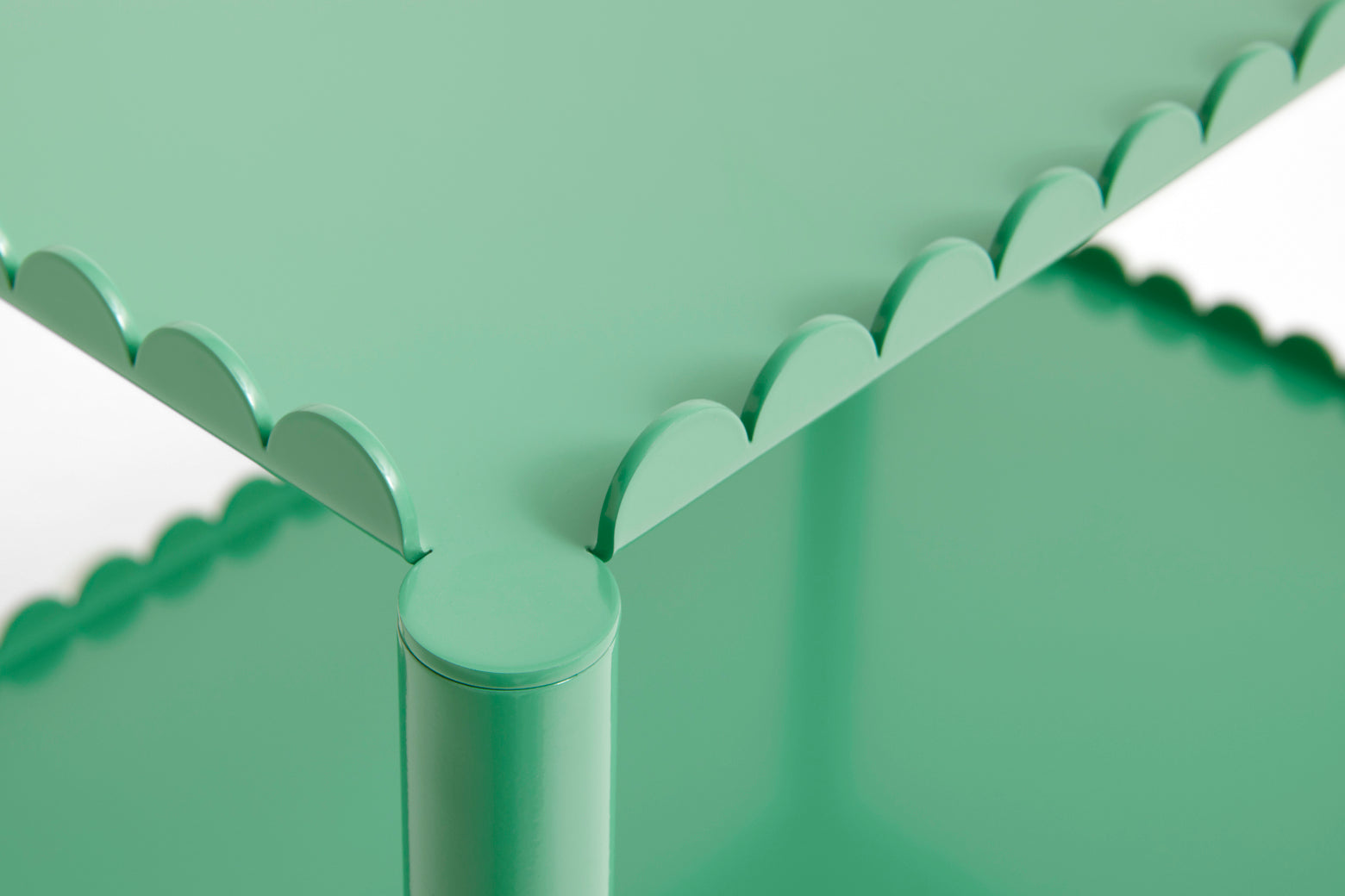 Designed by Belgian duo Muller Van Severen, Arcs Trolley is a functional and decorative trolley encased in a unified chain of vertical arcs. A small piece of furniture with a strong presence, the trolley combines industrial techniques with poetic lines to create a distinctive and sculptural expression. The elegant, scalloped frame supports two or three tiers, with slim legs mounted on castors for easy manoeuvring. Made in powder coated steel in different colour options, the trolley is suitable for most rooms and uses in the home, from displaying and storing items in the living room to extra shelving in the kitchen or as a bedside cabinet.