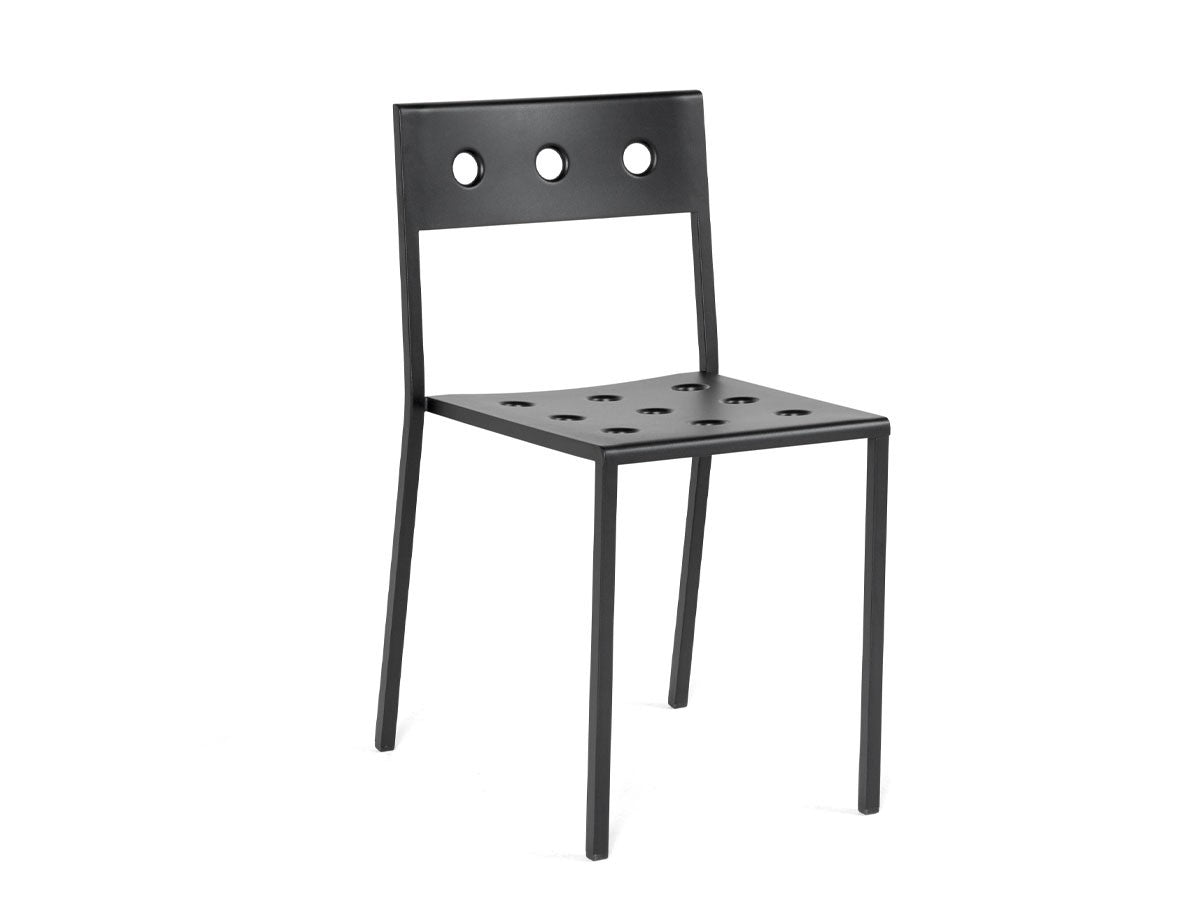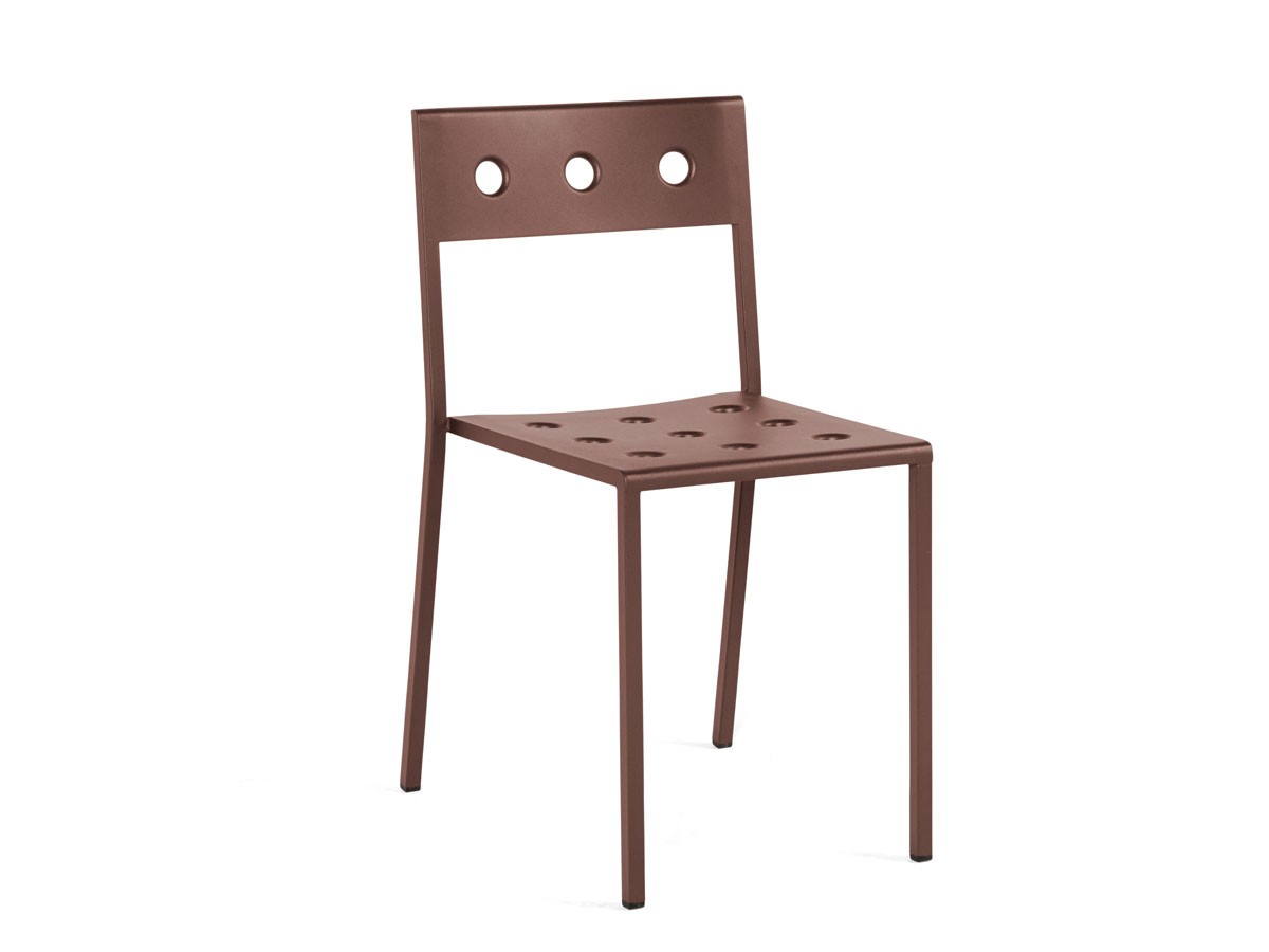 Designed for HAY by Ronan and Erwan Bouroullec, the Balcony Chair is an elegant and functional dining chair for outdoor use. The square design is softened by the rounded back, with the multiple holes in the seat and back strengthening the construction, as well as creating a distinct expression.