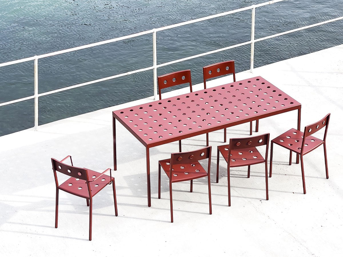 The Hay Balcony collection is characterised by the use of symmetrical holes, adding softness to the sleek metal structure as well as providing extra stability, the Hay Balcony Outdoor Dining Table is both distinctive and utterly timeless in design.