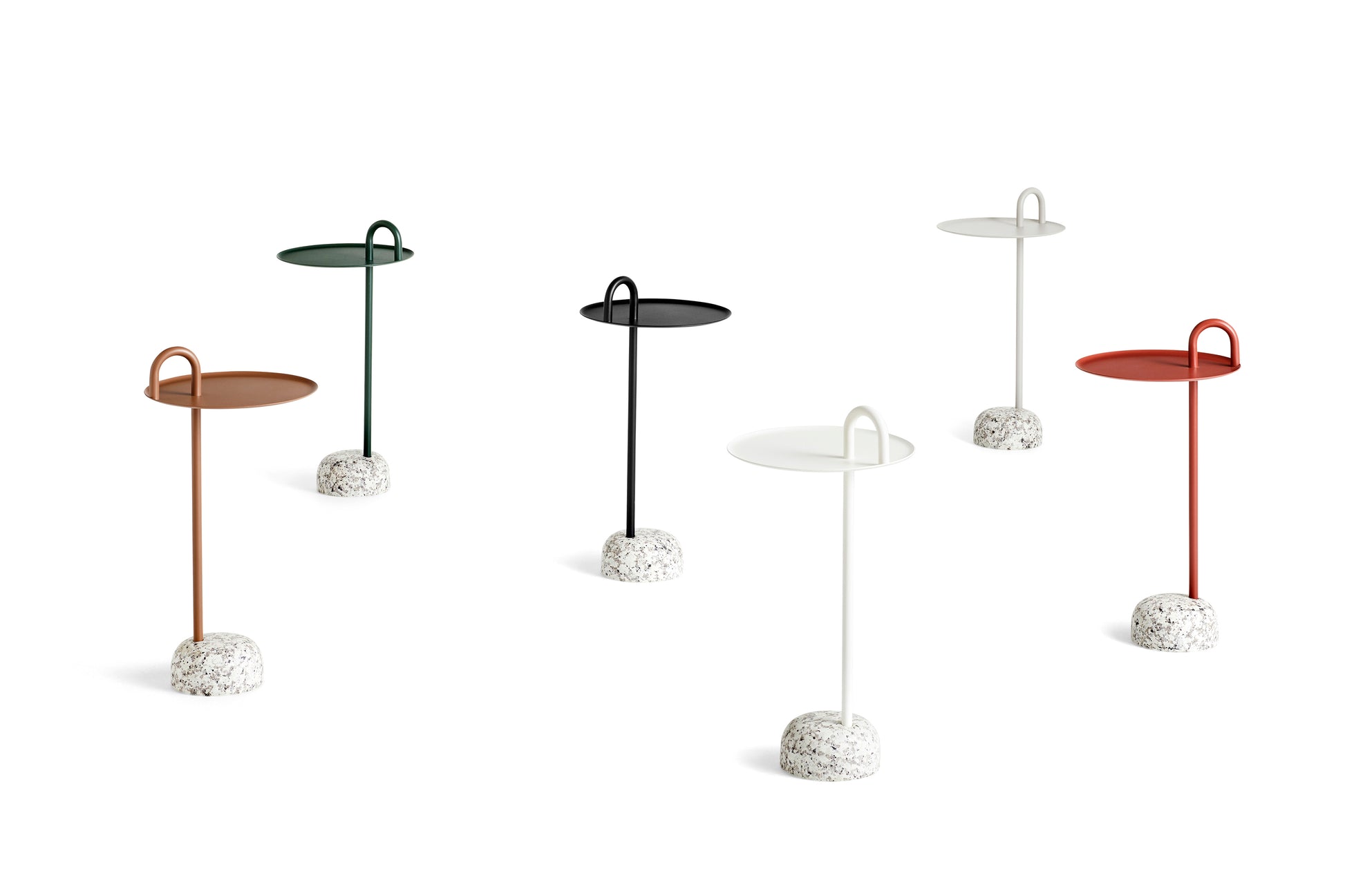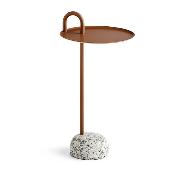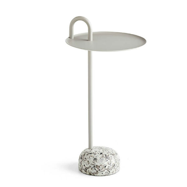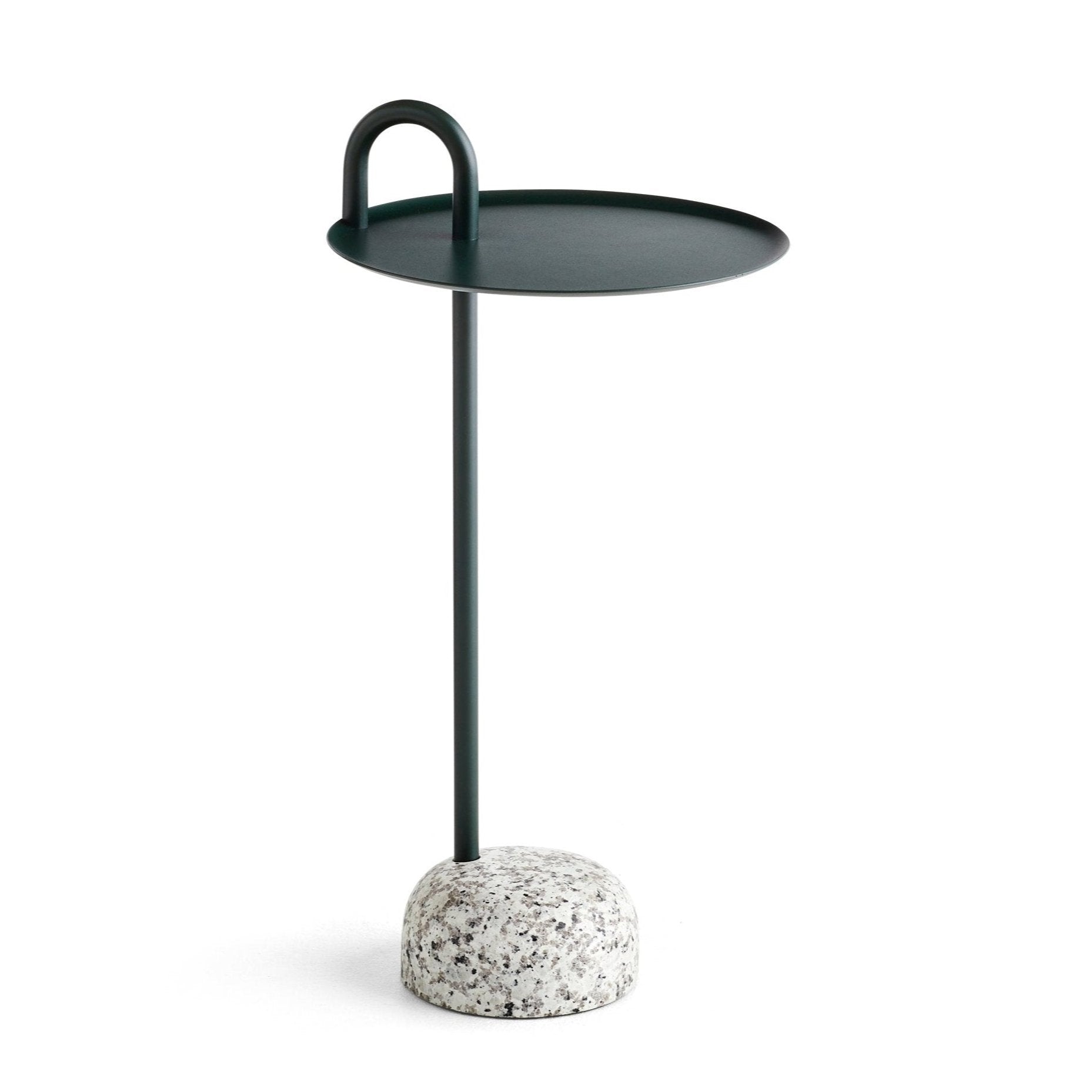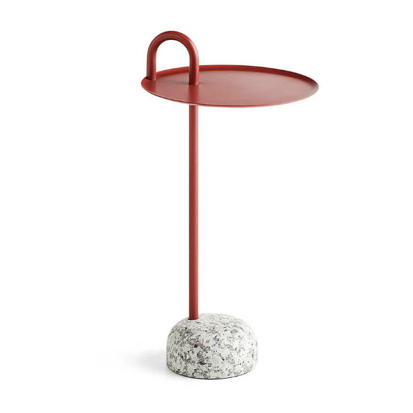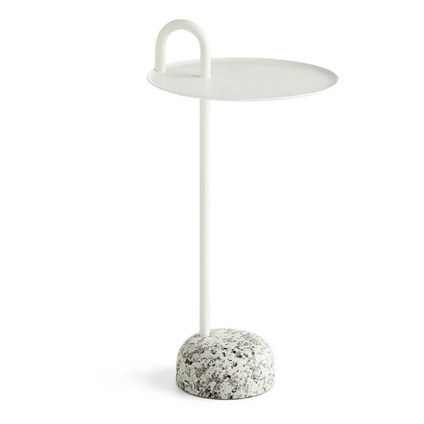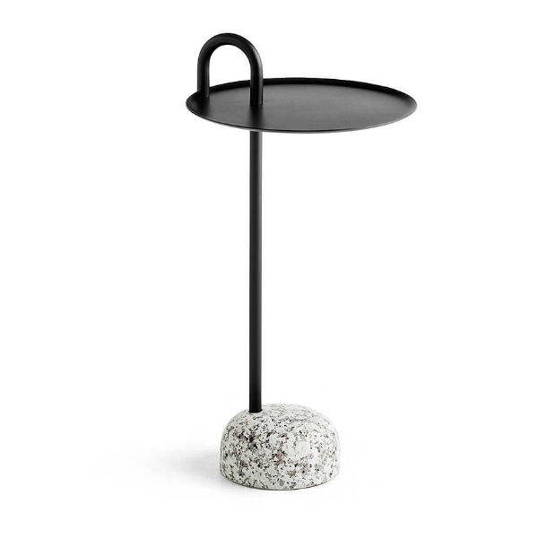 Designed for Hay by Shane Schneck, the Bowler Side Table embodies a striking unison of opposites. This modern side table is defined by a beautiful, natural granite base and a unique, elevated steel tube, creating a distinguishing feature and practical handle.