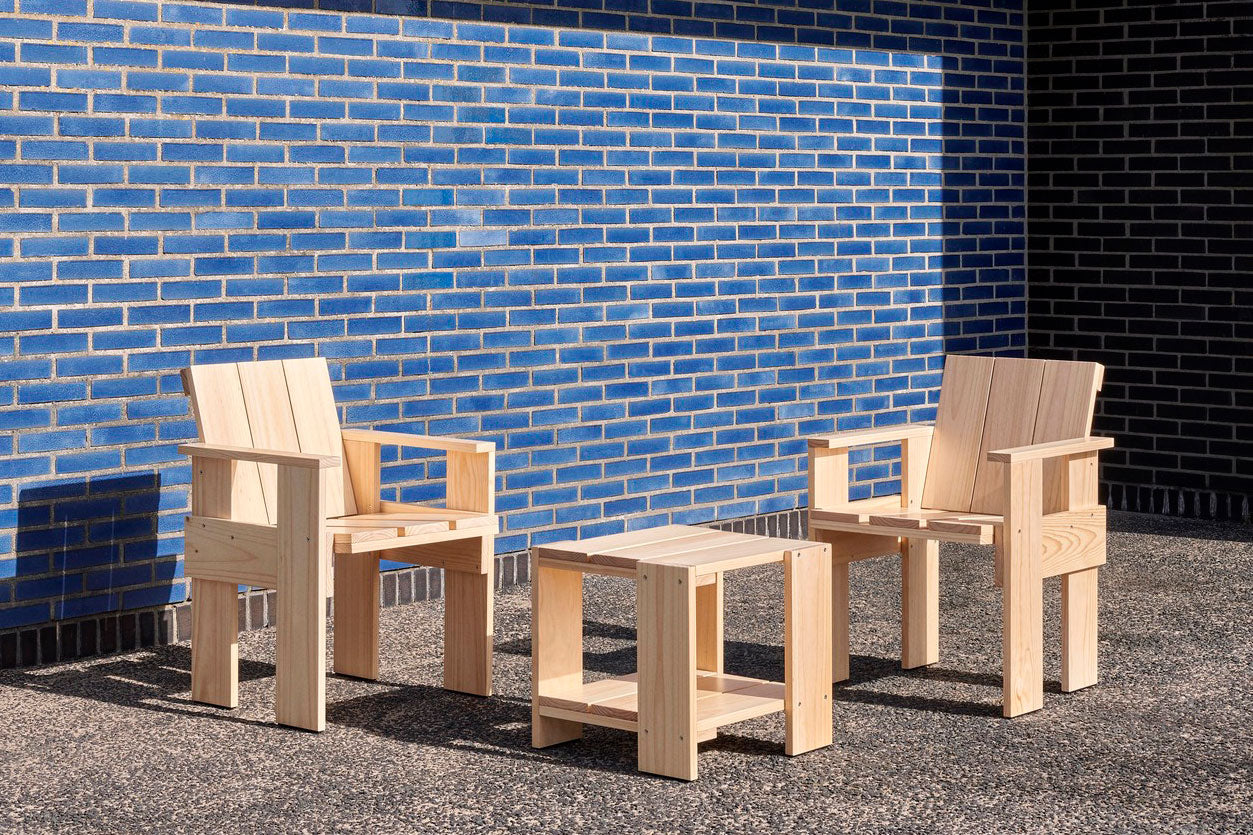 Initially designed to make use of surplus wooden shipping crates by Dutch architect and designer Gerrit Rietveld in 1934, the Crate Collection has been relaunched in a Rietveld Originals x HAY collaboration.