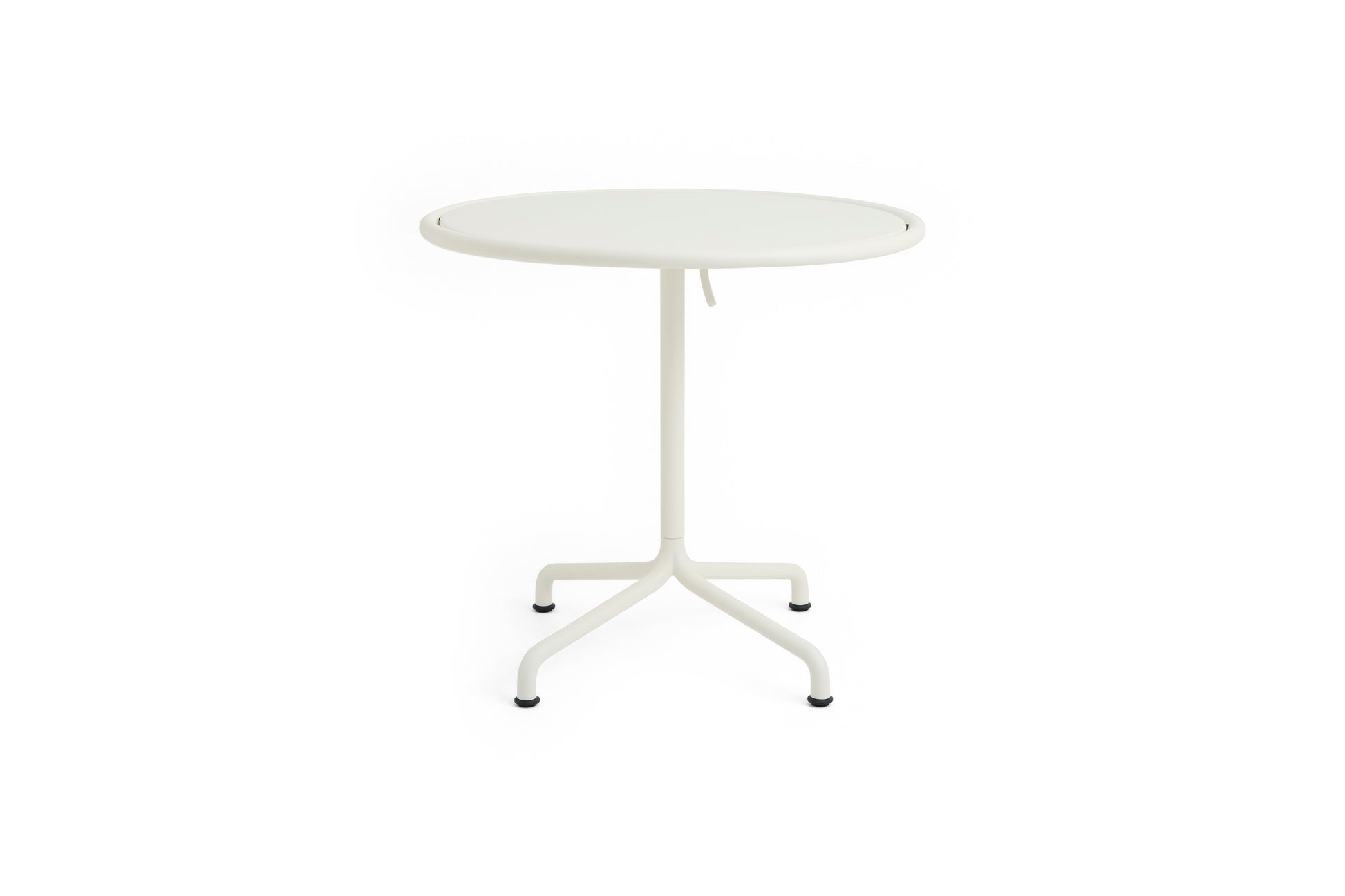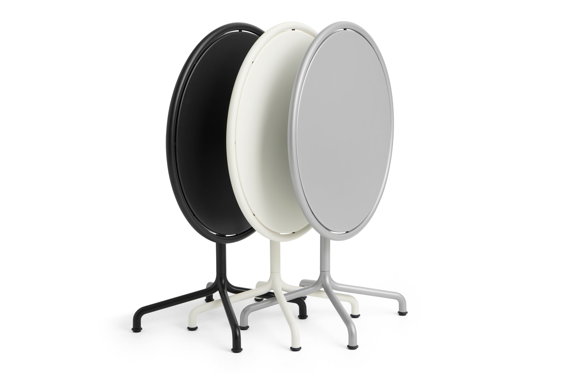 Tabletop with tilting mechanism made in steel. Base made of die cast aluminium. Handle for tilting tabletop is mounted underneath the tabletop. Powder coated finish.