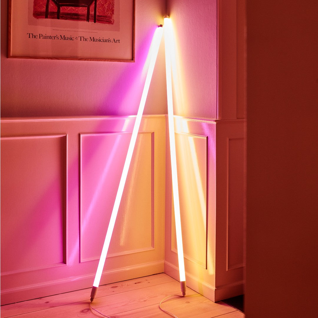 With its colourful glow, HAY’s Neon Tube enables you to create an artistic atmosphere in any space by hanging it or leaving it standing upright against a wall. It can be used separately or as a multiple light installation.
