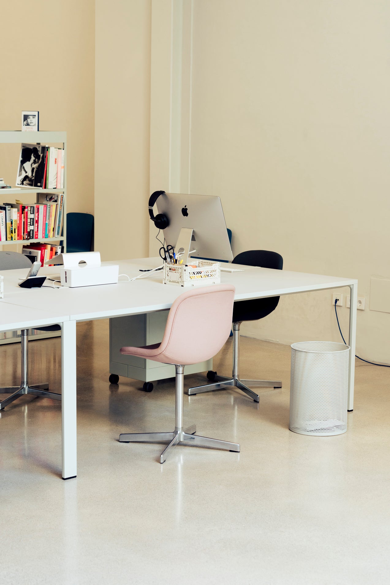 With a light, durable aluminium frame and linoleum table top in different colour options, the table combines functional and aesthetic qualities in a versatile table design.
