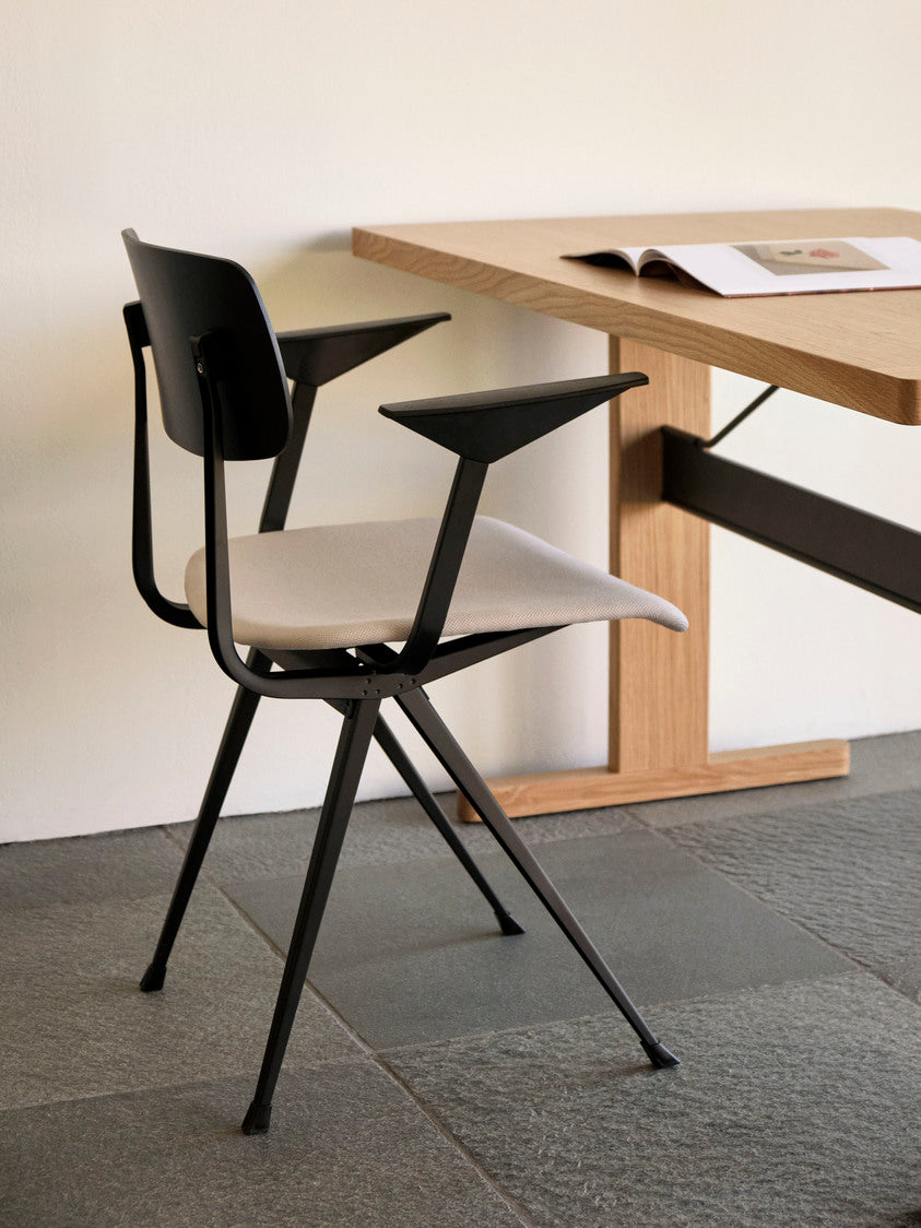 Inspired by the uncluttered aesthetics of classic Shaker furniture, French designers Ronan and Erwan Bouroullec designed the Passerelle Table – an updated interpretation sharing the same simplicity and quality in a more contemporary context. With a well-balanced, flat-packed construction, the tabletop features solid wooden edges and top surface in veneer or linoleum, with the core made of Lisocore® – an advanced, high-quality material that offers great strength yet is extremely light and easy to move around. The table frame is equally robust and functional, with solid wooden legs and aluminium and steel crossbar that strengthen and stabilise the table. The Passerelle Table’s variety of material, colour and size options amplify its multifunctional quality, making it suitable for using as a kitchen, dining table, or meeting table in both private and public spaces.