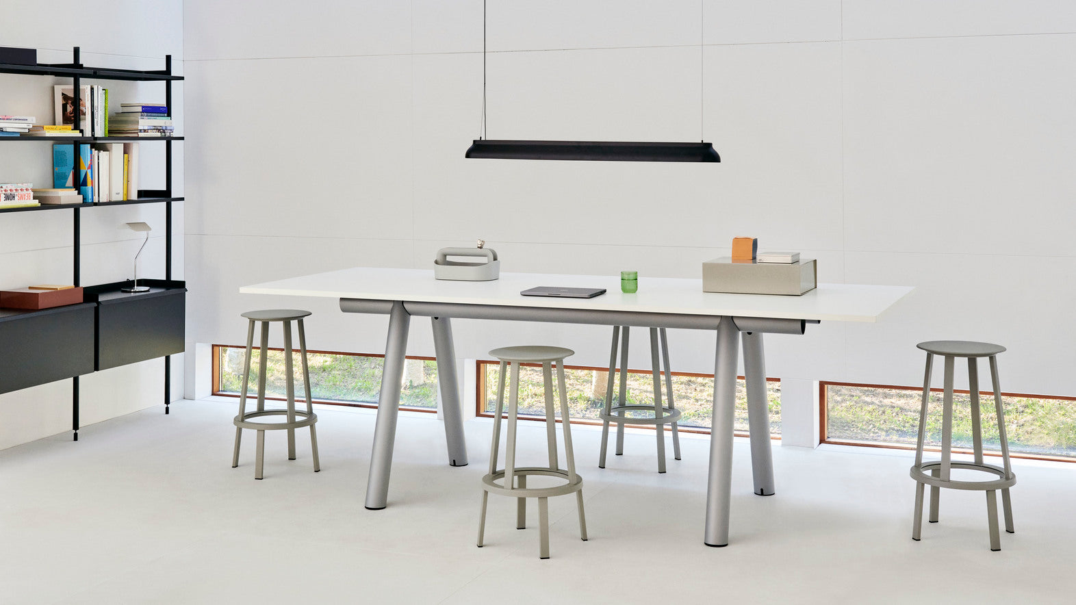Pierre Charpin’s PC Linear shares the same simple and elegant profile that is present in the rest of the family. The PC Linear’s shade is pressed from a single aluminium component with a wet-sprayed finish. The linear design is ideal for suspending over meeting or dining tables, as well as for illuminating exhibition shelves in commercial spaces.