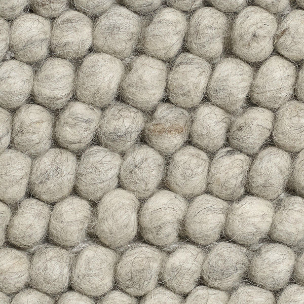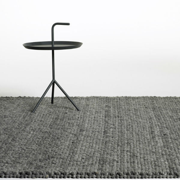 Hand-rolled by Nepalese craftsmen, the HAY Peas Rug is available in multiple sizes of soft grey.