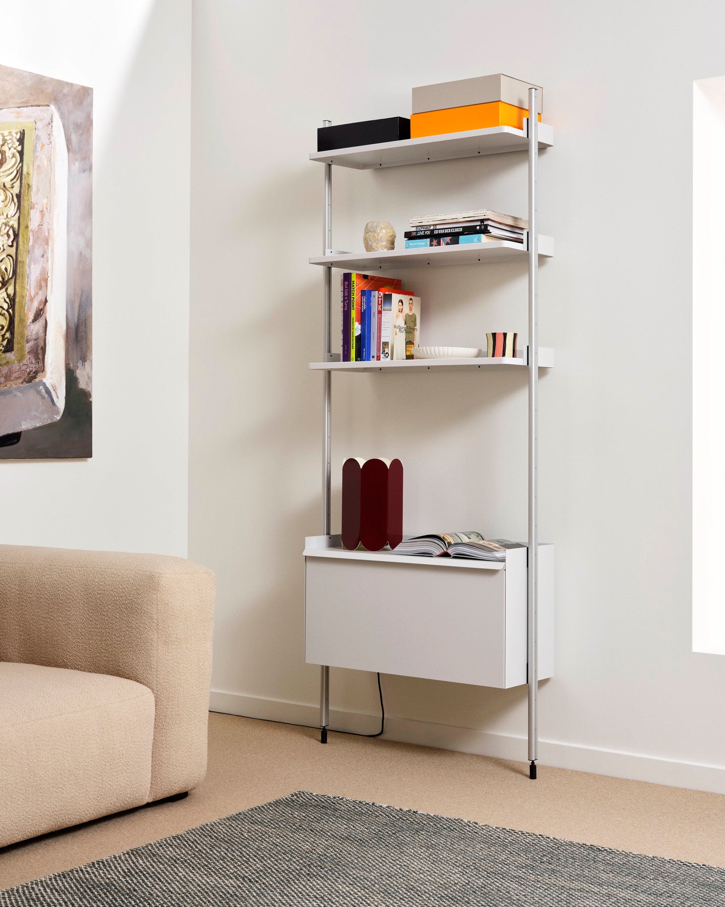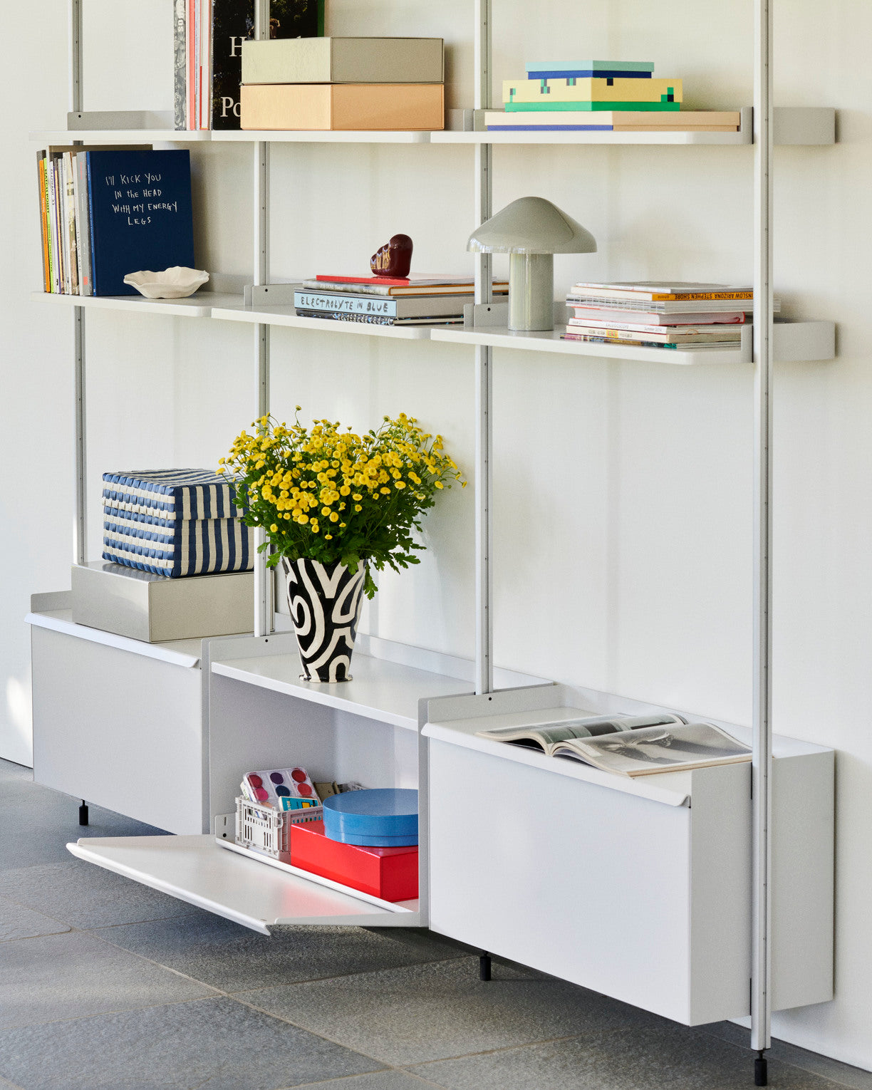 Designed by French designers Ronan & Erwan Bouroullec, Pier System is a multifunctional storage system developed to accommodate and adapt to modern lifestyle requirements. Featuring a flat-pack design that is easy to assemble, reconfigure and recycle, the simple construction provides a flexible shelving solution for organising and storing a multitude of items. Constructed from lightweight aluminium and steel using the minimum number of components required to create a complete storage system, Pier System is available in a variety of colours and set configurations that can be combined with each other. Elements that are part of these configurations can be moved around as needed and desired, enabling the user to incorporate work, wardrobe or organisational functions into most rooms and environments, from living rooms and bedrooms to entrance halls and office areas.