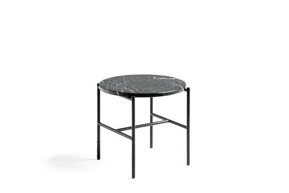 Sylvain Willenz’s Rebar Tables are a series of coffee-, side- and tray tables that explores the possibilities of reconsidering construction materials and processes. The design juxtaposes the reinforced steel bar frame with marble tops and metal trays to create a balanced aesthetic.