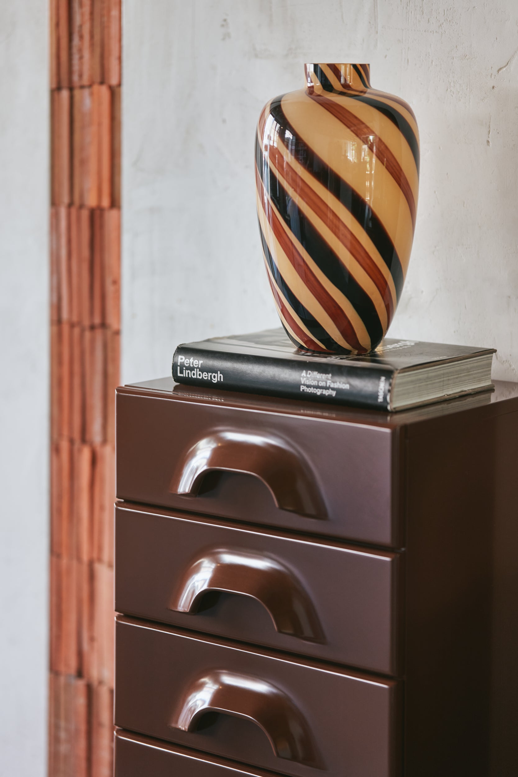 Where vintage meets contemporary. This glass vase, decorated with a subtle swirled pattern, has the soft tones of a delicious sweet affogato coffee. A great accessory, or as we like to call it, eye-candy.