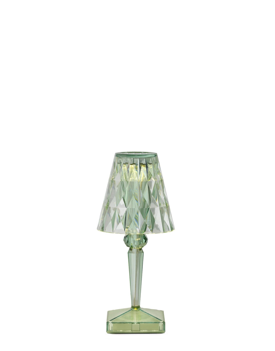Battery is an iconic compact lampshade. It is made from transparent PMMA and truly embodies innovation, being 100% rechargeable when plugged in and with a battery life of up to 8 hours. This allows it to be moved around extremely easily.