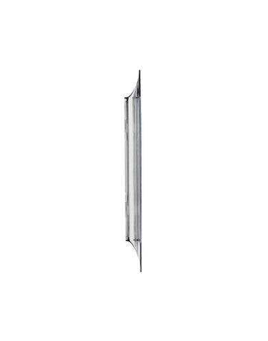 A series of rectangular two-dimensional wall mirrors which bring to mind milled crystal frames. The frames are made of transparent or coloured polycarbonate with seagull wing sections and can be hung horizontally or vertically.