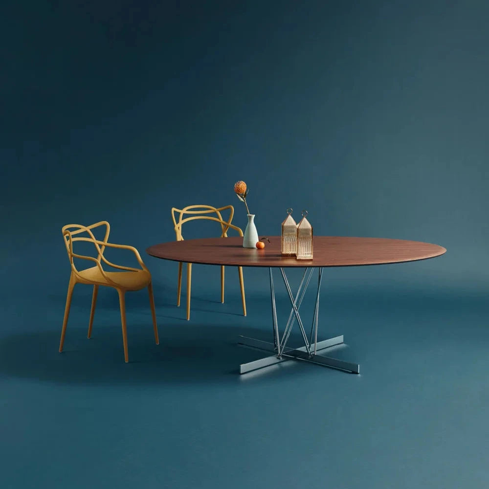 The unmistakable silhouettes of the “Series 7” by Arne Jacobsen, the “Tulip Armchair” by Eero Saarinen and the “Eiffel Chair” by Charles Eames are interwoven into a sinuous hybrid. The Masters is light, practical and stackable and can also be used outdoors. To give the Masters an even more precious, exclusive and sophisticated look it is given new and surprising metallic finishes.