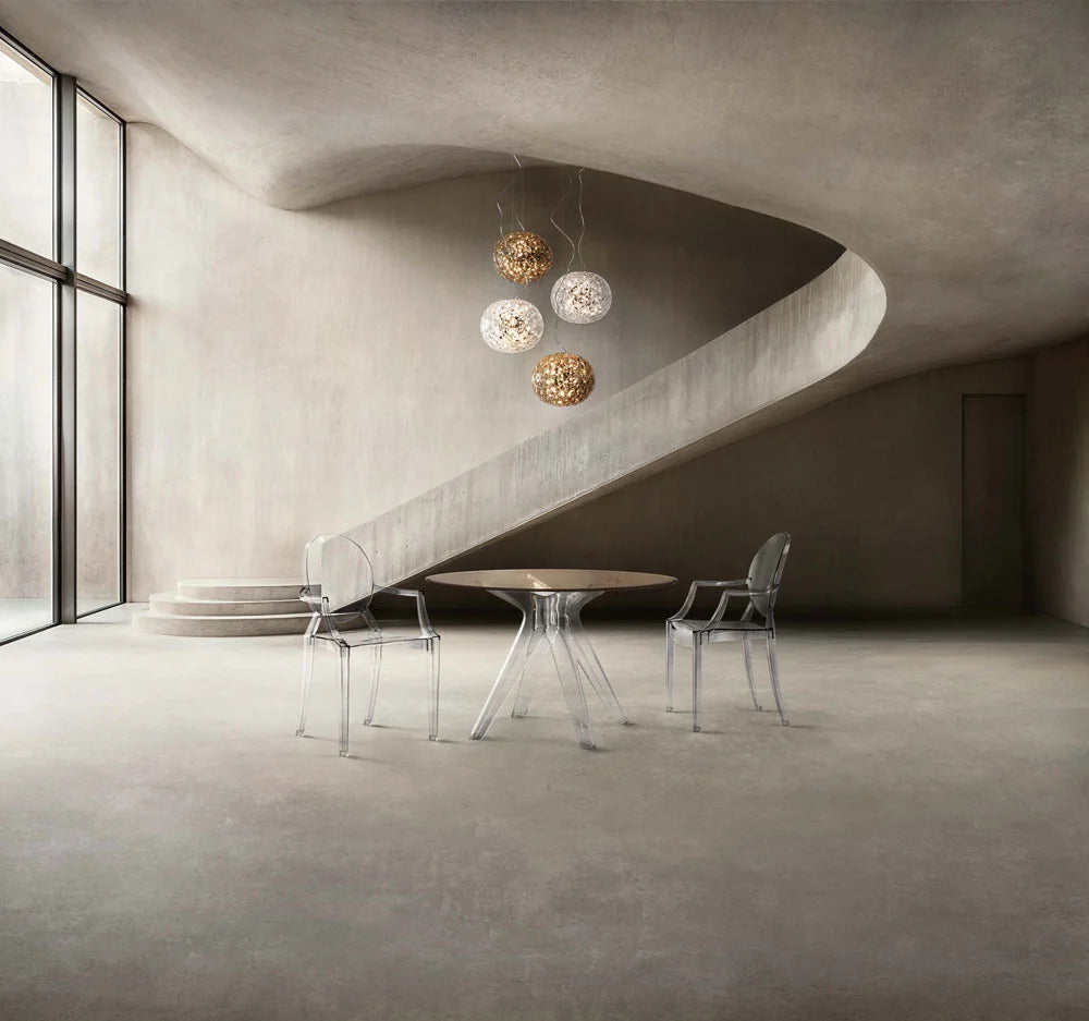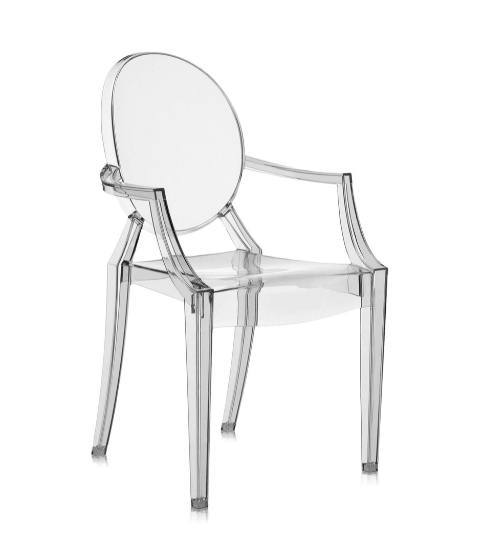 Louis Ghost is the world’s bravest example of the injection of polycarbonate in a single mould. A chair inspired by the Louis XV chair, the baroque ideotype, reinterpreted by Philippe Starck to amaze, inspire and beguile. Despite its evanescent and crystalline image, Louis Ghost is stable and strong, collision-proof and capable of withstanding the effects of the weather; and it can be stacked in piles of up to six. A very charismatic product with enormous aesthetic appeal, perfect for every setting, be it domestic or professional.