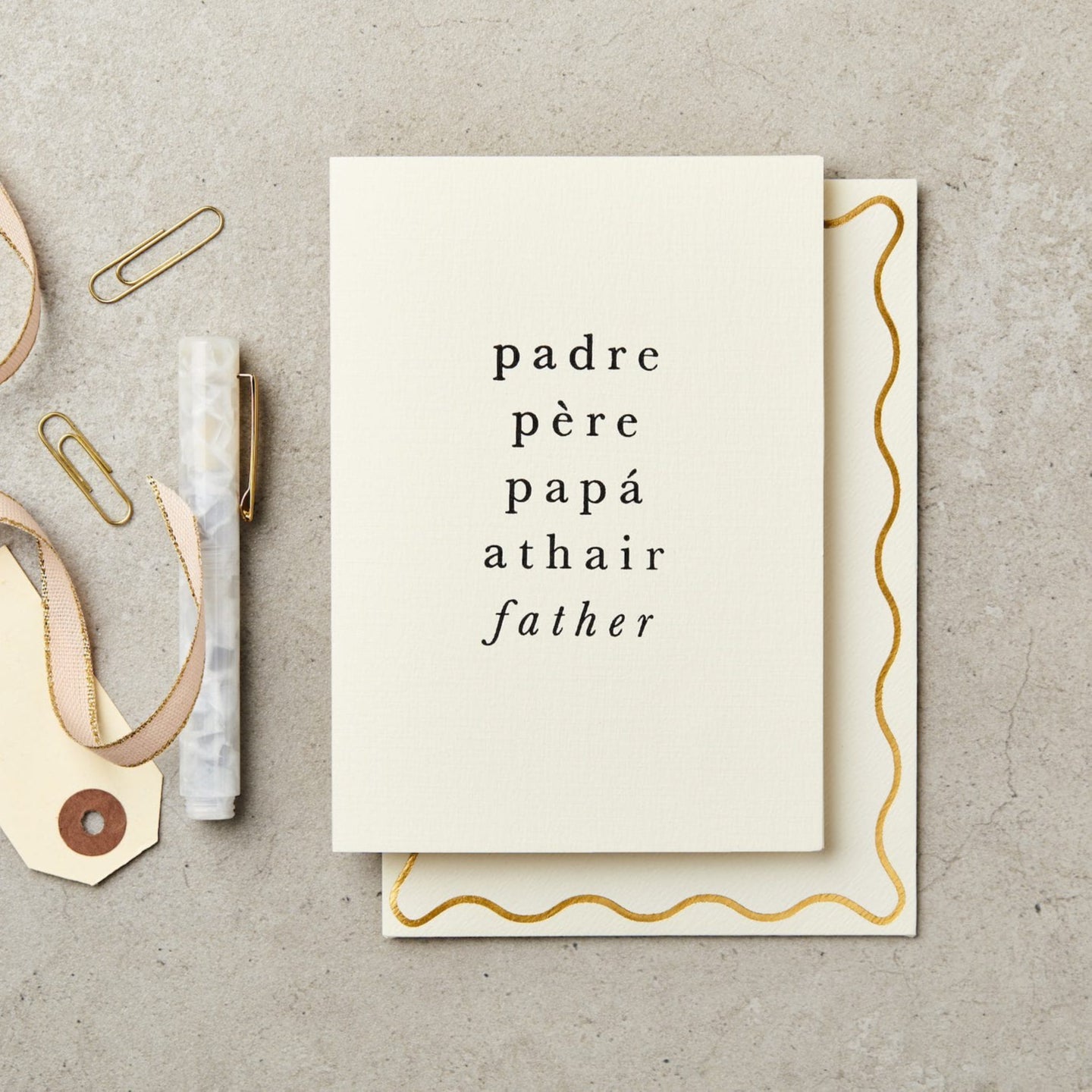 Individually hand printed Father's Day greeting card featuring an original typography design. Printed onto a luxury cream card & accompanied by a cream and gold foil envelope.