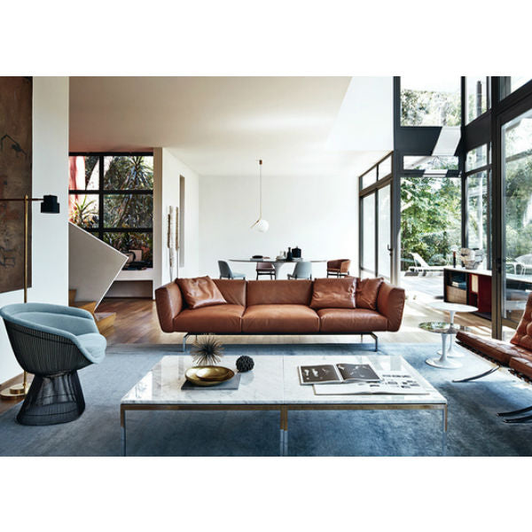 The elegant Avio three-seat sofa, designed by Piero Lissoni in 2016, is a new sofa component system to suit any interior and space. The collection consists of a wide range of sofa models that can be used on their own, together and also combined with a table.