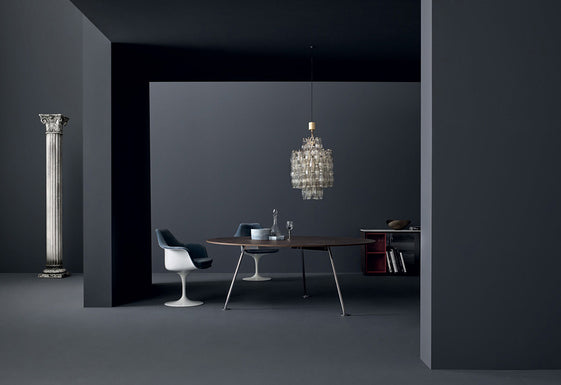 The Grasshopper Table borrows its name from the animal that has six precision tools for legs. Here there are four, equally long and incredible and yet perfectly functional. Above them sits a top that is so thin that it looks able to lift up and take to the air. An object that is so weightless and compact that it works perfectly within any environment. The elegance of the table derives from the combination of a slender table top, that almost appears to float, combined with a structure made from very thin, high-performance cast steel elements.