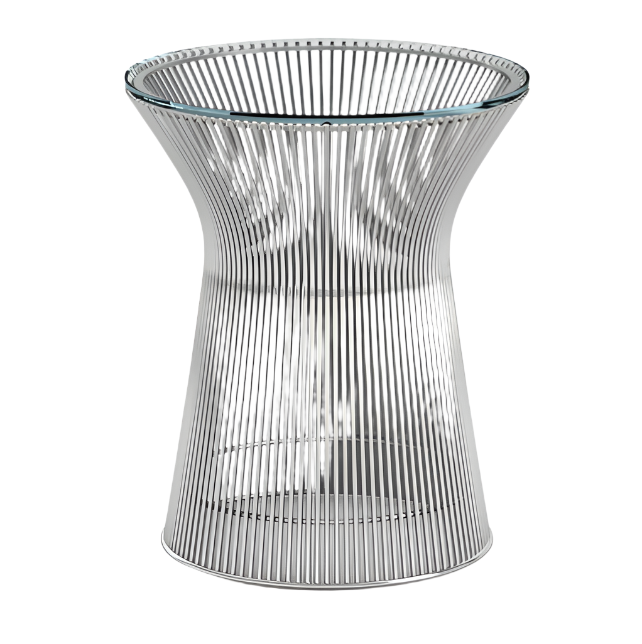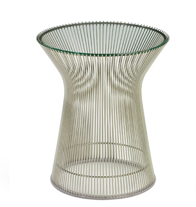 In 1966, the Platner Collection captured the “decorative, gentle, graceful” shapes that were beginning to infiltrate the modern vocabulary. The iconic side table is created by welding curved steel rods to circular frames, simultaneously serving as structure and ornament.