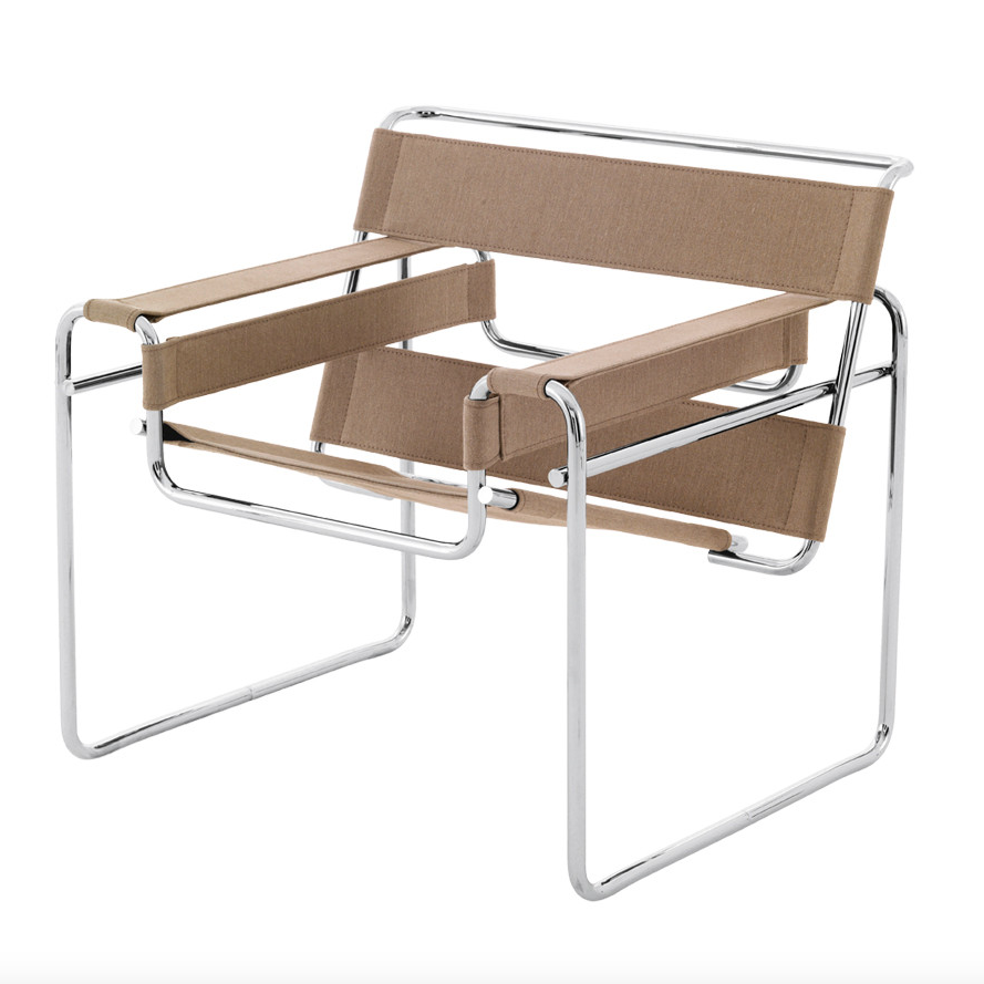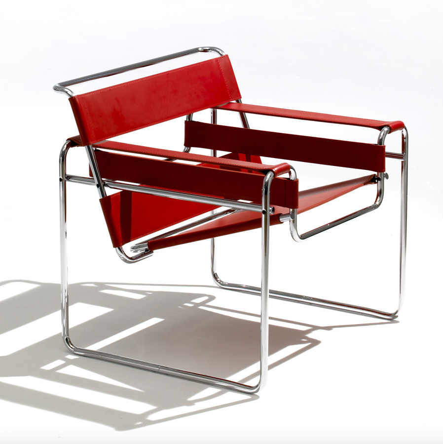 Marcel Breuer was an apprentice at the Bauhaus when he began experimenting with tubular steel as a way of building a more transparent chair. Inspired by the frame of a bicycle, Breuer reduced the form of the classic club chair to its elemental lines and planes.