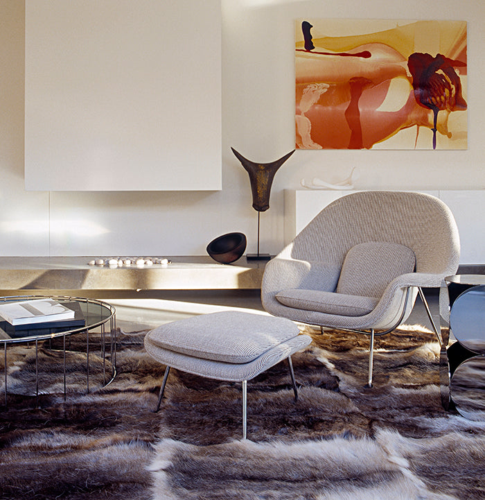 Eero Saarinen designed the groundbreaking Womb Chair at Florence Knoll’s request for “a chair that was like a basket full of pillows – something she could really curl up in.” This mid-century classic supports countless positions and offers a comforting oasis of calm—hence the name.