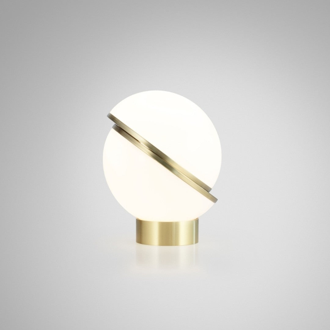 A miniature version of the popular Crescent Light, this illuminated sphere is sliced asymmetrically in half to reveal a crescent-shaped brushed brass fascia. Mini Crescent seamlessly combines the solid and the opaque.