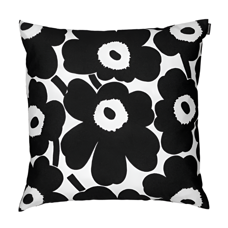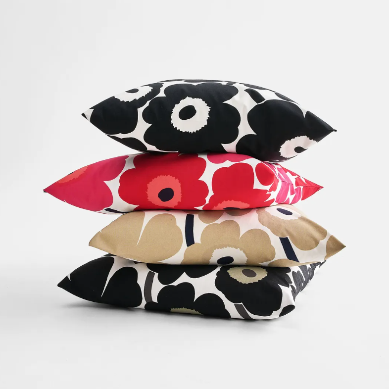 The classic Pieni Unikko pattern in red covers this square cotton cushion cover. It’s made of heavyweight upholstery cotton and has a side zip closure.