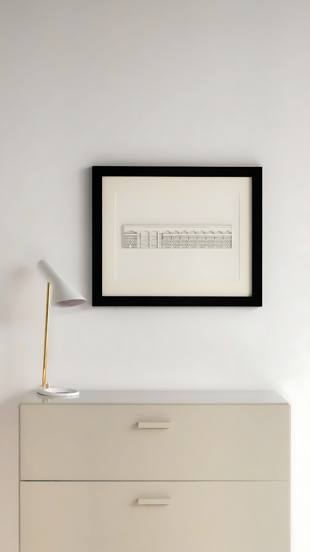 minima. A3 Palace of Justice by Le Corbusier, Chandigarh 3D Framed Illustration Ex-display